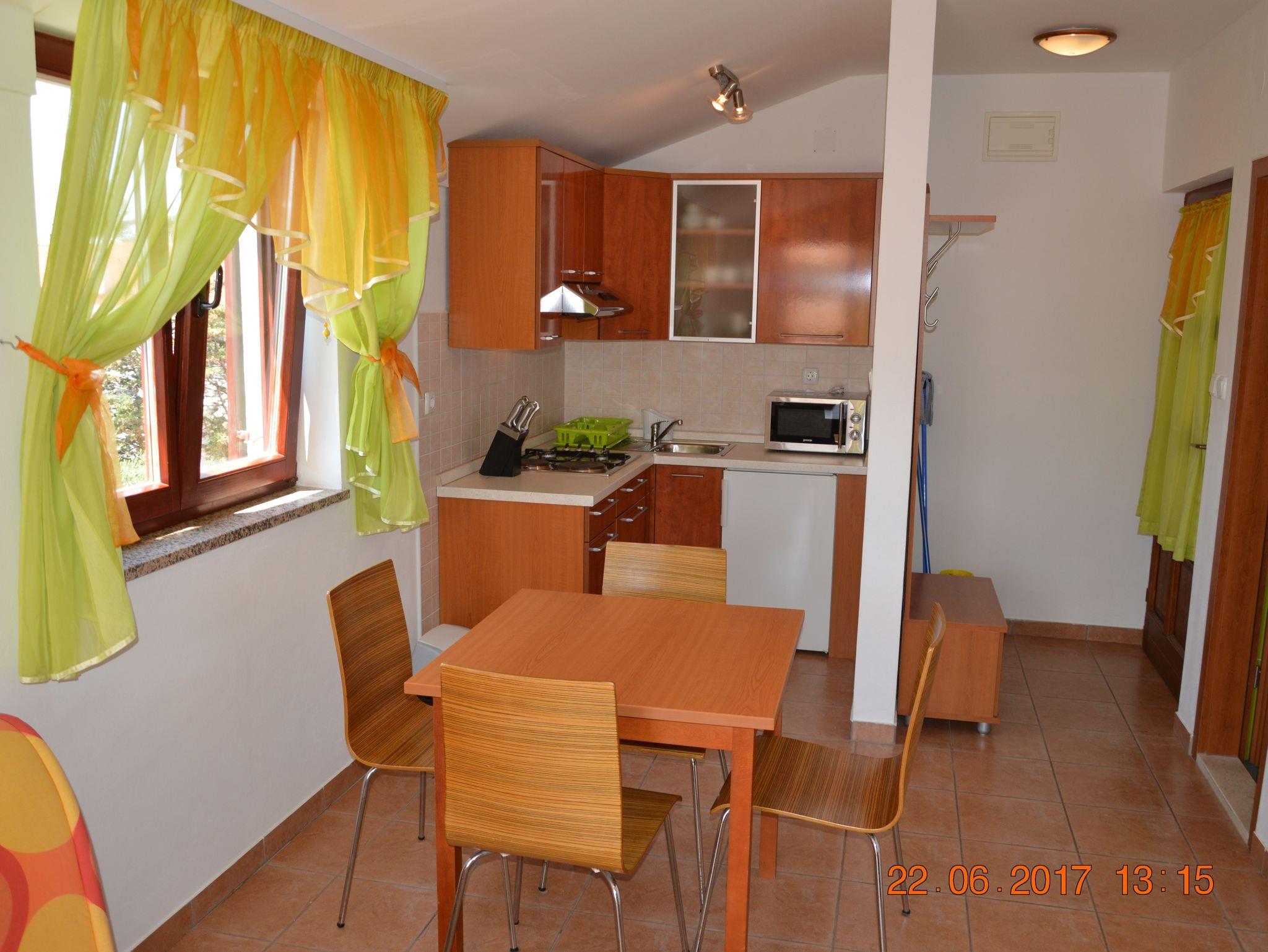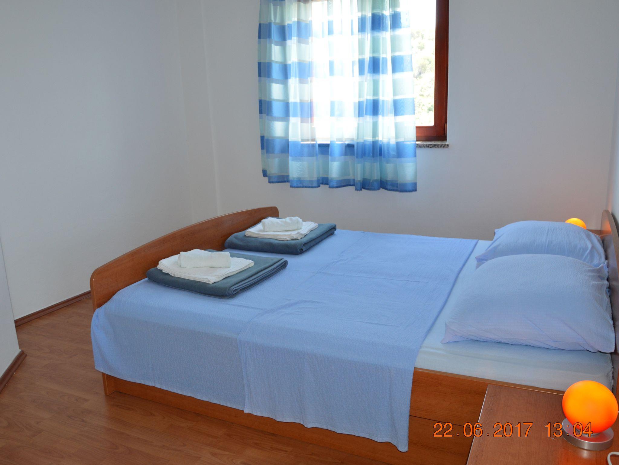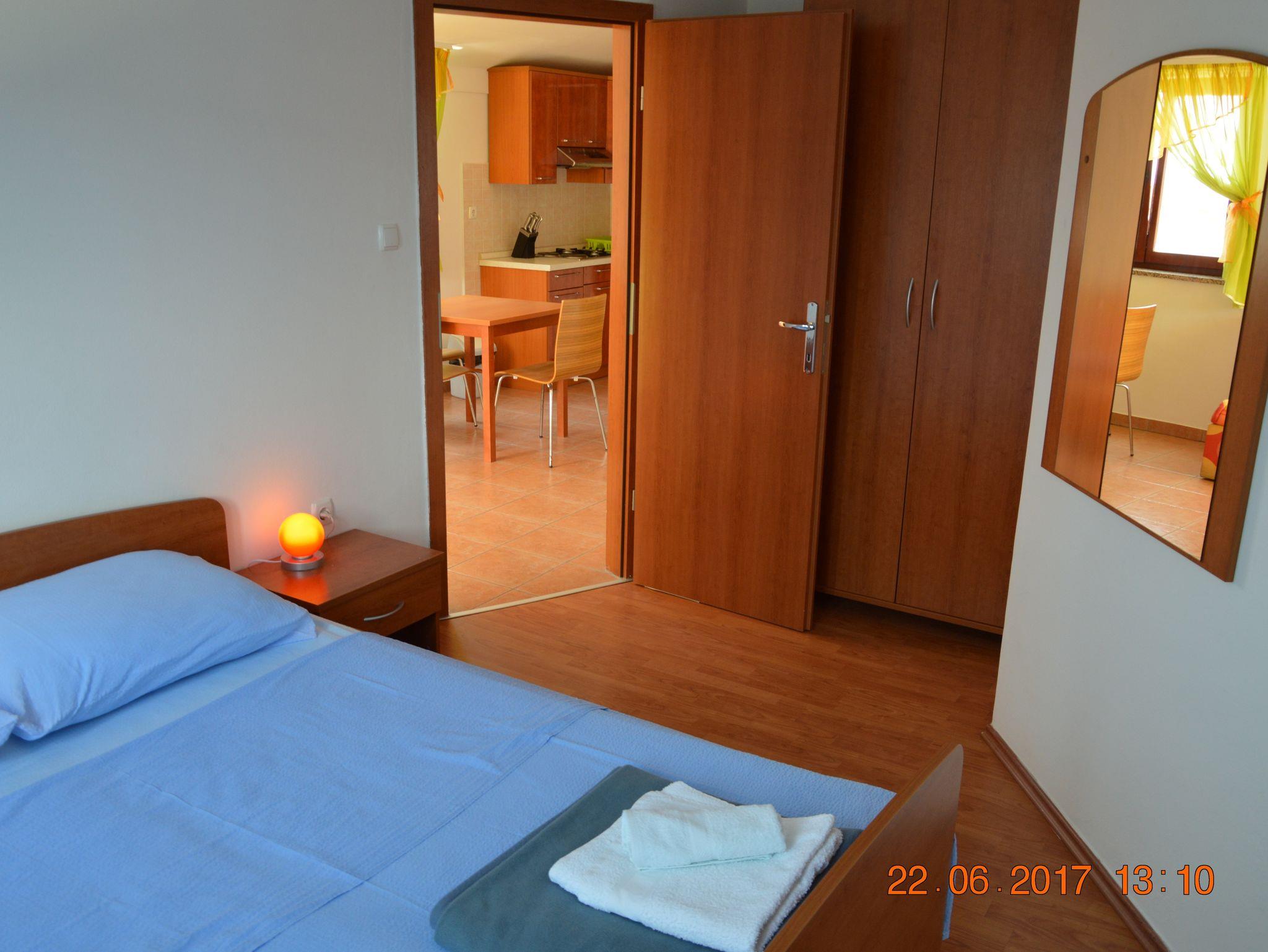 Ferienwohnung bietet Platz für 4 Gäste. Die Betten sind in Schlafzimmern, die es 1 gibt, und in Wohnzimmer, innerhalb einer Gesamtfläche von 27m2, angeordnet. Die Gäste haben eine eigene Terrasse zur Verfügung, auf der sie in warmen Sommernächten genießen können. Das Apartment bietet Meerblick. Es ist erlaubt, Speisen auf dem Gemeinschafts-Grill vorzubereiten. In der Unterkunftseinheit besteht die Möglichkeit des Mitbringens von Haustieren gegen Aufpreis. IM PREIS INBEGRIFFEN: Kurtaxe, Endreinigung, Parkplatz, Garage, Internet, Wäschewaschen, Bügeleisen, Bügelbrett, Föhn, Sonnenschirm. VERBINDLICHE ZUSÄTZLICHE KOSTEN: Aufzahlung für Kurzaufenthalte (prozentualer Zuschlag pro Nächtigungsanzahl: 30% - 1, 20% - 2, 10% - 3). UNVERBINDLICHE ZUSÄTZLICHE KOSTEN: Klimatisierung (5,00 € pro Nacht), Bootsanlegeplatz (20,00 € pro Nacht), Haustiere (10,00 € pro Nacht). Die Verfügbarkeit zusätzlicher Dienstleistungen in Ihrem reservierten Termin und die Preise derselben (falls nicht aufgeführt) müssen im Voraus überprüft werden. Zusätzliche Dienstleistungen die in der Zahlungsaufforderung nicht aufgeführt sind werden direkt beim Vermieter bezahlt, angenommen der Gast nutzt auch diese. Ermäßigung auf den Grundpreis: Gratistag 14=13 (bei einem Aufenthalt von 14 Tagen oder mehr erhalten Sie einen Gratistag für den Aufenthalt bis 31.12.26).