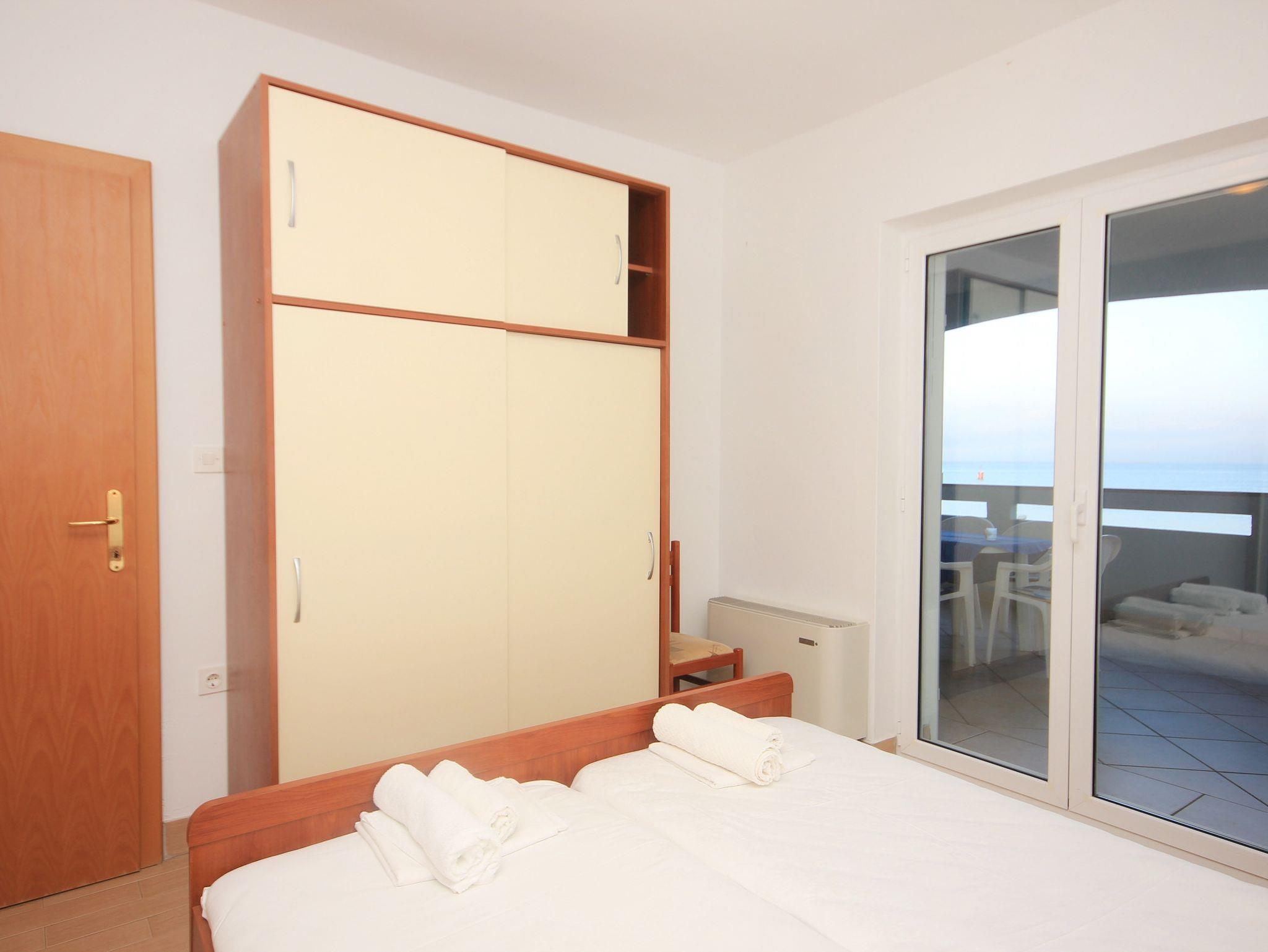 Ferienwohnung bietet Platz für 5 Gäste. Die Betten sind in Schlafzimmern, die es 2 gibt, und in Wohnzimmer, innerhalb einer Gesamtfläche von 46m2, angeordnet. Die Gäste haben eine eigene Terrasse zur Verfügung, auf der sie in warmen Sommernächten genießen können. Das Apartment bietet Meerblick. IM PREIS INBEGRIFFEN: Kurtaxe, Endreinigung, Klimatisierung, Parkplatz, Internet, Bügeleisen, Bügelbrett, Föhn, Sonnenschirm, Liegestühle. Die Verfügbarkeit zusätzlicher Dienstleistungen in Ihrem reservierten Termin und die Preise derselben (falls nicht aufgeführt) müssen im Voraus überprüft werden. Zusätzliche Dienstleistungen die in der Zahlungsaufforderung nicht aufgeführt sind werden direkt beim Vermieter bezahlt, angenommen der Gast nutzt auch diese.