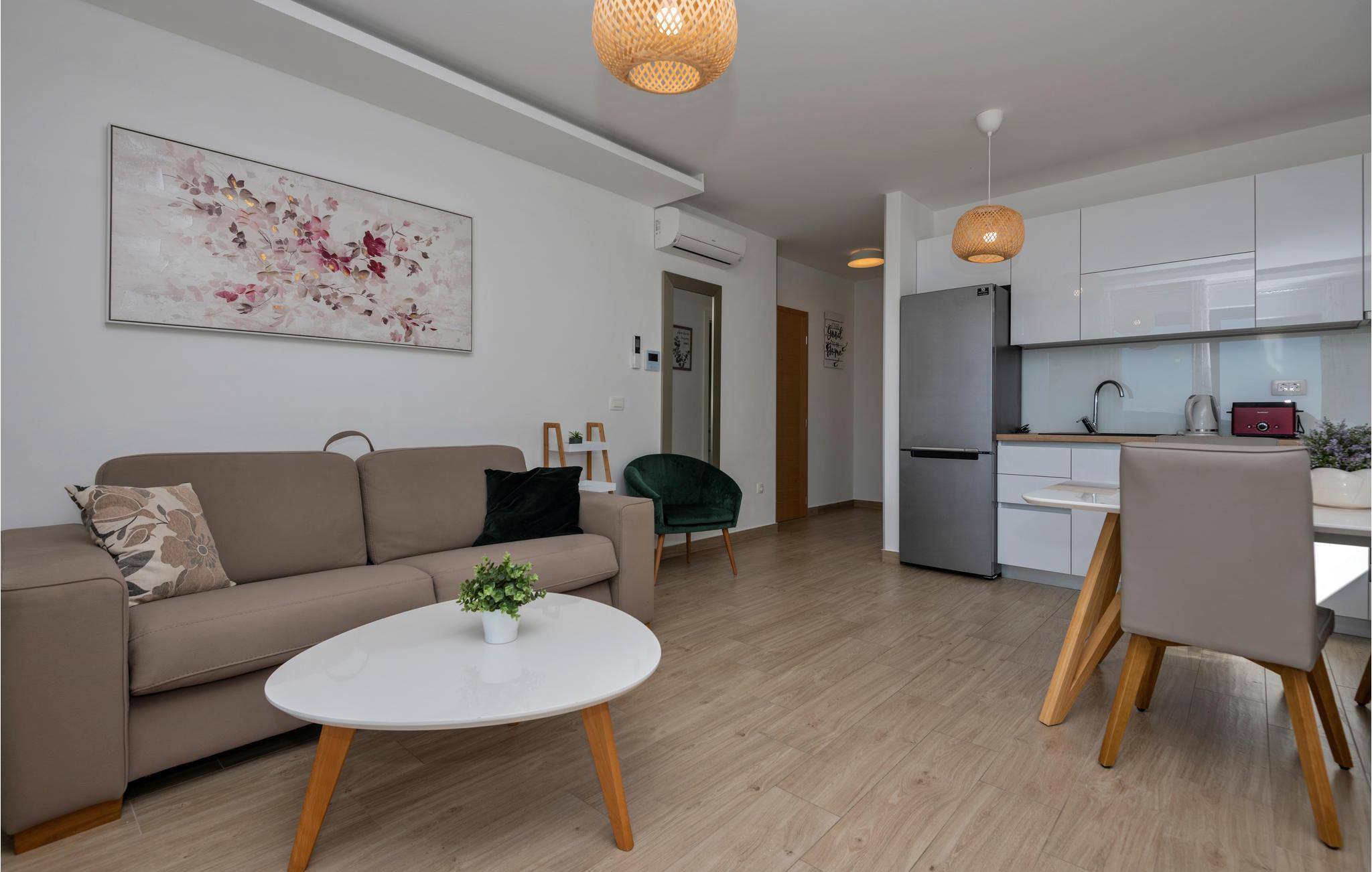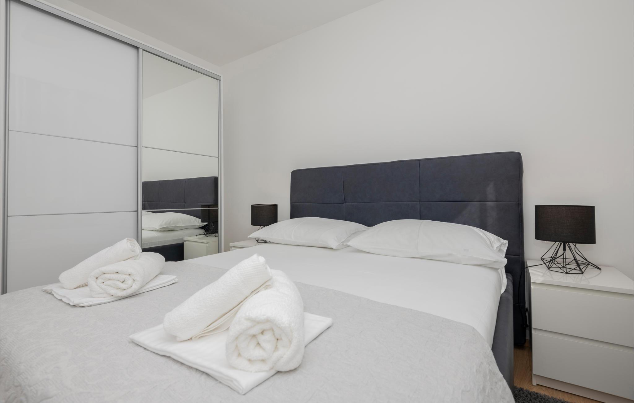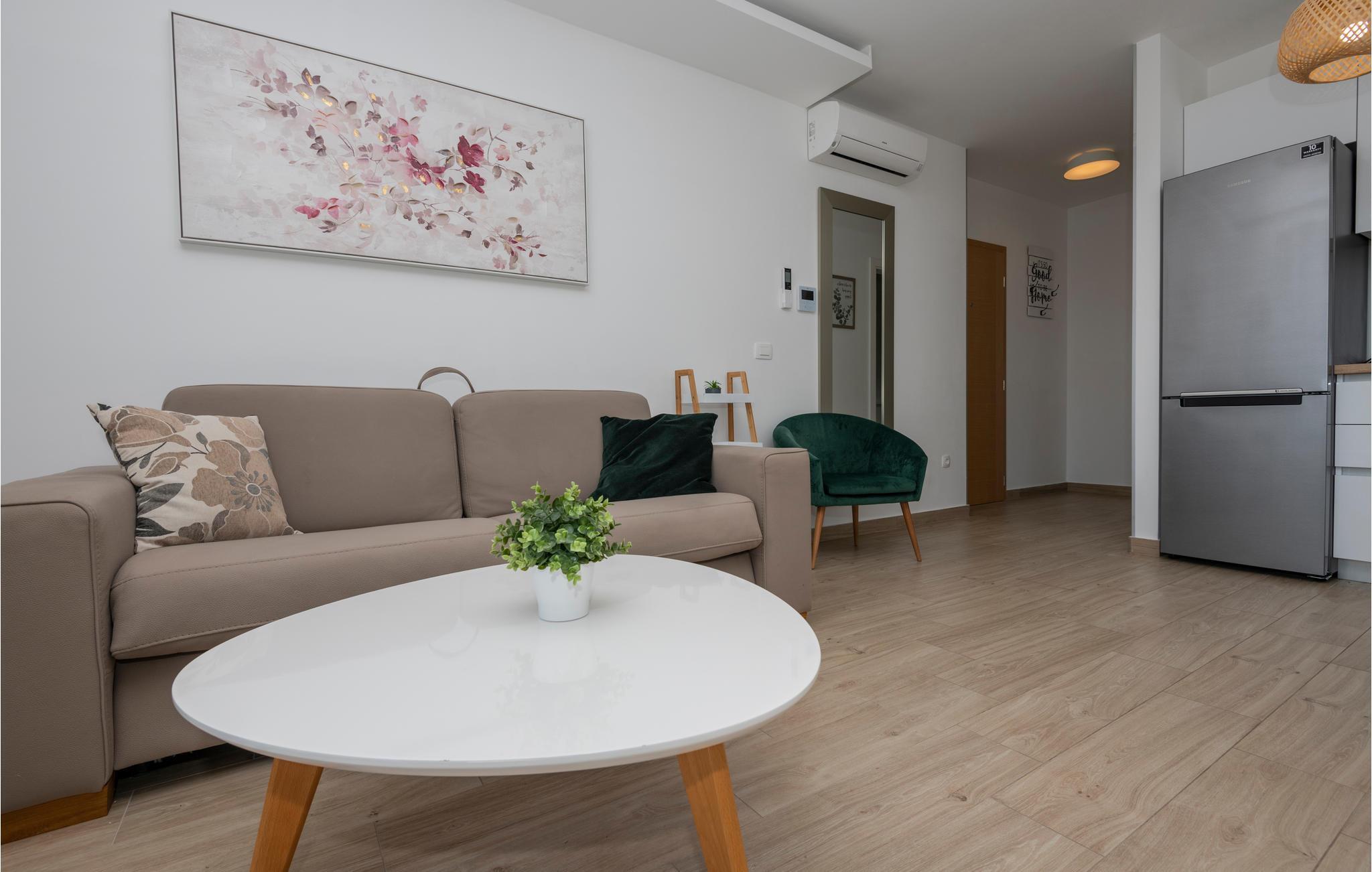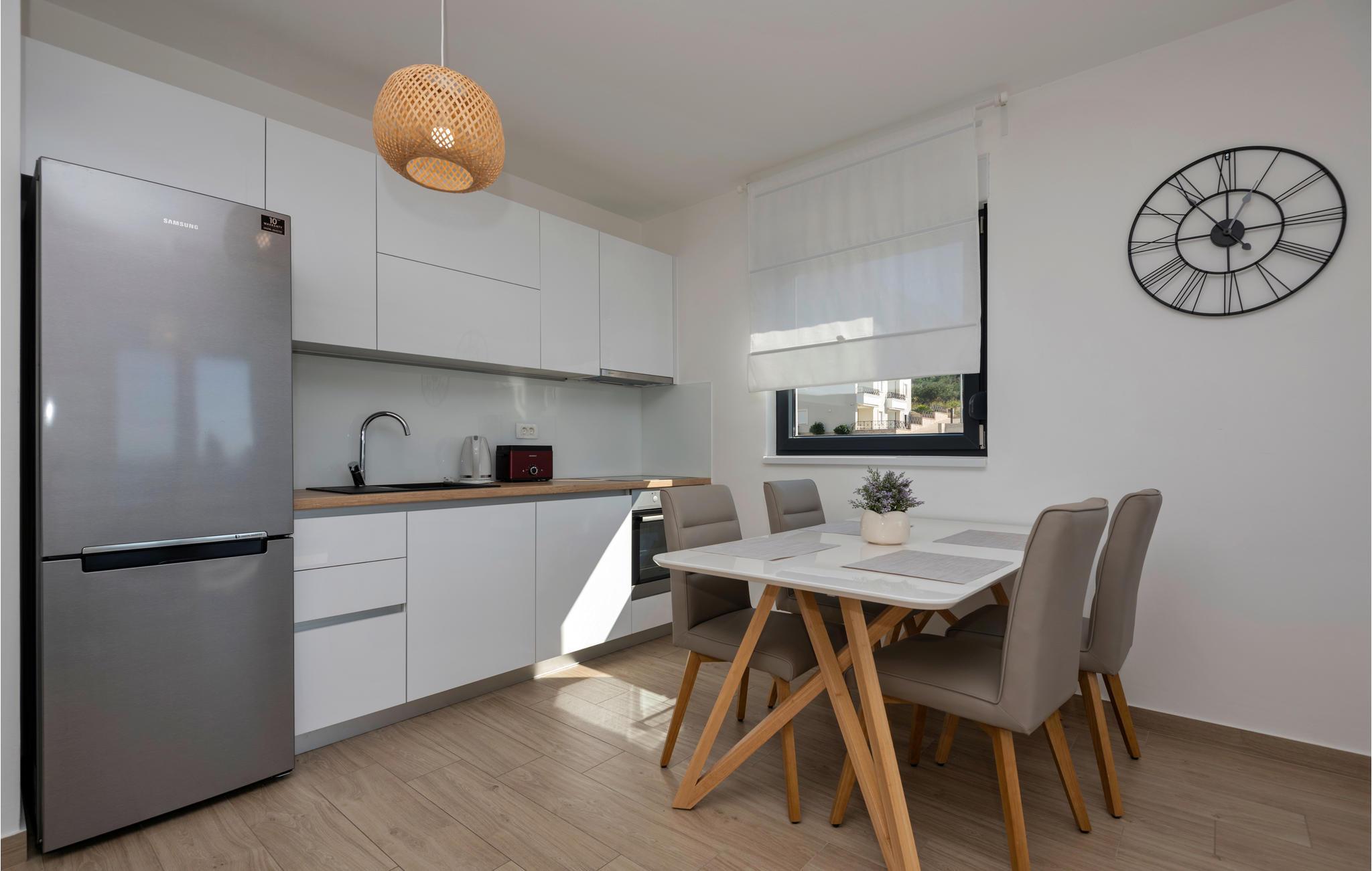 Denne herlige ferieleiligheten er komfortabelt og funksjonelt utstyrt for en hyggelig ferie. Her kan du tilbringe mange herlige timer i og rundt det felles oppvarmede bassenget mens du nyter det fantastiske været ved Adriaterhavet. Ved siden av bassenget er det en felles grill og plass til sosialt samvær og grilling.