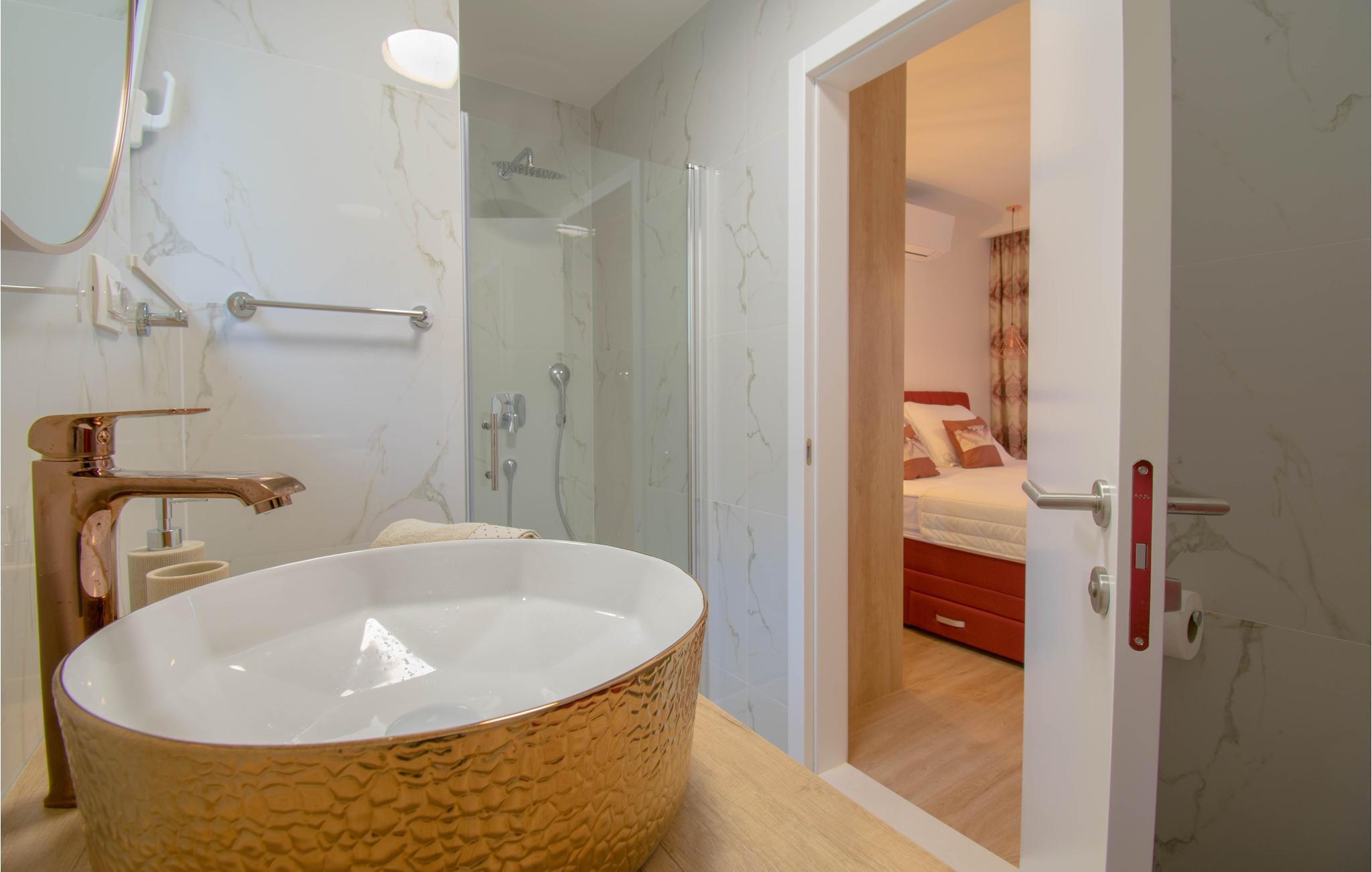 Hvis du savner havet, kan du nå det etter ca. 2 km. I Baska Voda finner du vakre strender som inviterer deg til å hoppe i det glitrende vannet. Restaurantene og barene i nærheten inviterer deg til å smake på deilige kroatiske spesialiteter og se på byens liv og røre over en kjølig drink.