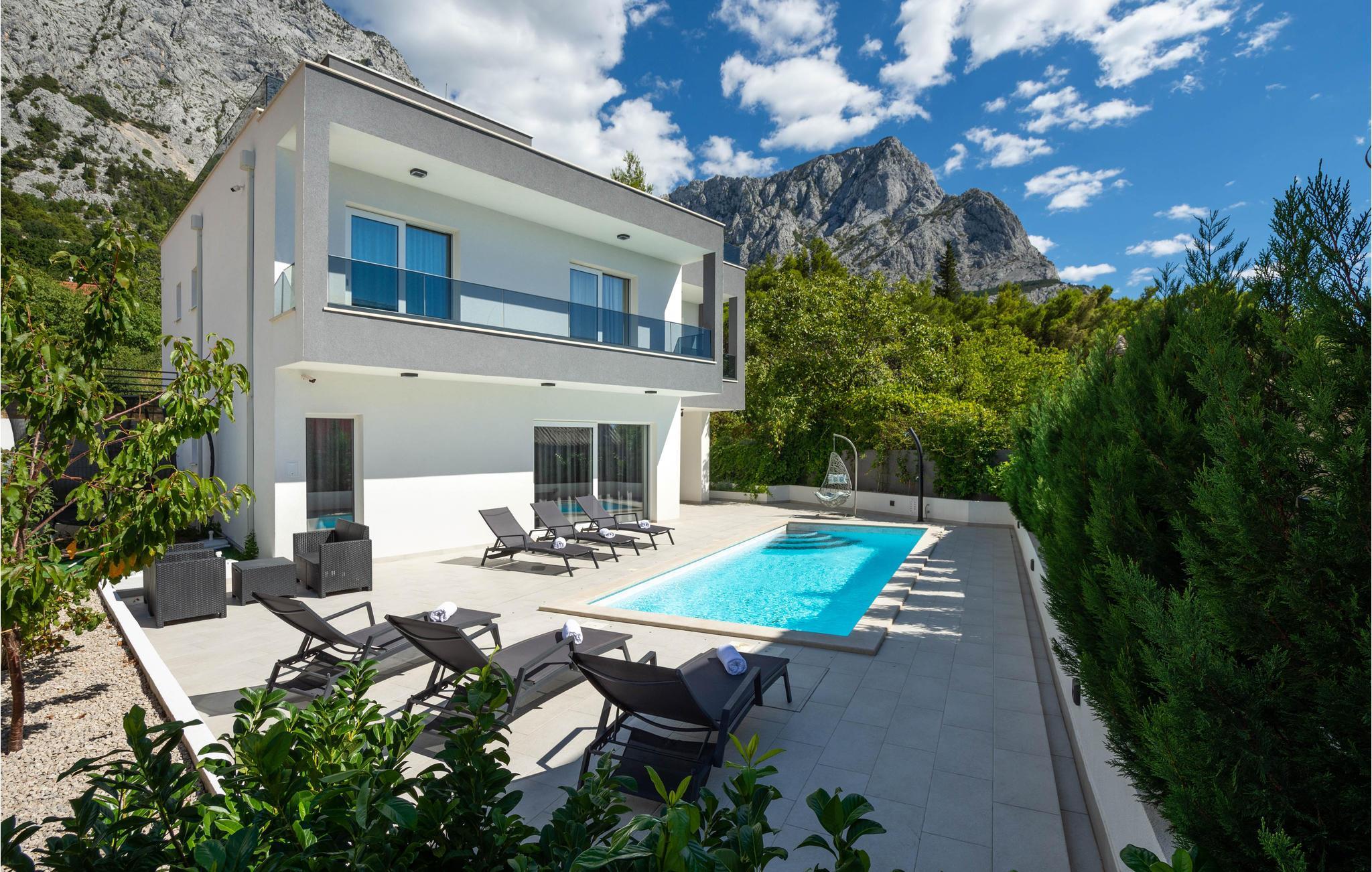 Vakkert hus med en spektakulær fjellkulisse og privat basseng.