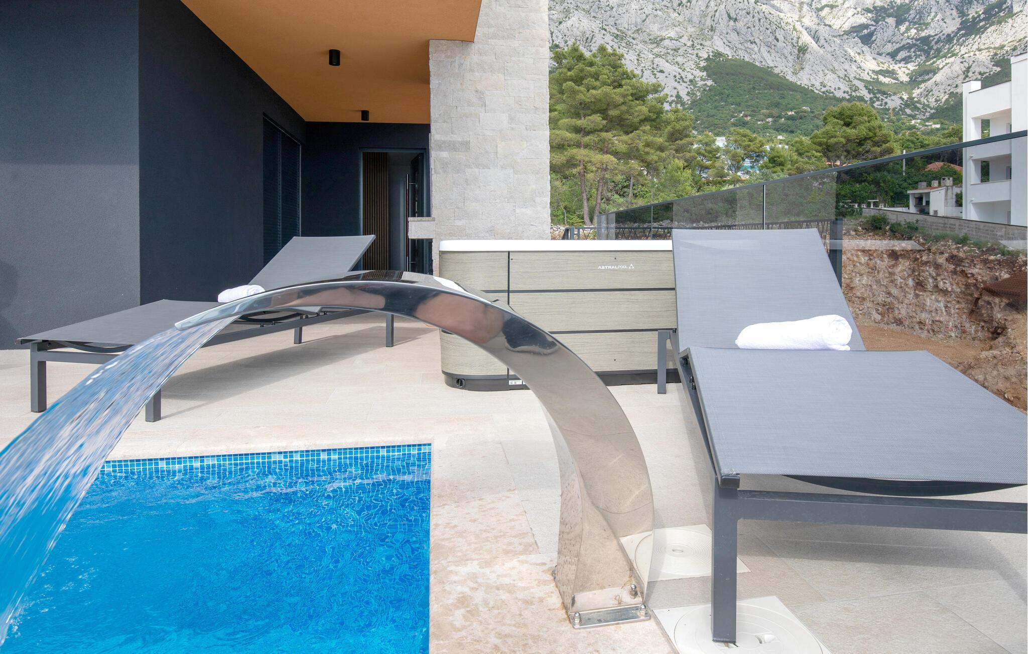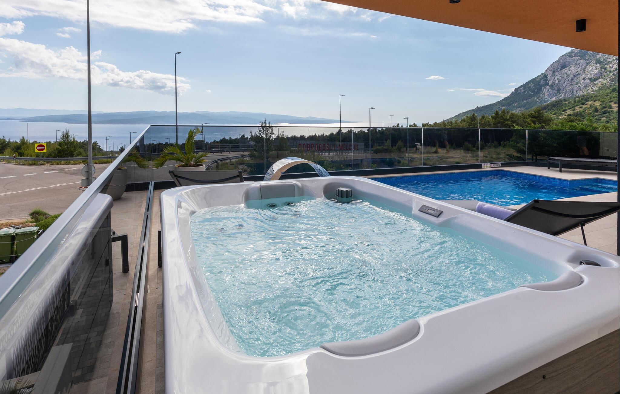 Dette luksuriøse feriehuset har vakker utsikt over havet, og byr på mange fasiliteter.
