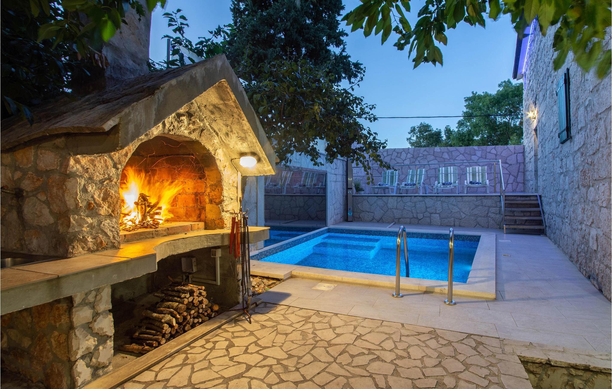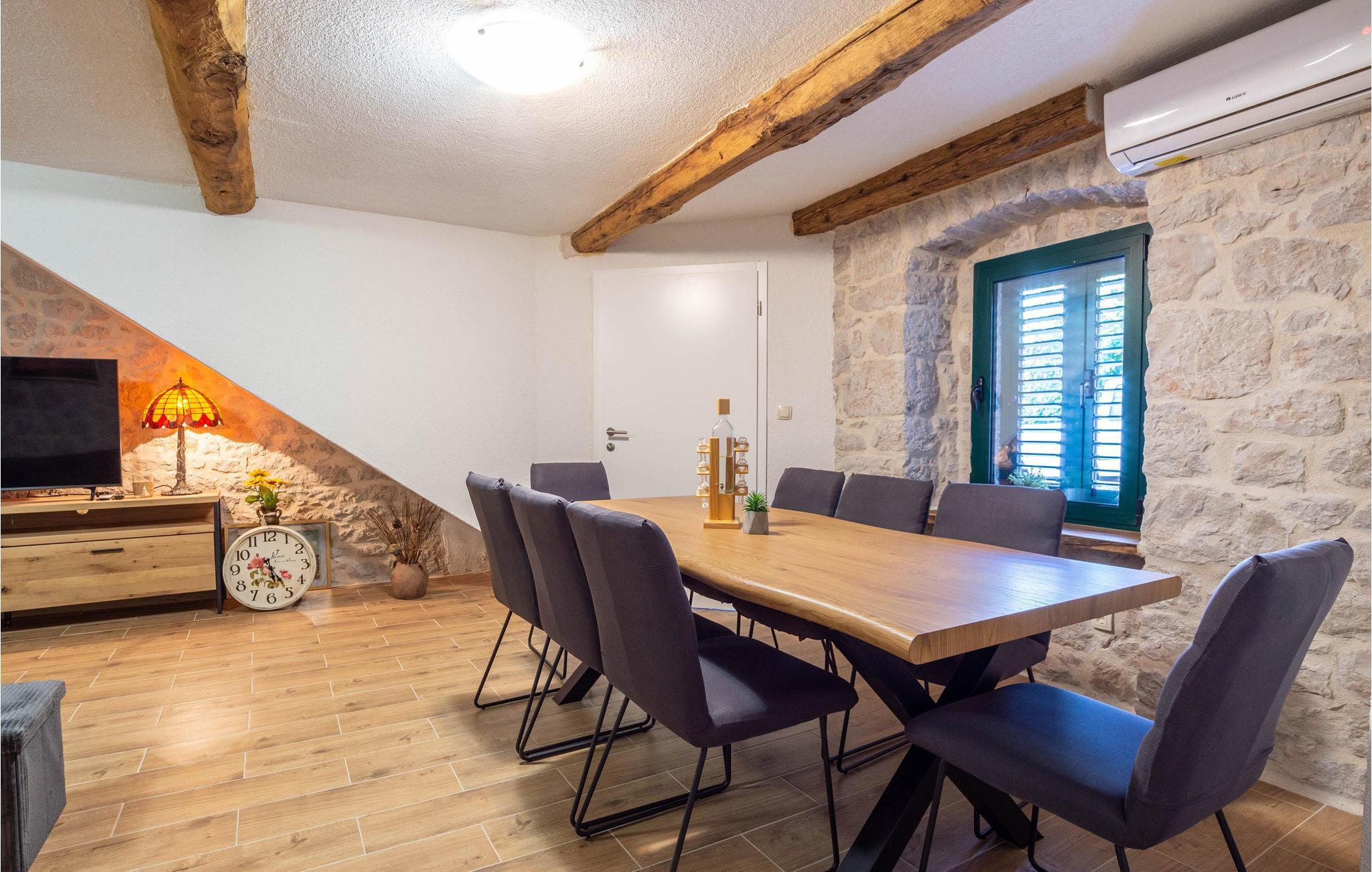 Dette autentiske steinhuset ligger i de grønne omgivelsene i den lille landsbyen Kamenmost, ikke langt fra Imotski. Interiøret er smakfullt, og stuen med peis og den vakkert dekorerte tavernaen konoba i første etasje byr på en spesiell atmosfære. Et loft med skråtak. Mens bassenget tilbyr den nødvendige forfriskningen, er det garantert moro på lekeplassen eller med dart og bordfotball. I nærheten ligger en elv som gir mulighet for bading, kanopadling eller kajakkpadling, og om sommeren kan du fiske (eieren kan hjelpe deg med å kjøpe billetter). Det er en merket sykkelsti langs elven, samt enger, jorder og skog som du kan utforske på de tilgjengelige syklene, og eieren stiller en liten kajakk til rådighet. Dette er et utmerket sted for å slappe av i frisk luft og oppdage uberørt natur på sykkel- eller turstier. Besøk de nærliggende Imotska-innsjøene, som er sanne naturperler, samt strendene på Makarska-rivieraen litt lenger unna.