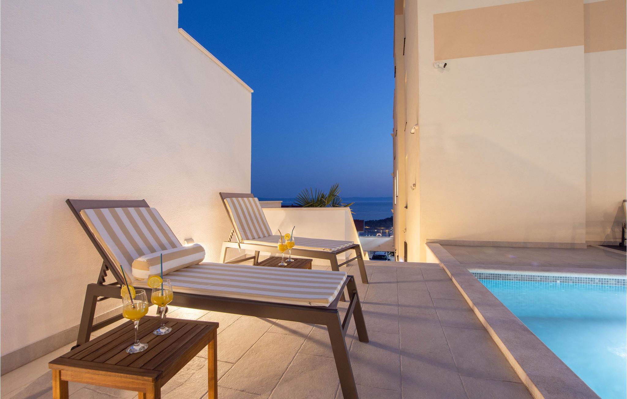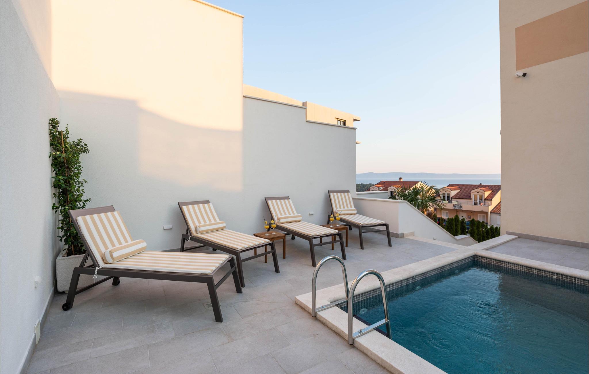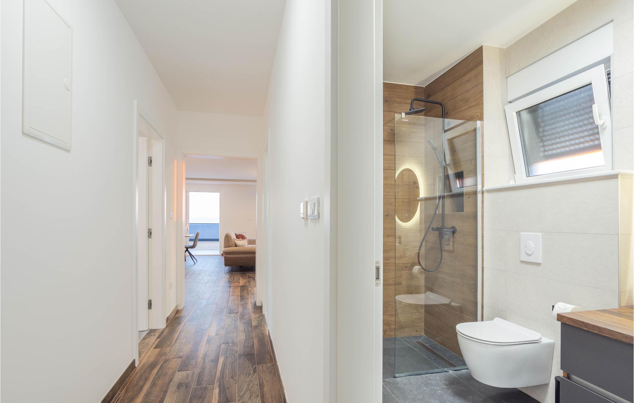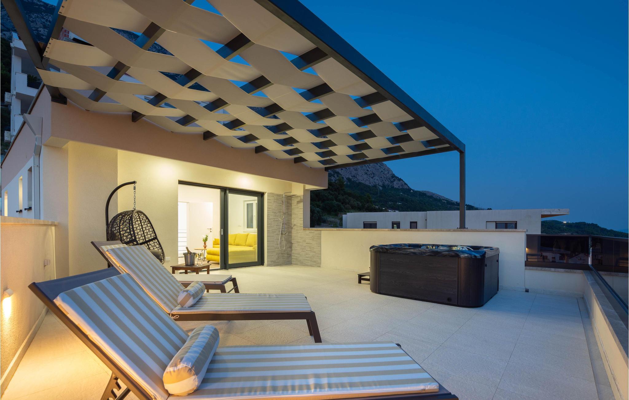 Planlegger du en ferie med familien? Da har du funnet drømmeleiligheten din her. Denne stilfulle leiligheten ligger i et moderne hus over Makarska sentrum, og antall soverom, bad og toaletter lover deg avslapping og privatliv. De elegante møblene utstråler hygge, og det smakfulle oppholdsrommet gir deg også muligheten til å tilbringe tid sammen med dine kjære i huset. Husets fasiliteter avrundes av et trenings- og fritidsrom. Uteområdet gir deg enda flere muligheter. Takterrassen innbyr til avslapping. Ta et bad i boblebadet under stjernehimmelen for opptil 6 personer. Et svømmebasseng ligger bak huset, ute av syne og innbyr til en dukkert.
