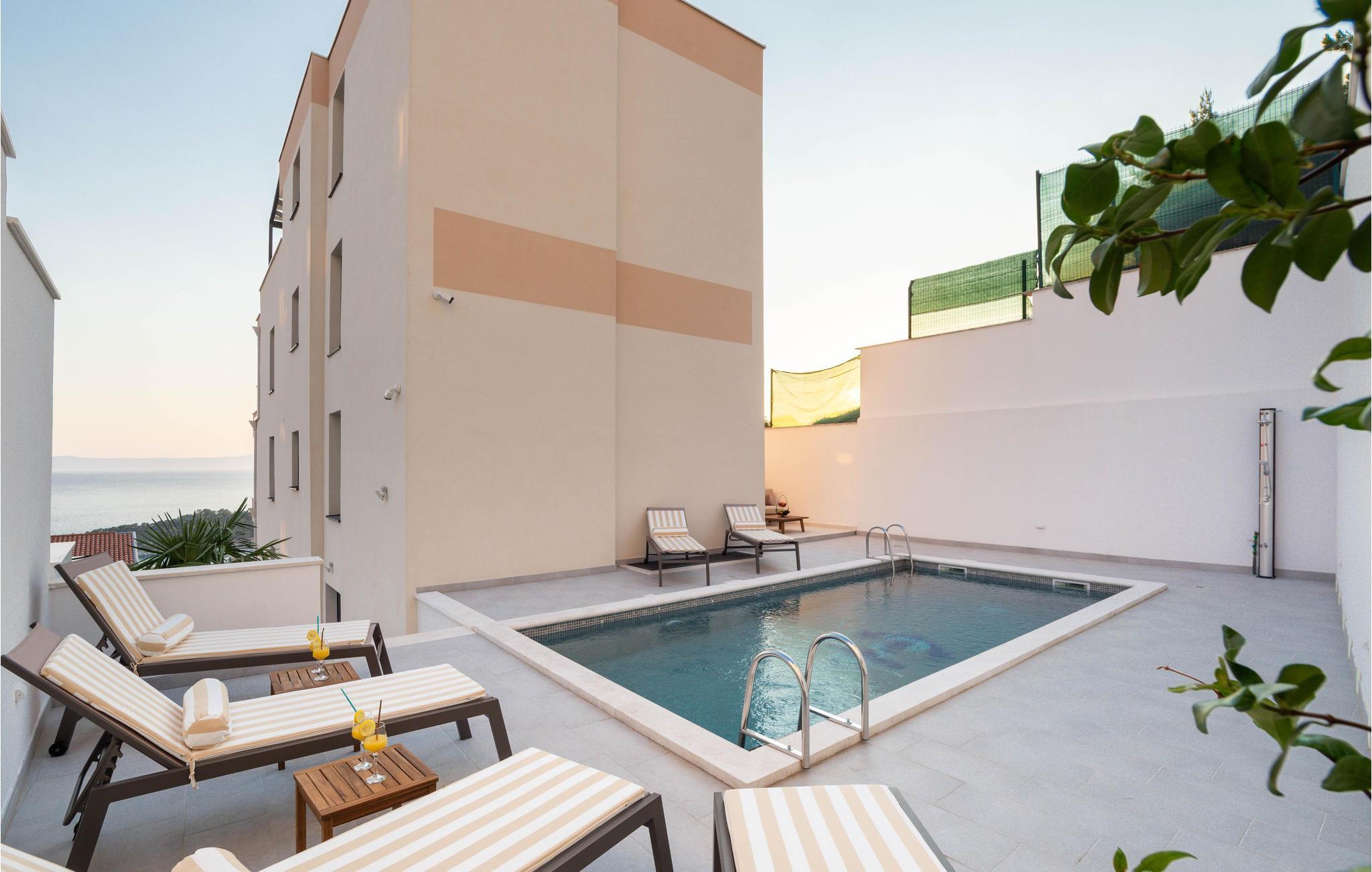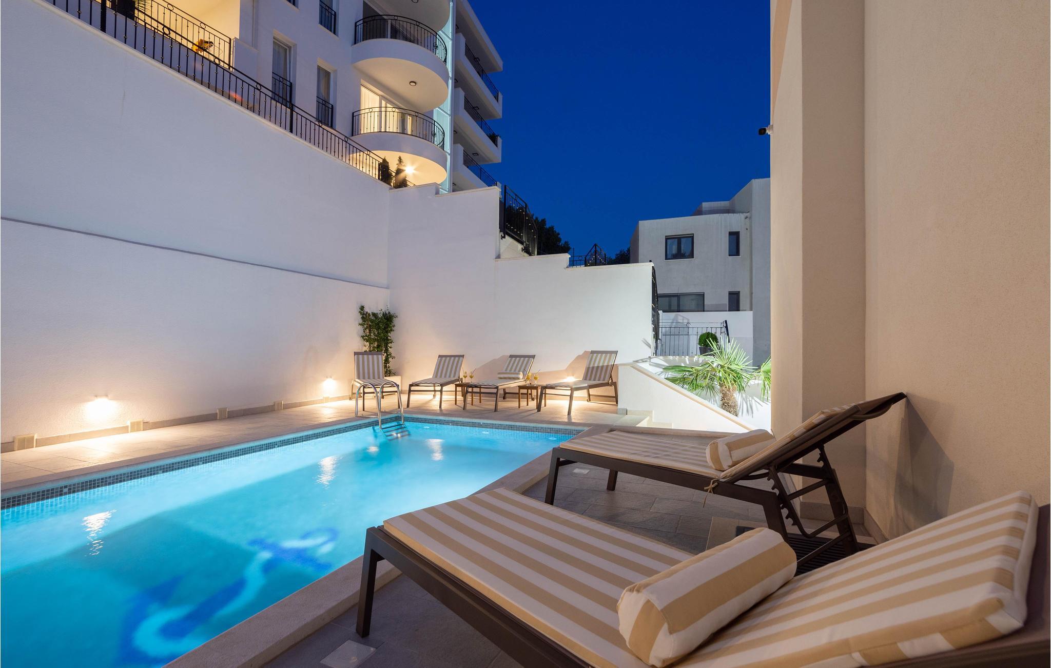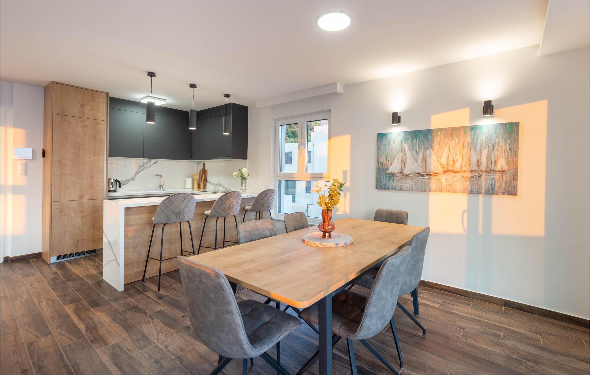 Planlegger du en ferie med familien? Da har du funnet drømmeleiligheten din her. Denne stilfulle leiligheten ligger i et moderne hus over Makarska sentrum, og antall soverom, bad og toaletter lover deg avslapping og privatliv. De elegante møblene utstråler hygge, og det smakfulle oppholdsrommet gir deg også muligheten til å tilbringe tid sammen med dine kjære i huset. Husets fasiliteter avrundes av et trenings- og fritidsrom. Uteområdet gir deg enda flere muligheter. Takterrassen innbyr til avslapping. Ta et bad i boblebadet under stjernehimmelen for opptil 6 personer. Et svømmebasseng ligger bak huset, ute av syne og innbyr til en dukkert.
