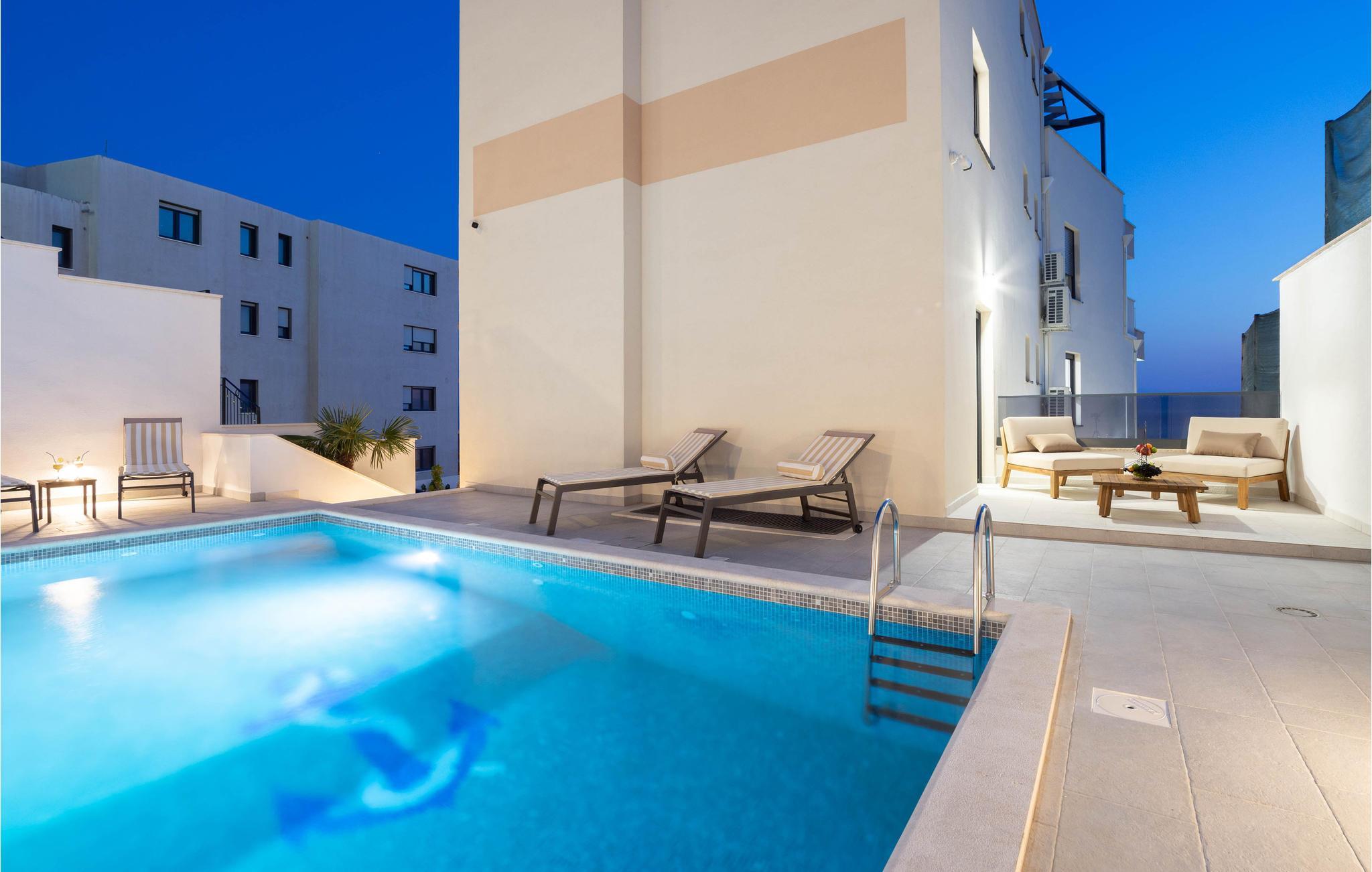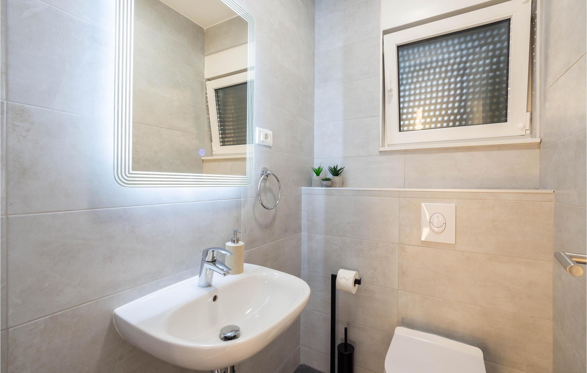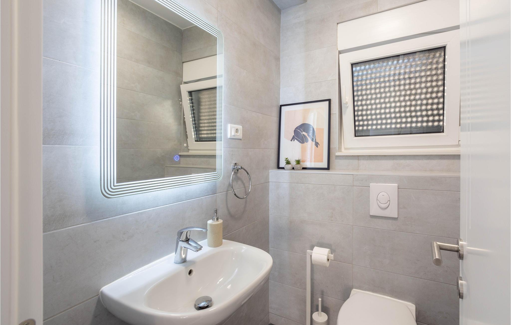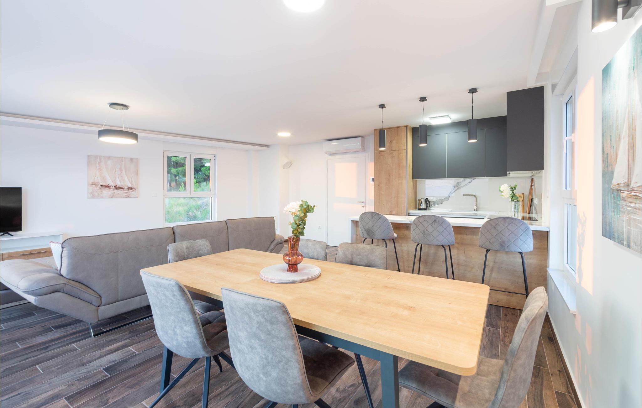 Planlegger du en ferie med familien? Da har du funnet drømmeleiligheten din her. Denne stilfulle leiligheten ligger i et moderne hus over Makarska sentrum, og antall soverom, bad og toaletter lover deg avslapping og privatliv. De elegante møblene utstråler hygge, og det smakfulle oppholdsrommet gir deg også muligheten til å tilbringe tid sammen med dine kjære i huset. Husets fasiliteter avrundes av et trenings- og fritidsrom. Uteområdet gir deg enda flere muligheter. Takterrassen innbyr til avslapping. Ta et bad i boblebadet under stjernehimmelen for opptil 6 personer. Et svømmebasseng ligger bak huset, ute av syne og innbyr til en dukkert.