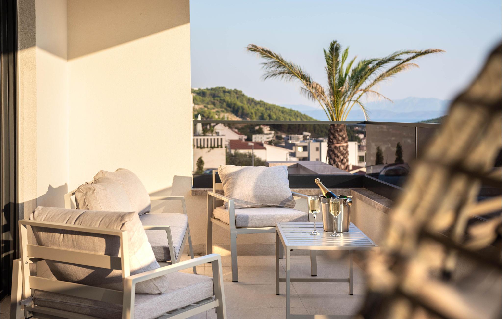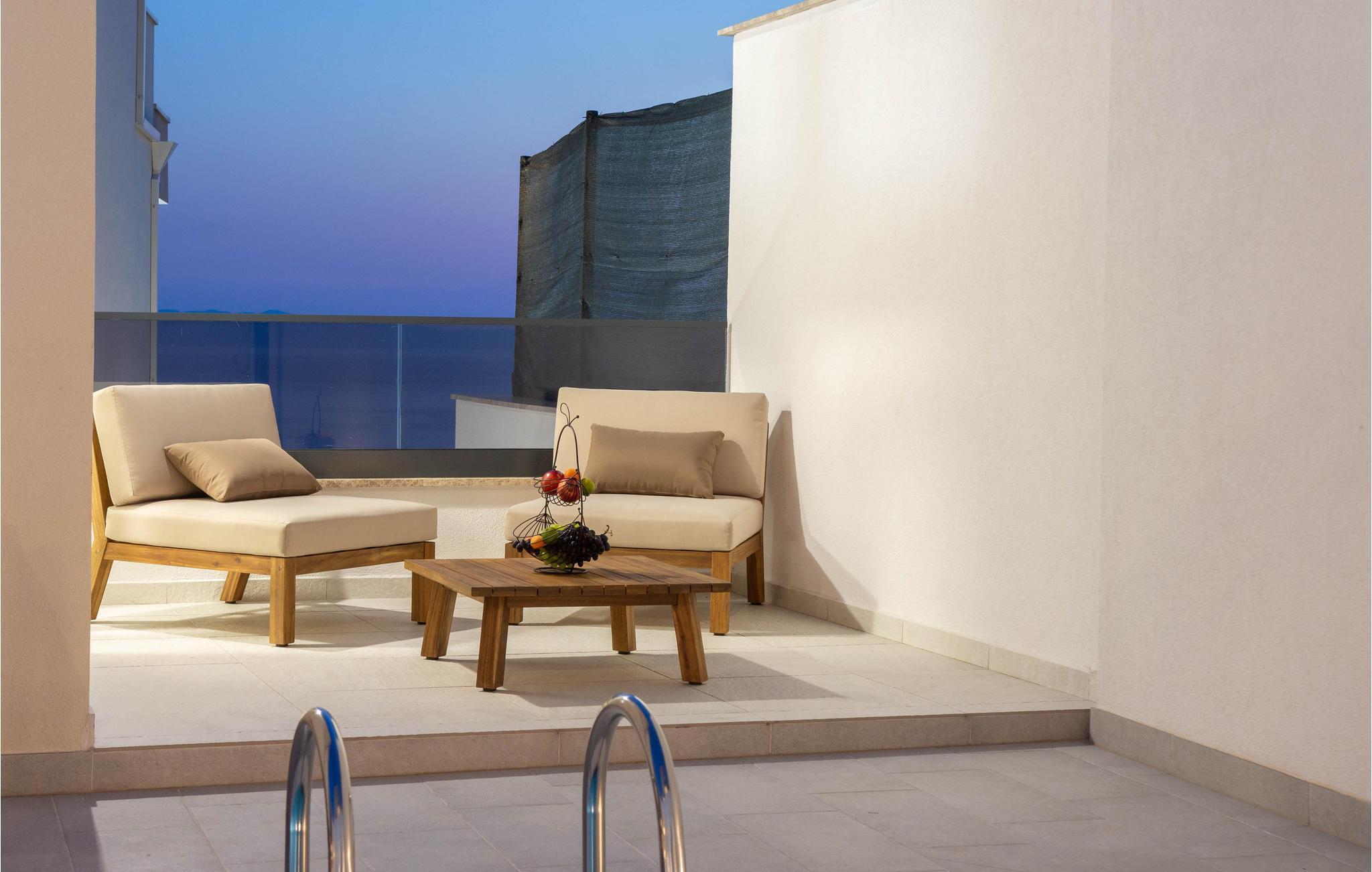 Drømmeleiligheten med utsikt over havet og øya for en bekymringsløs ferie med familie og venner.