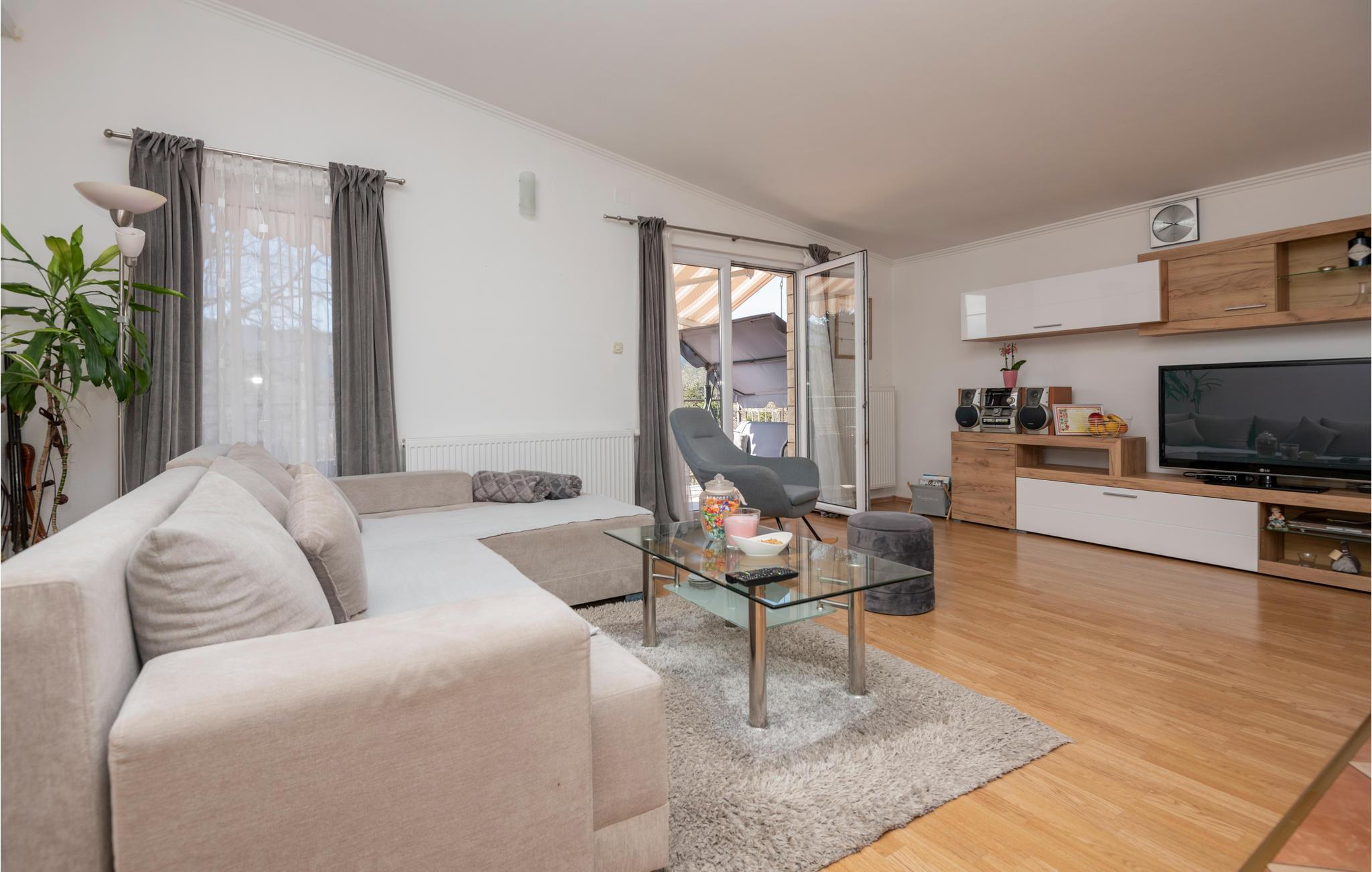Føl deg komfortabel i det romslige huset, som ønsker deg velkommen i en idyllisk beliggenhet og tilbyr den ideelle rammen for en avslappende pause med sine tiltalende rom, der rustikke elementer og moderne møbler danner en spennende blanding. Her kan dere nyte dagene sammen til det fulle. Etter en herlig dag kan dere slå dere ned i den romslige sofaen hvor dere kan sitte komfortabelt sammen i lang tid fremover.