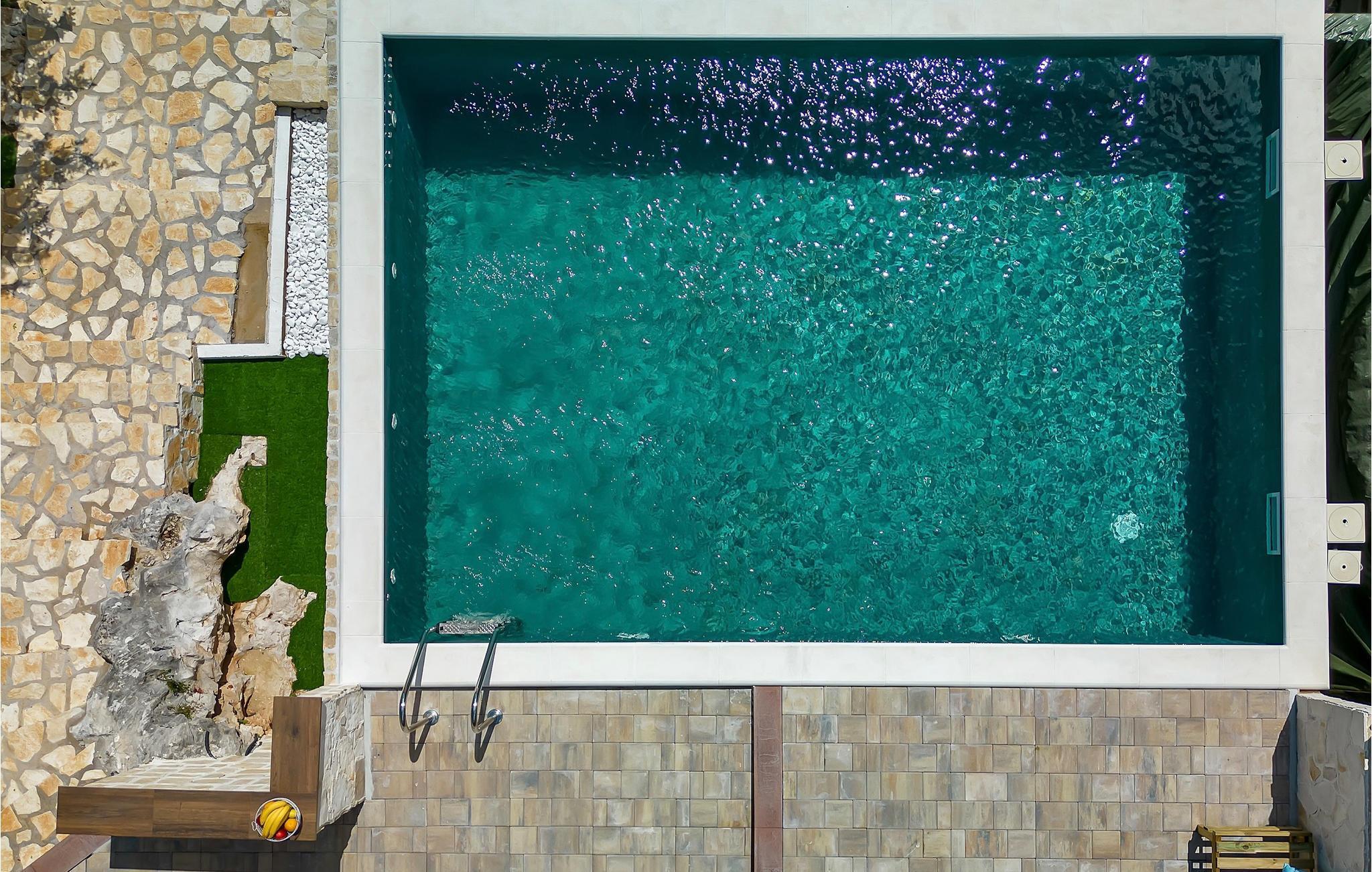Nyt herlige timer utendørs, soling eller en koselig grilleftermiddag på terrassen får deg raskt til å glemme alle tanker om hverdagen, mens forfriskende dukkerter i bassenget, der du kan nyte de vakre omgivelsene, avrunder opplevelsen.