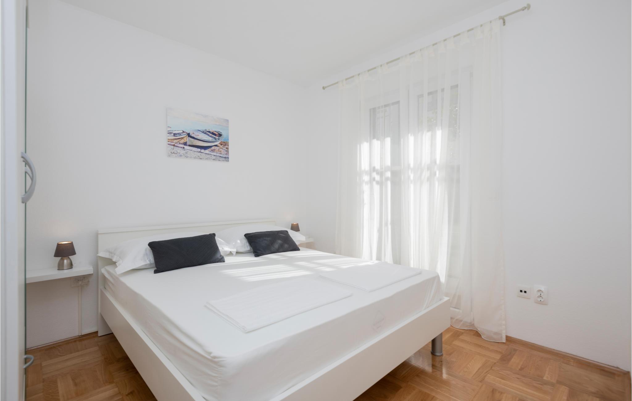 Et vakkert og moderne feriehus venter på deg i Makarska. Du bor i første etasje i dette vakre huset og vil føle deg som hjemme i de komfortable rommene. Takket være soverommene og badene kan du nyte privatlivet ditt og slappe av om natten i løpet av familieferien. Unnslippe den hektiske hverdagen og tilbringe morgenen på den solfylte terrassen med en solid frokost. Deretter kan du slappe av på solsengene og lese en god bok mens barna leker i vannet.