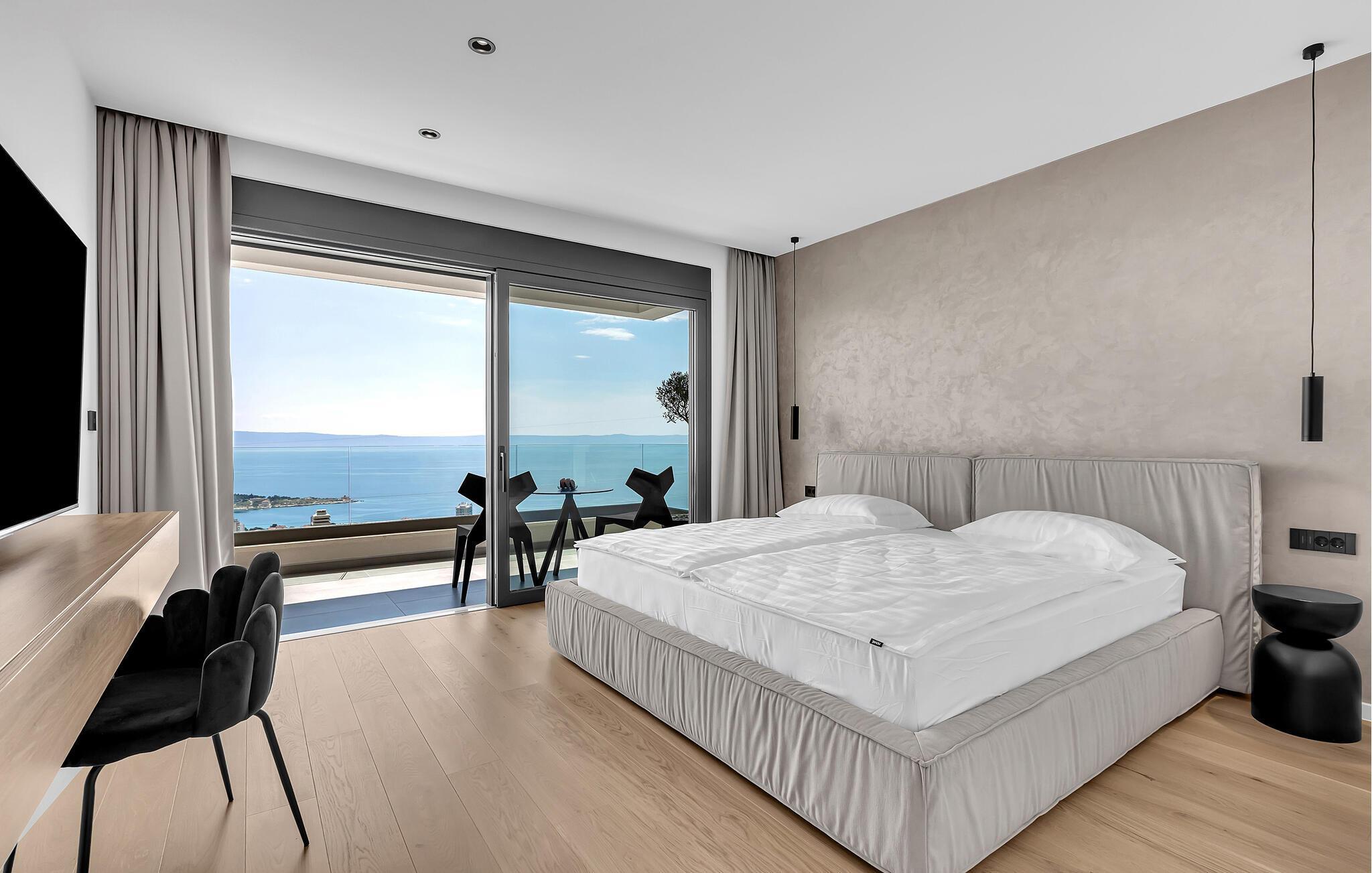 Nyt en fantastisk havutsikt i dette attraktive feriehuset med basseng og velværeavdeling.