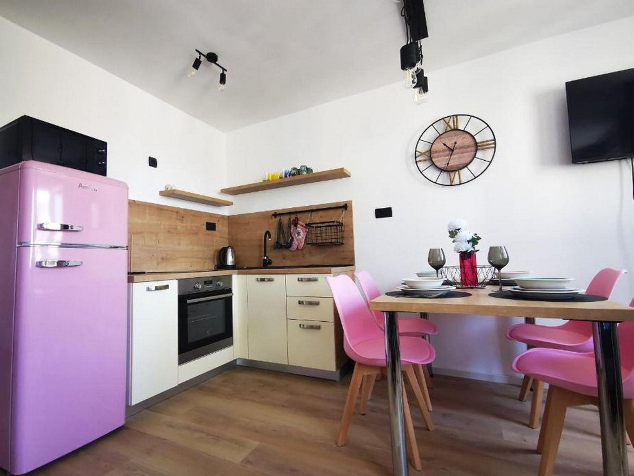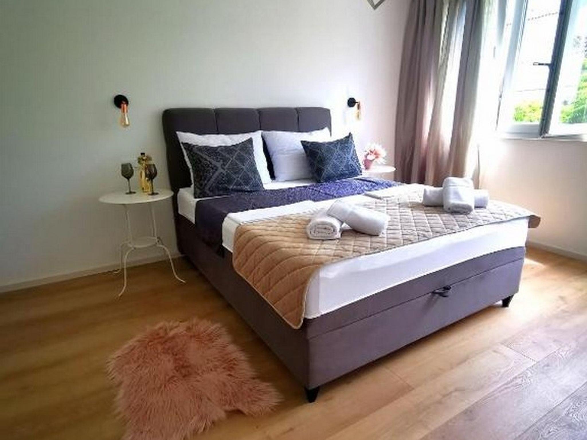 Ferienwohnung bietet Platz für 5 Gäste. Die Betten sind in Schlafzimmern, die es 2 gibt, und in Wohnzimmer, innerhalb einer Gesamtfläche von 49m2, angeordnet. Die reservierte Unterkunftseinheit hat keinen Balkon und keine Terrasse. IM PREIS INBEGRIFFEN: Kurtaxe, Endreinigung, Klimatisierung, Parkplatz, Garage, Internet, Kinderbett, Bügeleisen, Bügelbrett, Föhn. VERBINDLICHE ZUSÄTZLICHE KOSTEN: Aufzahlung für Kurzaufenthalte (prozentualer Zuschlag pro Nächtigungsanzahl: 30% - 1, 20% - 2, 10% - 3). Die Verfügbarkeit zusätzlicher Dienstleistungen in Ihrem reservierten Termin und die Preise derselben (falls nicht aufgeführt) müssen im Voraus überprüft werden. Zusätzliche Dienstleistungen die in der Zahlungsaufforderung nicht aufgeführt sind werden direkt beim Vermieter bezahlt, angenommen der Gast nutzt auch diese.