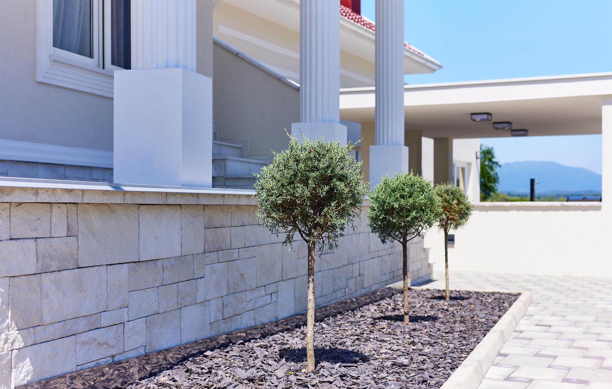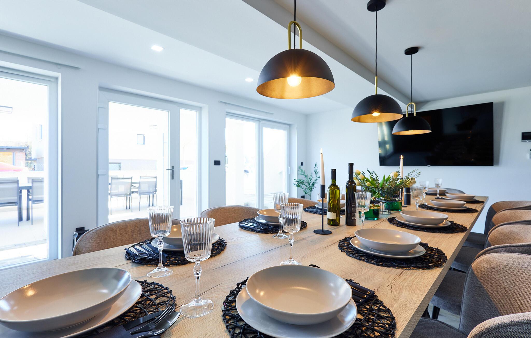 Stilfullt og komfortabelt feriehus med mange fasiliteter i et fredelig landskap.