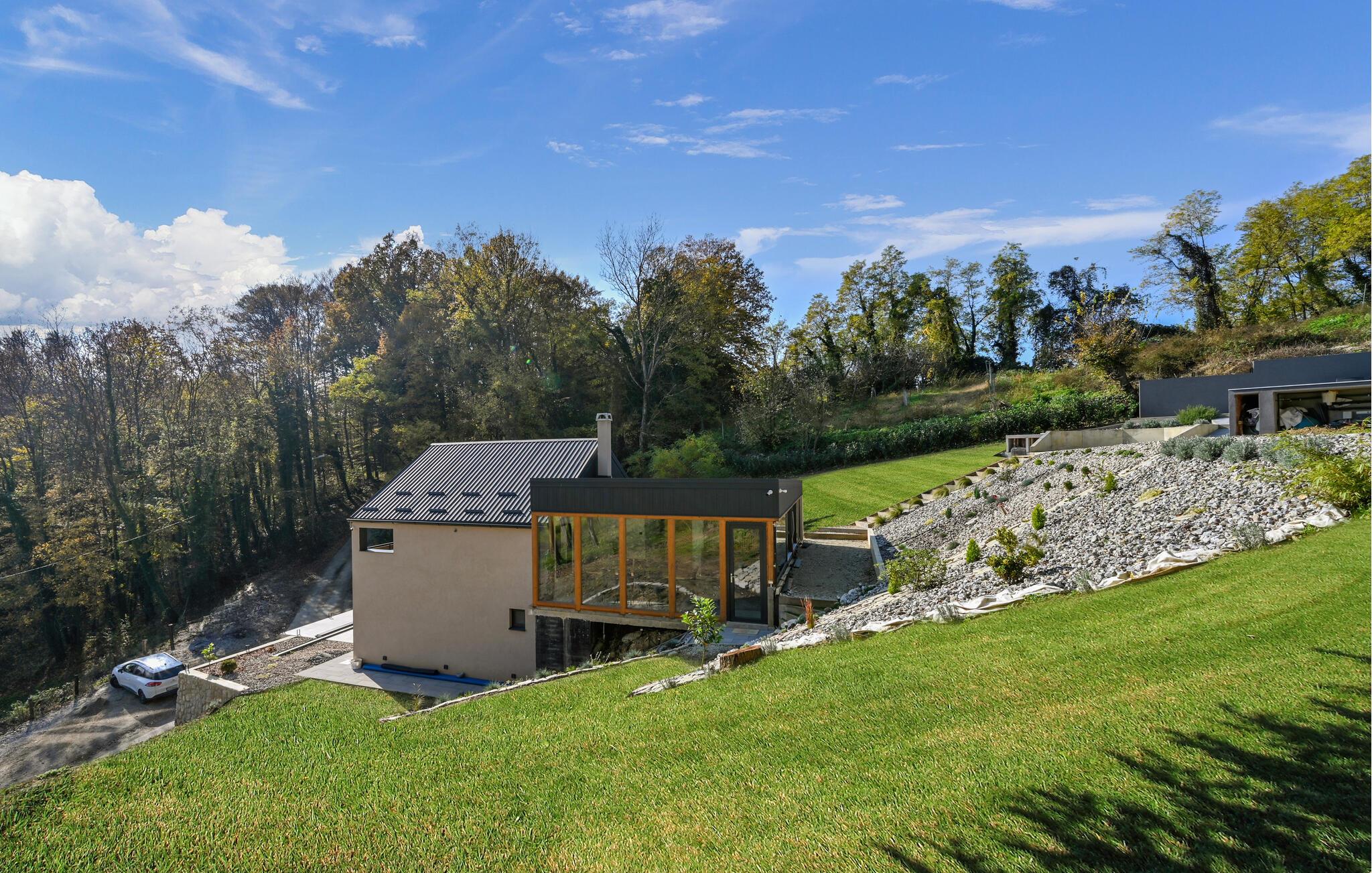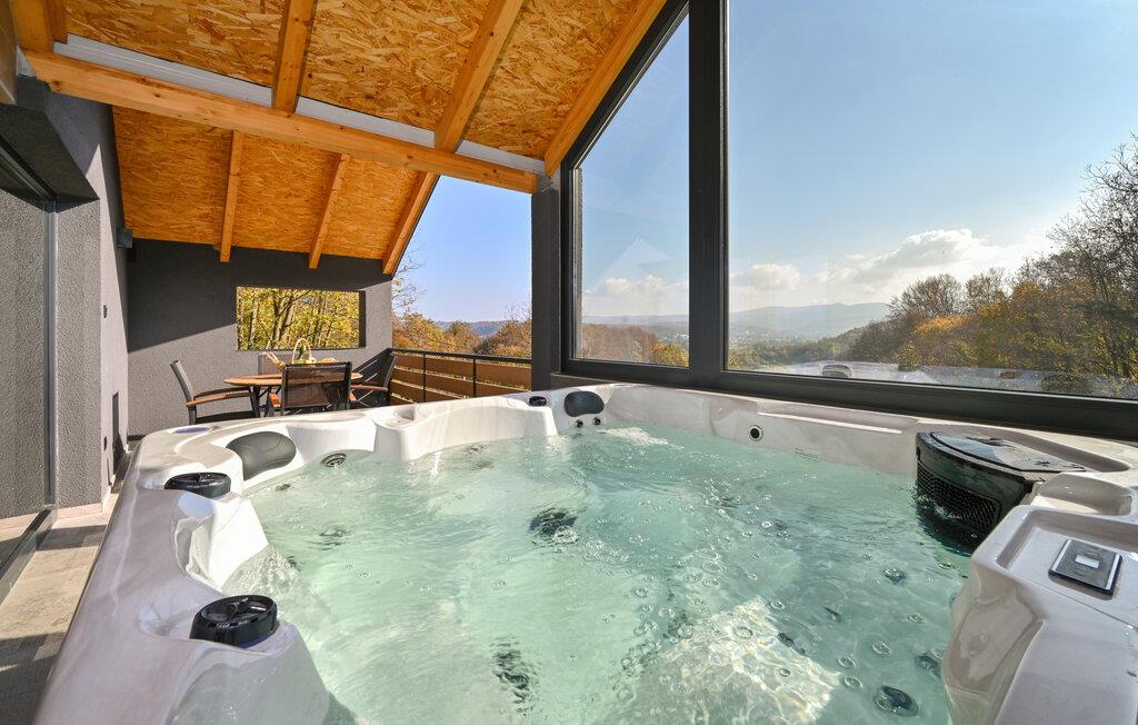 Nyt avslappende dager i et moderne feriehus med basseng og fantastisk utsikt.