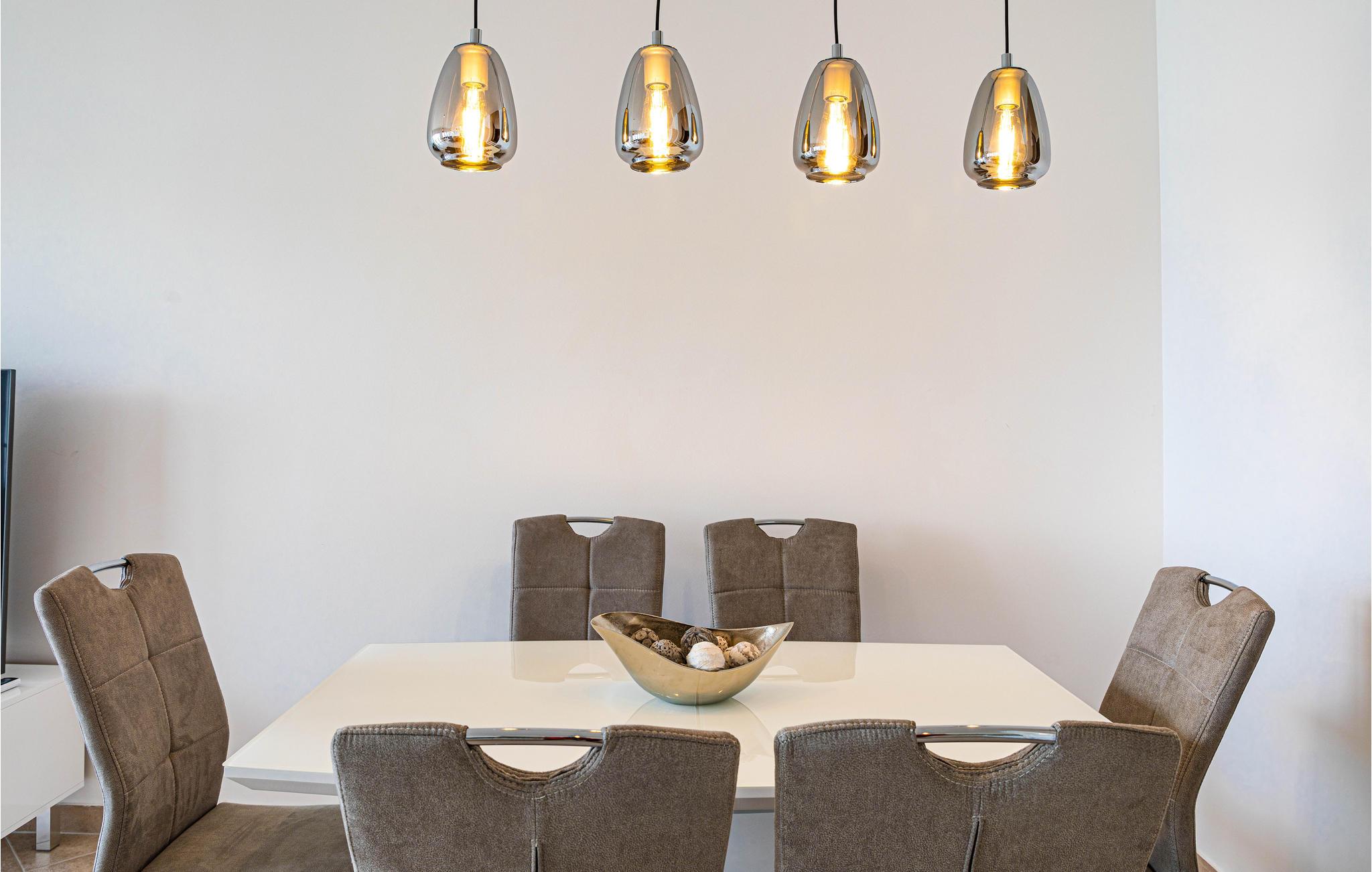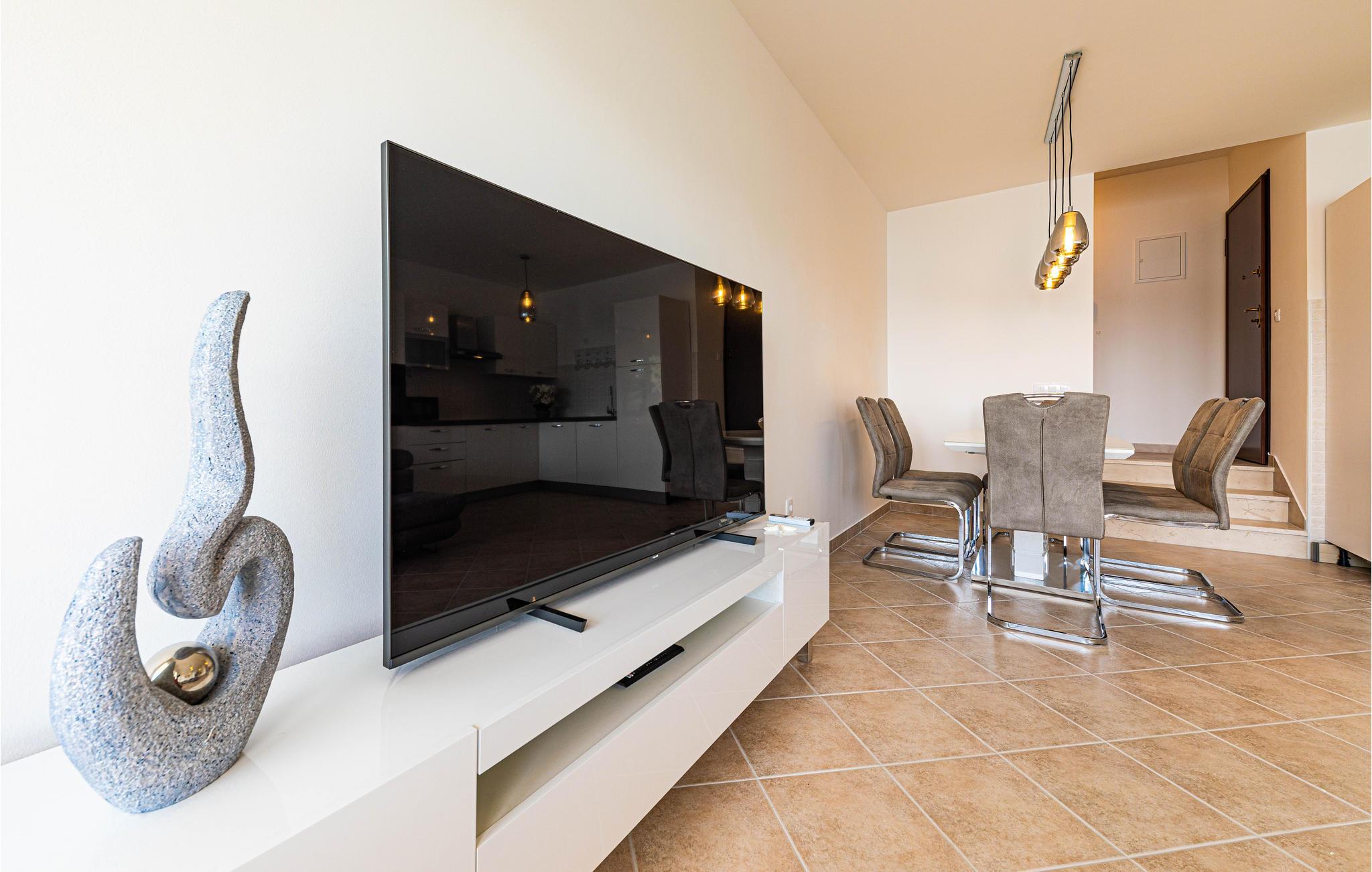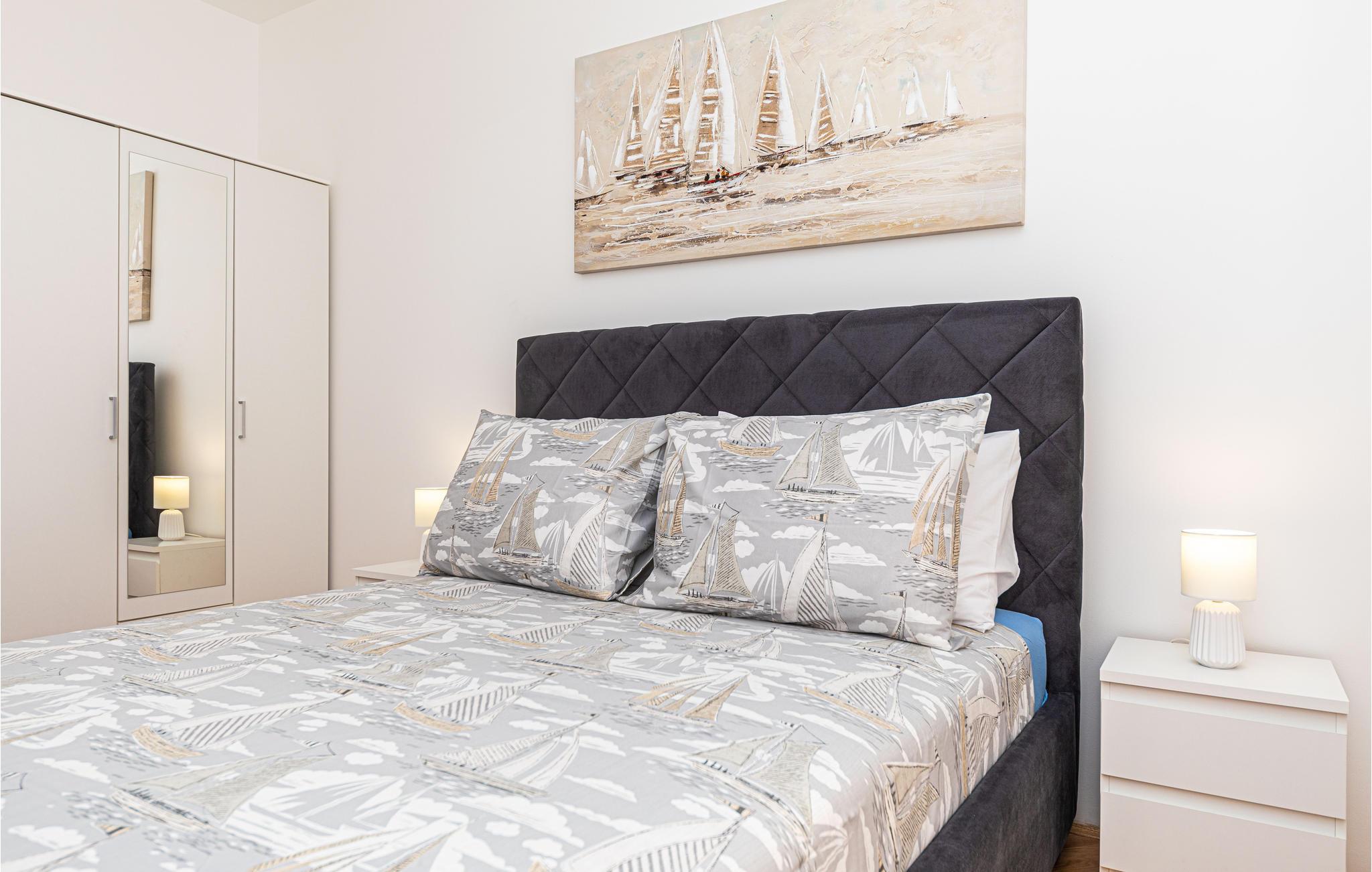 Denne store, moderne ferieboligen ligger i nærheten av den vakre byen Trogir, hvor du kan ha en fantastisk tid når som helst på året. Fra balkongen har du en spektakulær utsikt over sundet og havnen i Marina. Her kan du puste inn den klare, friske sjøluften i de tidlige morgentimene, noe som gir deg en frisk start på dagen. Om kvelden er det sannsynligvis enda vakrere, når fiskerne og sjøfolkene kommer tilbake fra utfluktene sine og solen går ned. Sett deg godt til rette i sofaen sammen med dine nærmeste og nyt utsikten. På varme dager kan du hoppe rett i sjøen. På grunn av det høye saltinnholdet i regionen kan du nesten gli i sjøen.