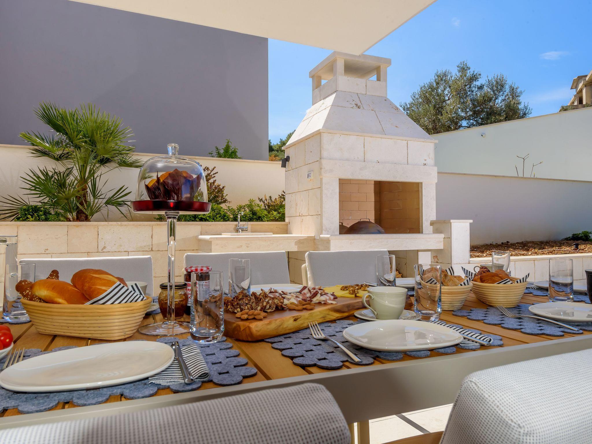 Villas are located only 150 m from the sea and pebble beach and 10 min driving from UNESCO's city Trogir. Marina is a small, quiet fishing village situated in a beautiful bay of clear sea and untouched nature. In the vicinity, there are several beautiful bays known for their beautiful pebble and sandy beaches. There are several shops, restaurants and cafes in Marina and a small marina for boaters.