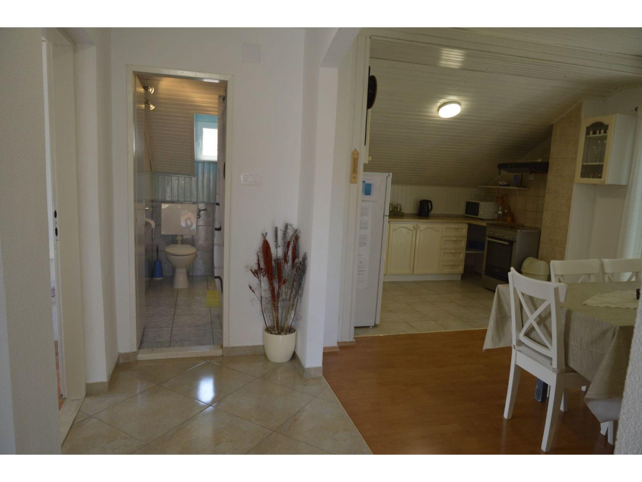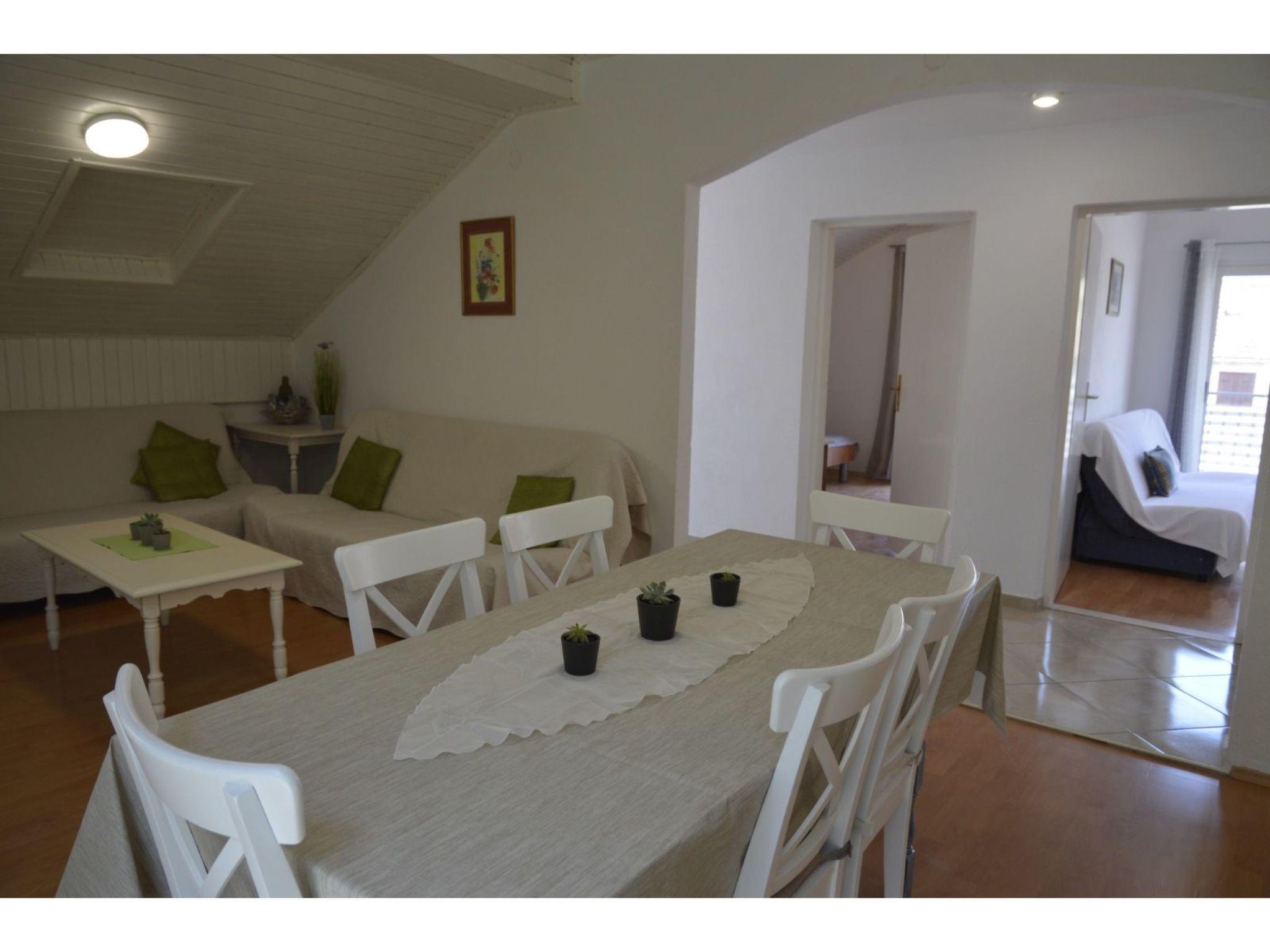 The apartment is situated on the upper house floor in the family house, giving you a nice sea view and the old Marina tower . It is much bigger than standard apartments so you'll have a full comfort here. You will have a whole house floor(90 sqm) with separate entrance and 2 balconies ( 10+8 sqm) on your disposal . There is one more apartment in house which can be combined with this one. It is fully equipped, spacious with nice croft, garden with grill. It consists of: two big bedrooms (double and additional bed) with exit to balcony with sea view, bathroom with toilet, kitchen with living room and dinning room also with exit to another balcony with garden view and private fenced parking lot for 2 cars. It is in vicinity of all services and the owners live on the first floor so they're always there for you. It is suitable for families with children or group of young people. General information: - Space 90 m2+ balconies, capacity 4 adults ,sea and garden view - Air conditioning, free parking lot, Internet,, changing bed linen and towels once a week, using grill, - using washing machine on the first house floor free of charge - Check in 14:00 pm - Check out 10:00 am Equipment: - Utensils, cutlery ,glasses ,toilet paper, kitchen role, soap, dishtowels, hair dryer - Kettle, toaster, mixer, coffee machine, iron - TV, microwave oven, fridge with deep freezer , electrical stove Distances: - Fish and green market , post office, and pharmacy 250m,doctor 30 m In vicinity of all major attractions. Possibility of leisure activities and sports & adventure activities. *** Price includes: - parking lot for 2 cars, air conditioning, visitor's tax, bed linen, towels, dishtowels, changing bed linen and towels once a week, using grill, internet access, final cleaning, energy costs, late arrival