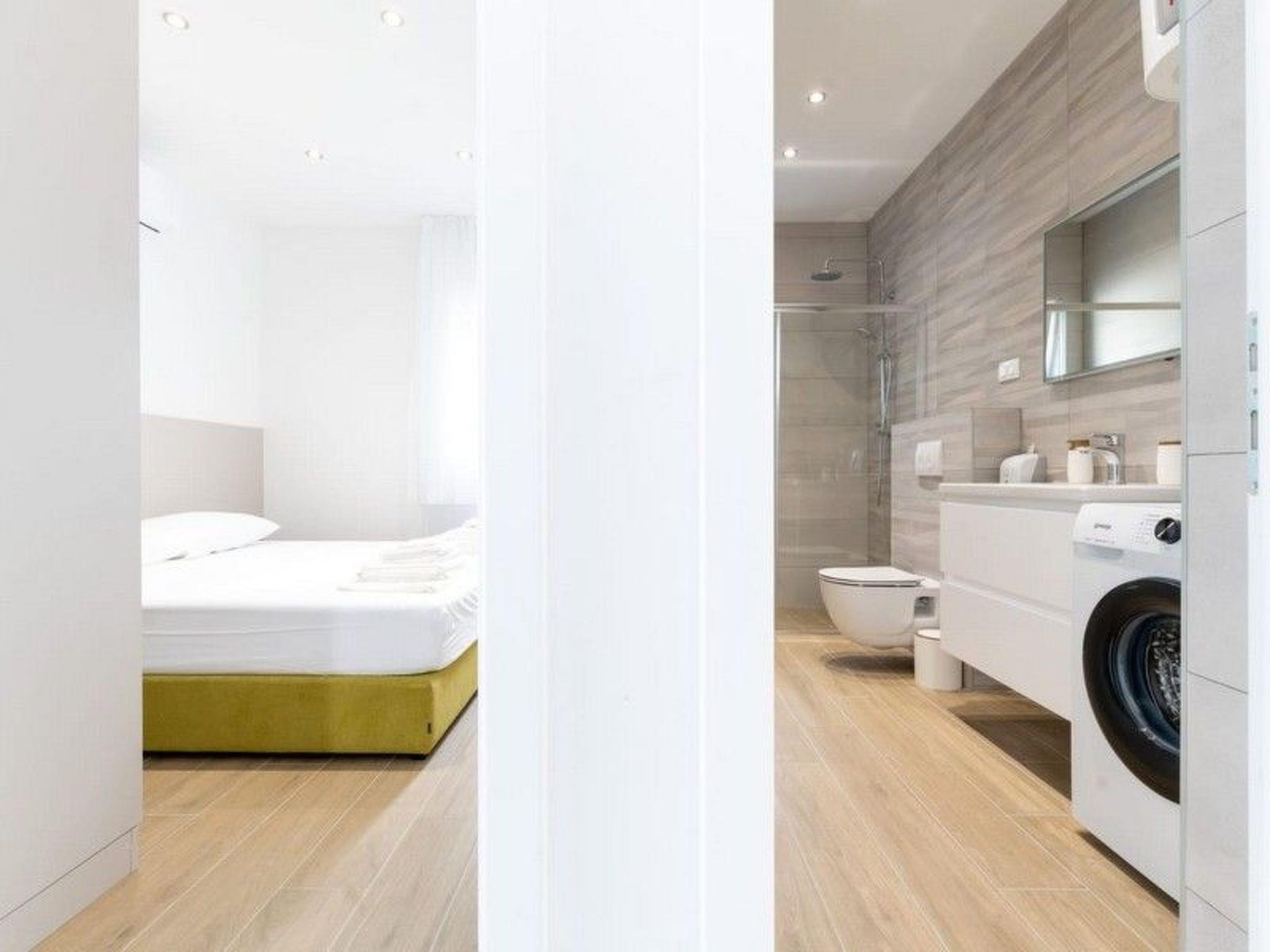 Luxury apartment Aura is fully air-conditioned and equipped with SAT-TV, Wi-fi internet, blinds, iron and ironing board, induction stove, oven, hood, refrigerator with freezer, dishwasher, microwave, electric kettle, coffee maker (espresso), toaster, washing machine, and hairdryer. Baby cot is available on request. The property offers 1 parking place, free of charge. Pets are not allowed.