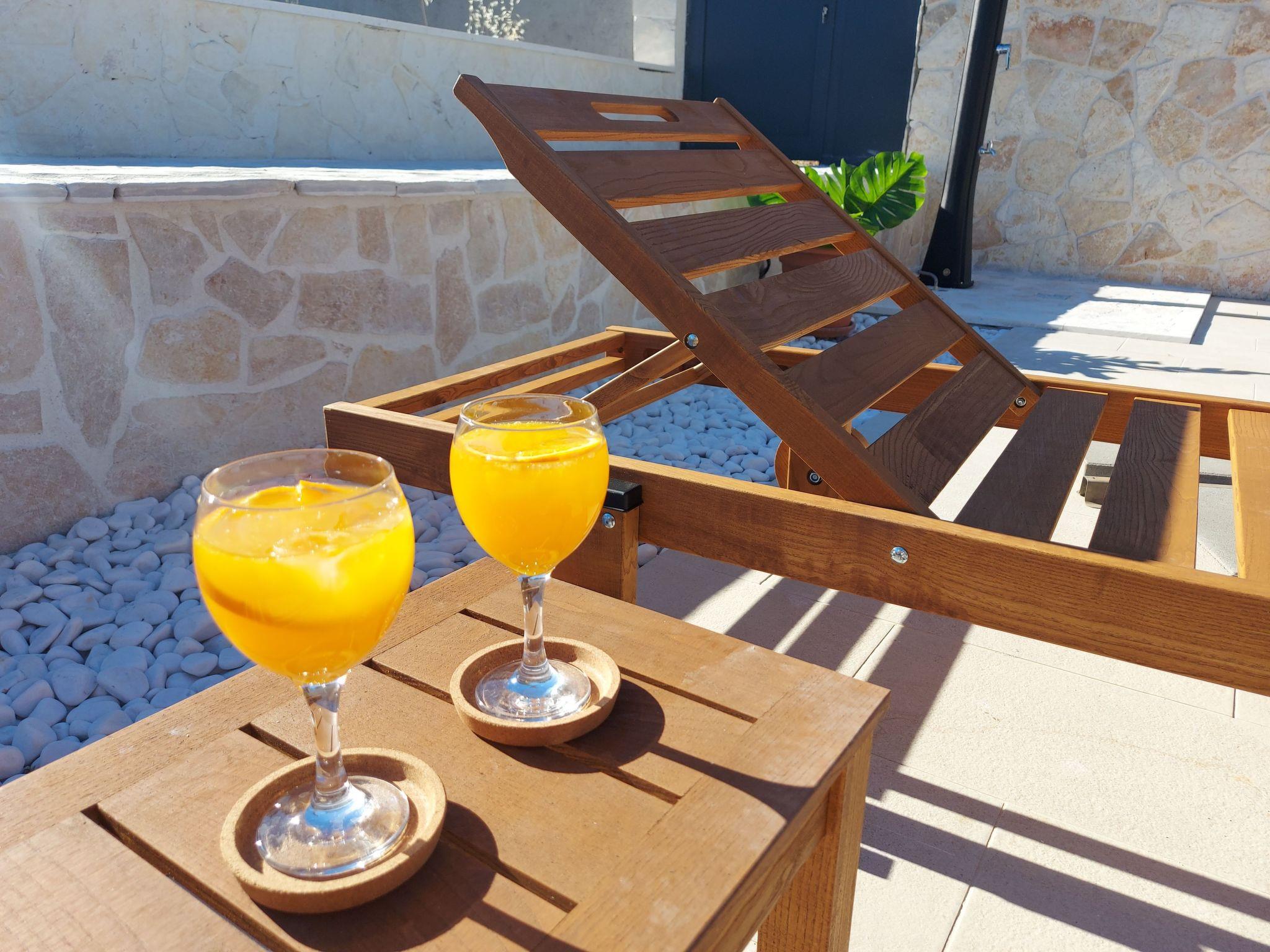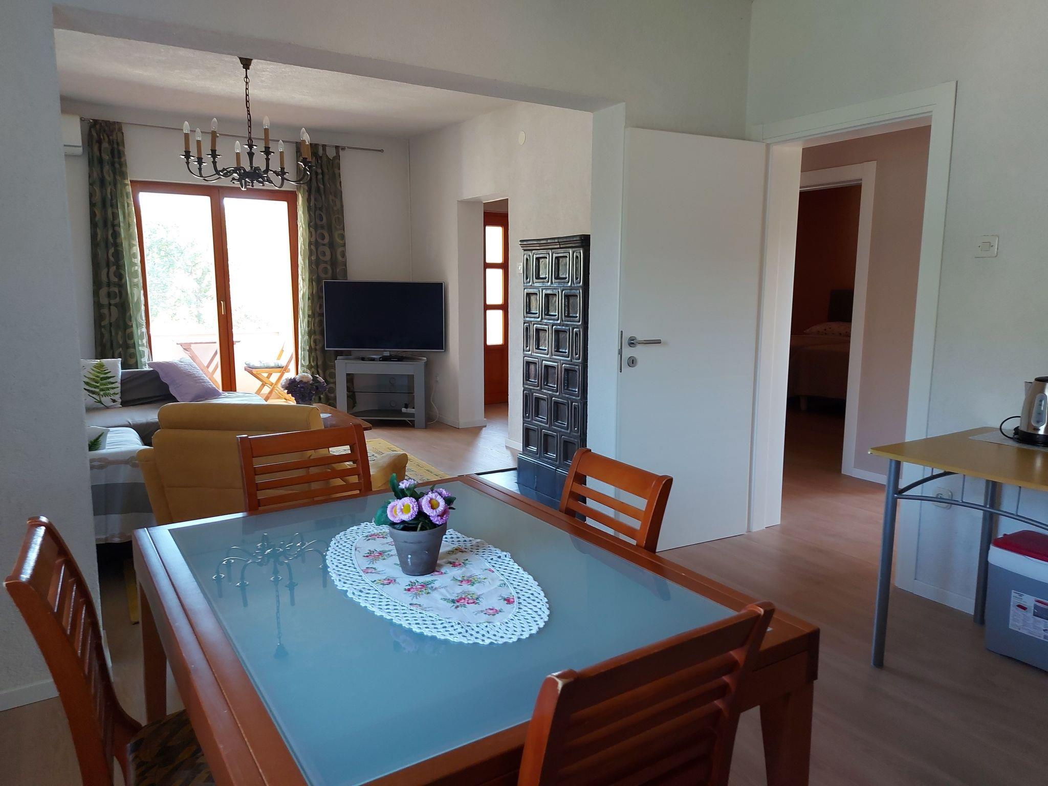 You will have at your disposal two apartments; one is on ground floor and second is on the first floor. Apartment on the ground floor is about 50m2 in size and comprises of one room with bathroom and fully equipped kitchen with access to the patio where there is an outdoor table for outdoor seating overlooking the pool.