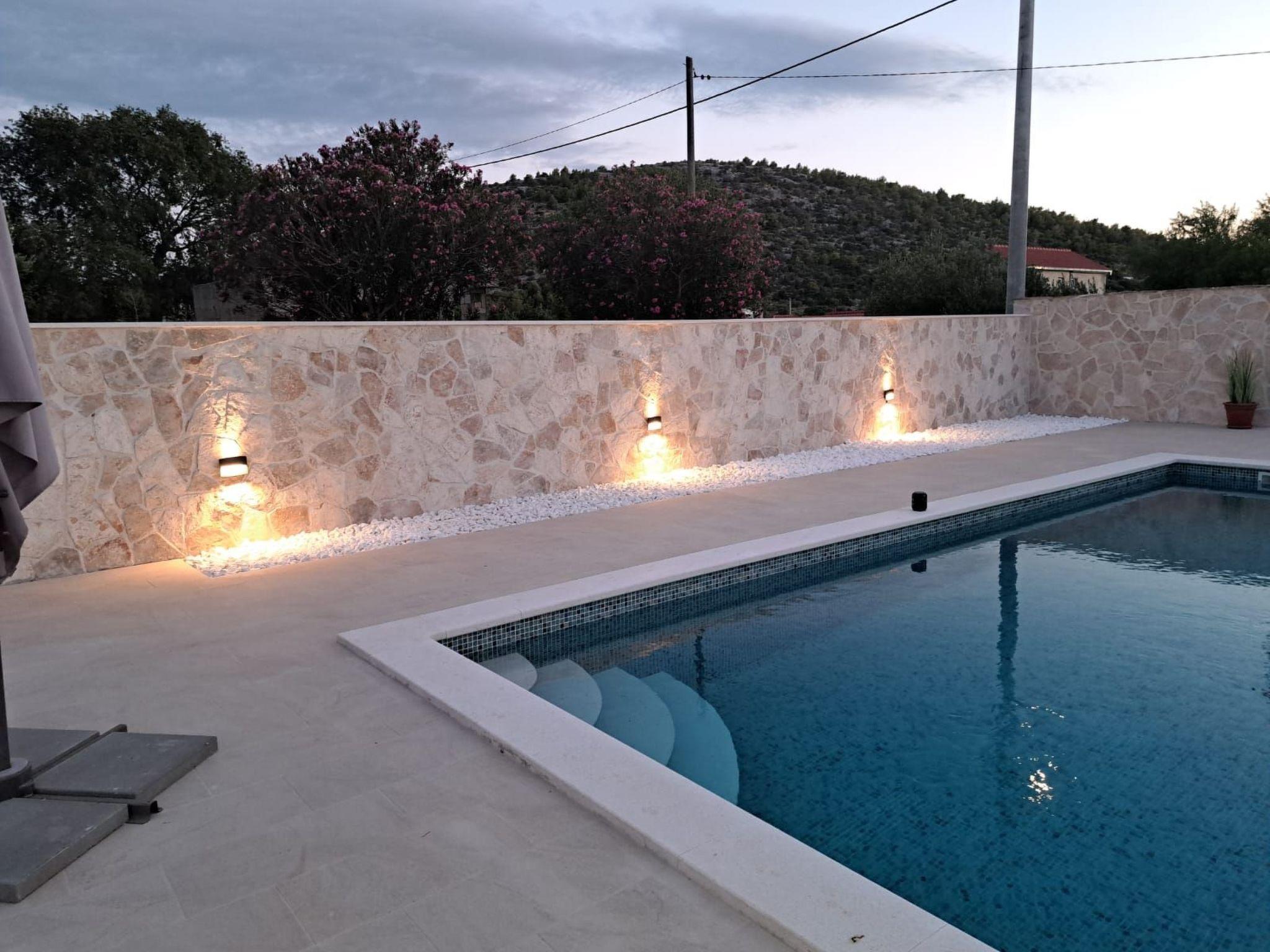 Secluded house with specious outdoor of 800m2, parking spaces in the yard and private heated swimming pool. The house is located in a village just a few minutes’ drive to the nearest beaches. Only 15 minutes from Split airport. A great place to relax and a great starting point for exploring the beauties of Dalmatia, Krka waterfalls, Trogir 12 km, Split 36 km and Šibenik 36 km.