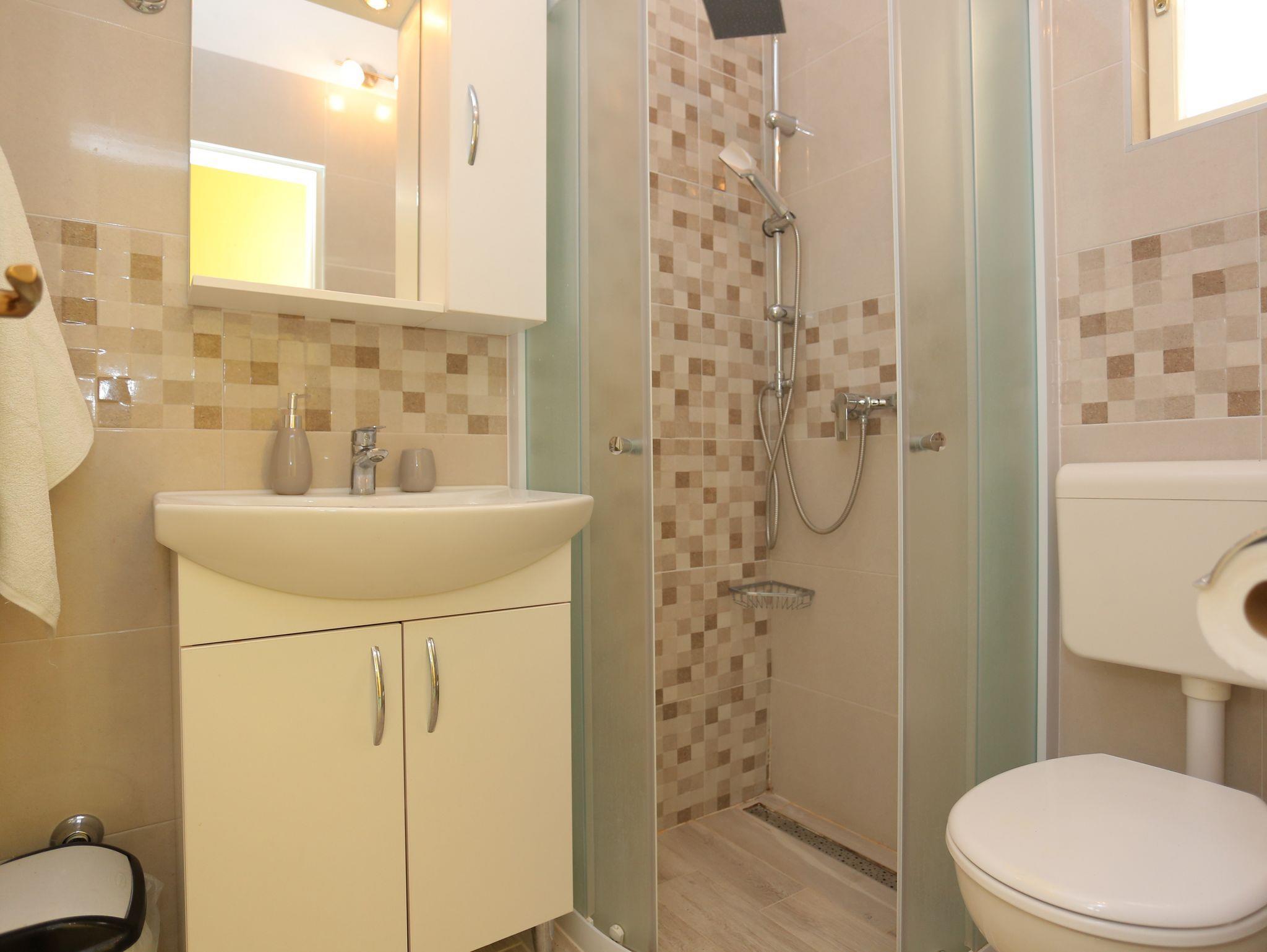 Ferienwohnung bietet Platz für 9 Gäste. Die Betten sind in Schlafzimmern, die es 3 gibt, und in Wohnzimmer, innerhalb einer Gesamtfläche von 78m2, angeordnet. Die Gäste haben eine eigene Terrasse zur Verfügung, auf der sie in warmen Sommernächten genießen können. Das Apartment bietet Meerblick. Es ist erlaubt, Speisen auf dem Gemeinschafts-Grill vorzubereiten. Räume der gebuchten Unterkunftseinheit werden nicht in eine Ganze verbunden. IM PREIS INBEGRIFFEN: Kurtaxe, Endreinigung, Klimatisierung, Parkplatz, Internet, Bügeleisen, Föhn. VERBINDLICHE ZUSÄTZLICHE KOSTEN: Aufzahlung für Kurzaufenthalte (prozentualer Zuschlag pro Nächtigungsanzahl: 30% - 1, 20% - 2, 10% - 3). UNVERBINDLICHE ZUSÄTZLICHE KOSTEN: Wäschewaschen (5,00 € Waschen). Die Verfügbarkeit zusätzlicher Dienstleistungen in Ihrem reservierten Termin und die Preise derselben (falls nicht aufgeführt) müssen im Voraus überprüft werden. Zusätzliche Dienstleistungen die in der Zahlungsaufforderung nicht aufgeführt sind werden direkt beim Vermieter bezahlt, angenommen der Gast nutzt auch diese.