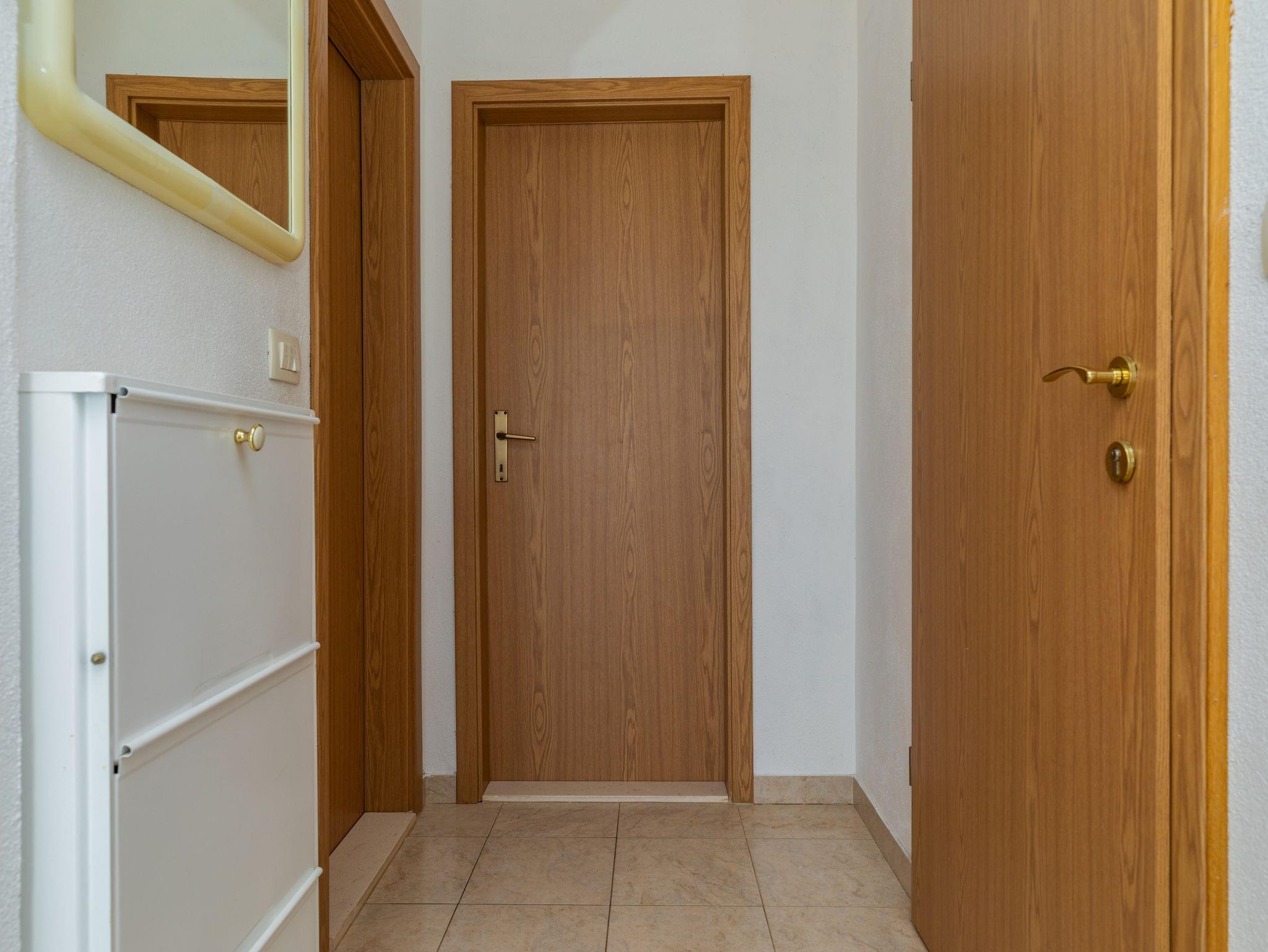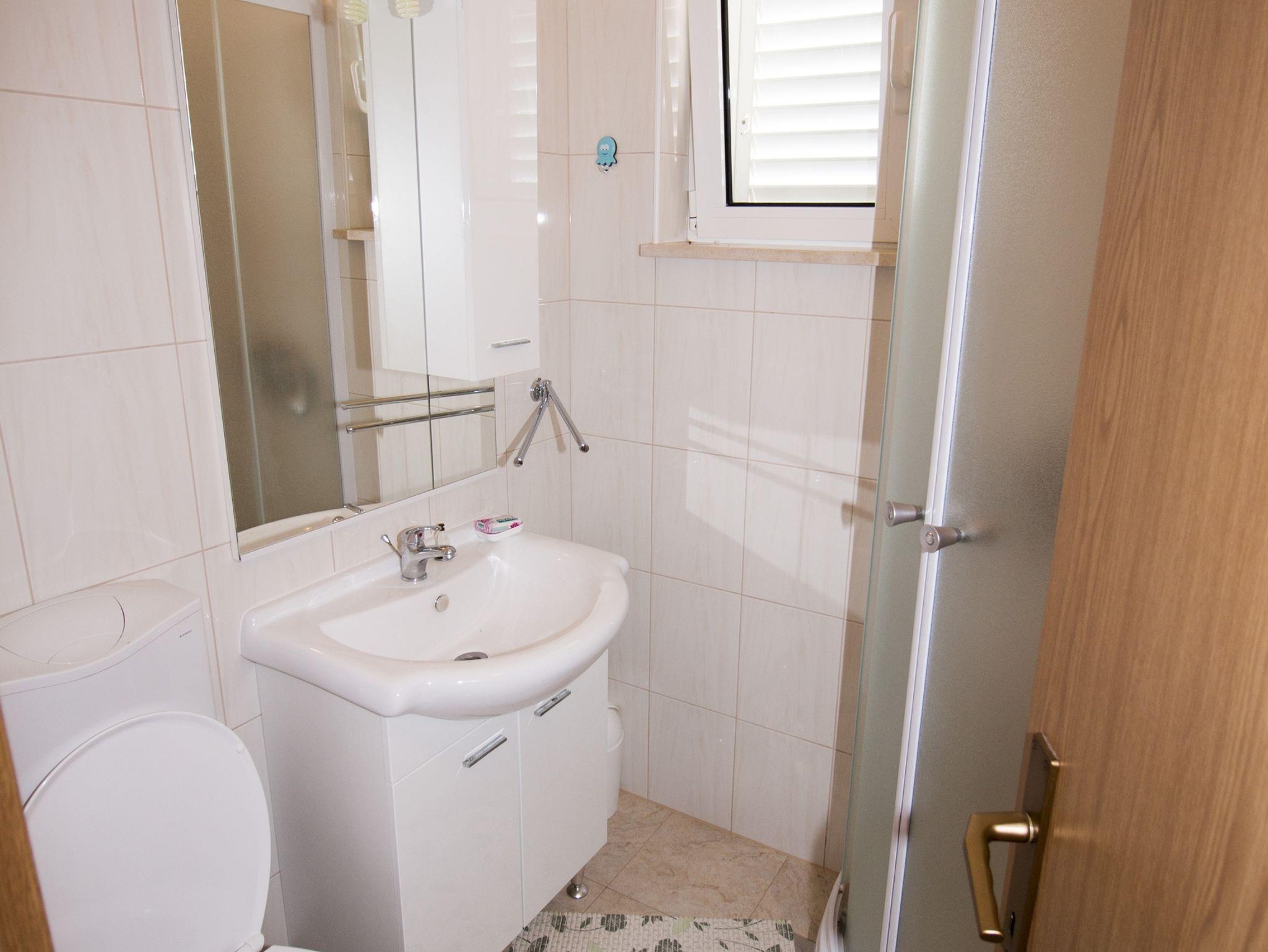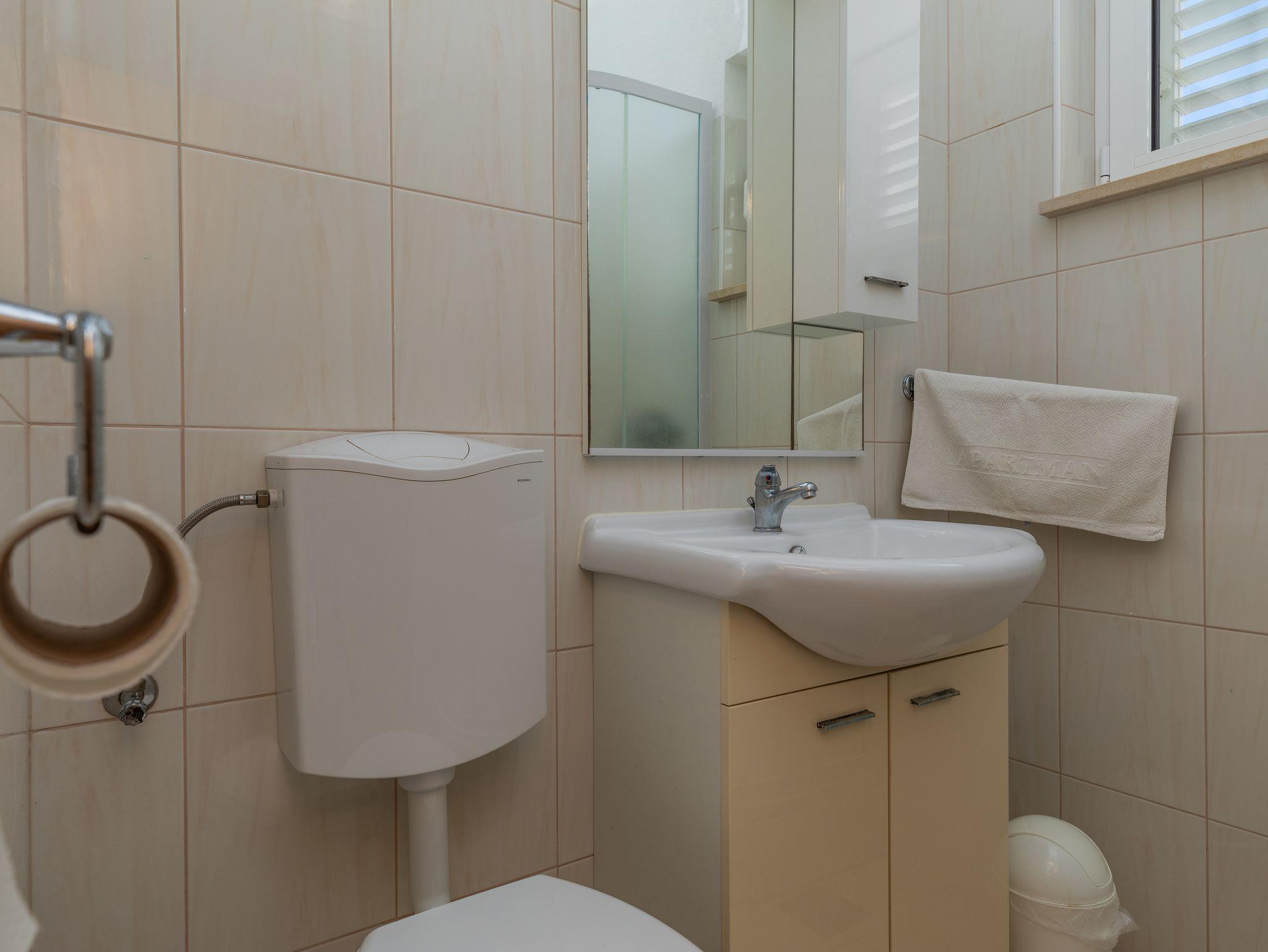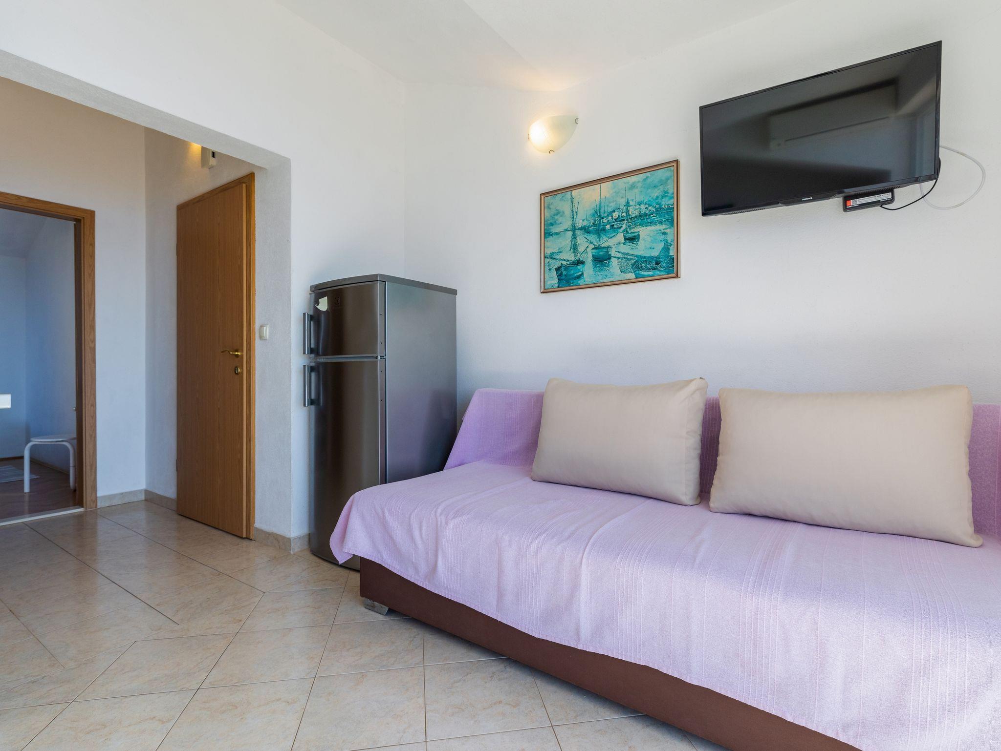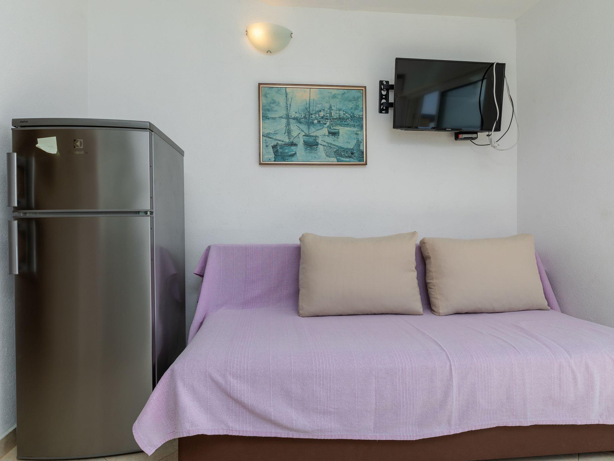 Ferienwohnung bietet Platz für 4 Gäste. Die Betten sind in Schlafzimmern, die es 1 gibt, und in Wohnzimmer, innerhalb einer Gesamtfläche von 27m2, angeordnet. Die Gäste haben eine eigene Terrasse zur Verfügung, auf der sie in warmen Sommernächten genießen können. Das Apartment bietet Meerblick. Es ist erlaubt, Speisen auf dem Gemeinschafts-Grill vorzubereiten. IM PREIS INBEGRIFFEN: Kurtaxe, Endreinigung, Klimatisierung, Parkplatz, Internet, Wäschewaschen, Bügeleisen, Bügelbrett, Föhn, tragbarer Grill, Sonnenschirm. VERBINDLICHE ZUSÄTZLICHE KOSTEN: Aufzahlung für Kurzaufenthalte (prozentualer Zuschlag pro Nächtigungsanzahl: 30% - 1, 20% - 2, 10% - 3). Die Verfügbarkeit zusätzlicher Dienstleistungen in Ihrem reservierten Termin und die Preise derselben (falls nicht aufgeführt) müssen im Voraus überprüft werden. Zusätzliche Dienstleistungen die in der Zahlungsaufforderung nicht aufgeführt sind werden direkt beim Vermieter bezahlt, angenommen der Gast nutzt auch diese. Ermäßigung auf den Grundpreis: Gratistag 14=13 (bei einem Aufenthalt von 14 Tagen oder mehr erhalten Sie einen Gratistag für den Aufenthalt bis 31.12.26).