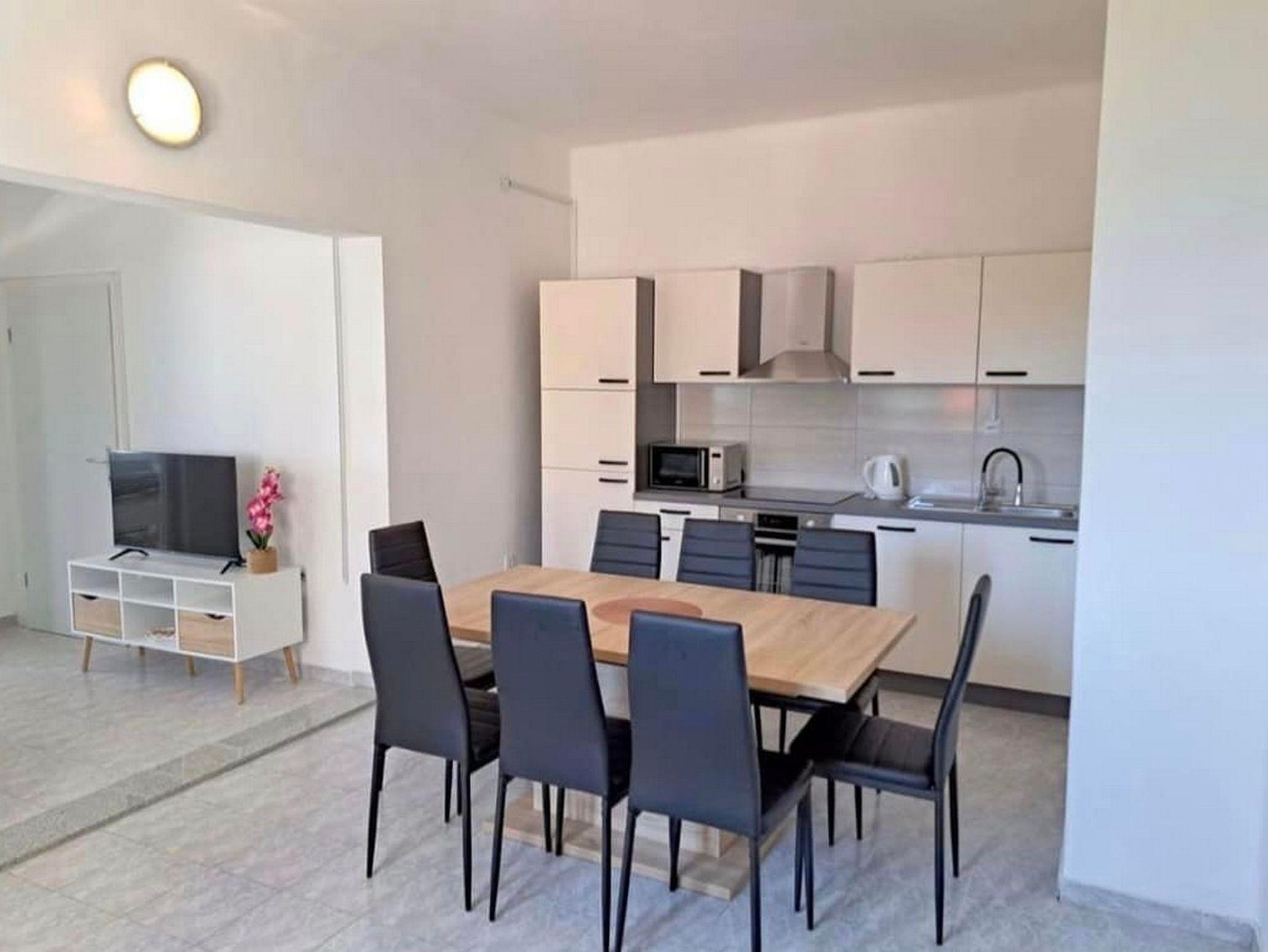 Ferienwohnung bietet Platz für 8 Gäste. Die Betten sind in Schlafzimmern, die es 2 gibt, und in Wohnzimmer und Esszimmer, innerhalb einer Gesamtfläche von 49m2, angeordnet. Die Gäste haben eine eigene Terrasse zur Verfügung, auf der sie in warmen Sommernächten genießen können. Das Apartment bietet Meerblick. Es ist erlaubt, Speisen auf dem Gemeinschafts-Grill vorzubereiten. IM PREIS INBEGRIFFEN: Kurtaxe, Endreinigung, Klimatisierung, Parkplatz, Internet, Wäschewaschen, Föhn. Die Verfügbarkeit zusätzlicher Dienstleistungen in Ihrem reservierten Termin und die Preise derselben (falls nicht aufgeführt) müssen im Voraus überprüft werden. Zusätzliche Dienstleistungen die in der Zahlungsaufforderung nicht aufgeführt sind werden direkt beim Vermieter bezahlt, angenommen der Gast nutzt auch diese. Ermäßigung auf den Grundpreis: Gratistag 14=13 (bei einem Aufenthalt von 14 Tagen oder mehr erhalten Sie einen Gratistag für den Aufenthalt bis 31.12.26).