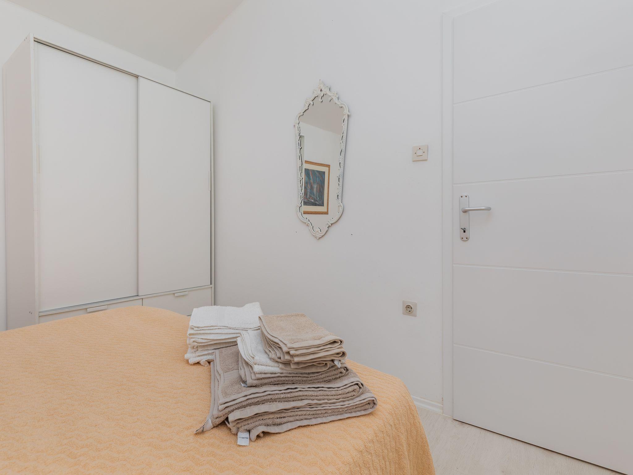 Ferienwohnung bietet Platz für 5 Gäste. Die Betten sind in Schlafzimmern, die es 2 gibt, und in Wohnzimmer, innerhalb einer Gesamtfläche von 53m2, angeordnet. Die Gäste haben eine eigene Terrasse zur Verfügung, auf der sie in warmen Sommernächten genießen können. Das Apartment bietet Meerblick. Es ist erlaubt, Speisen auf dem Gemeinschafts-Grill vorzubereiten. IM PREIS INBEGRIFFEN: Kurtaxe, Endreinigung, Klimatisierung, Parkplatz, Internet, Kinderbett, Bügeleisen, Bügelbrett, Föhn, tragbarer Grill. Die Verfügbarkeit zusätzlicher Dienstleistungen in Ihrem reservierten Termin und die Preise derselben (falls nicht aufgeführt) müssen im Voraus überprüft werden. Zusätzliche Dienstleistungen die in der Zahlungsaufforderung nicht aufgeführt sind werden direkt beim Vermieter bezahlt, angenommen der Gast nutzt auch diese.