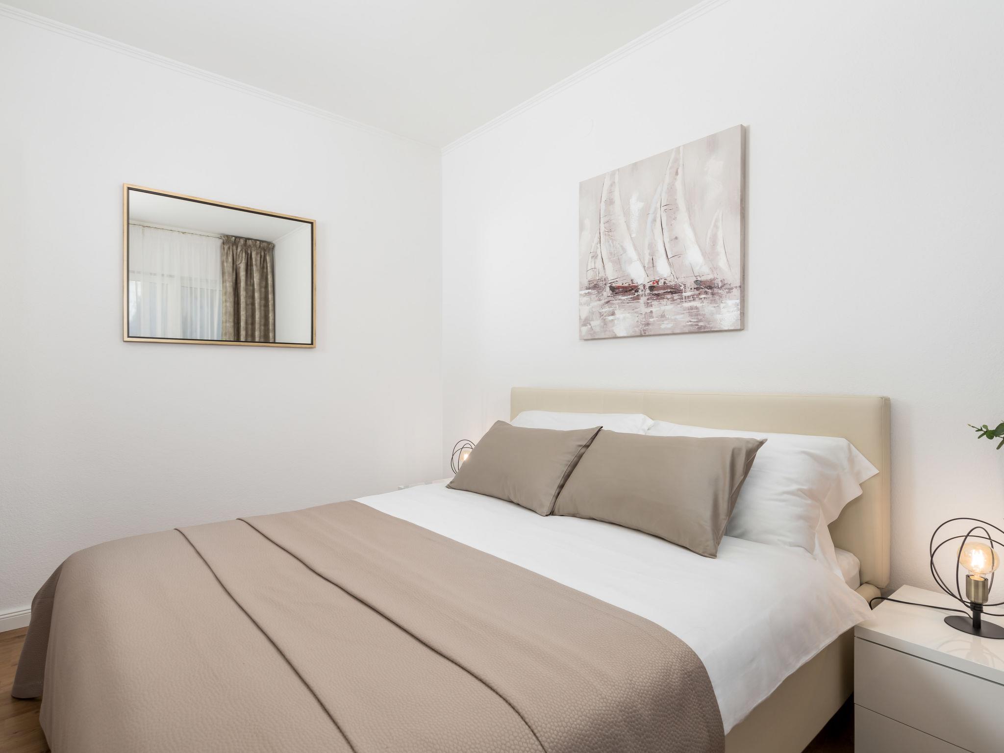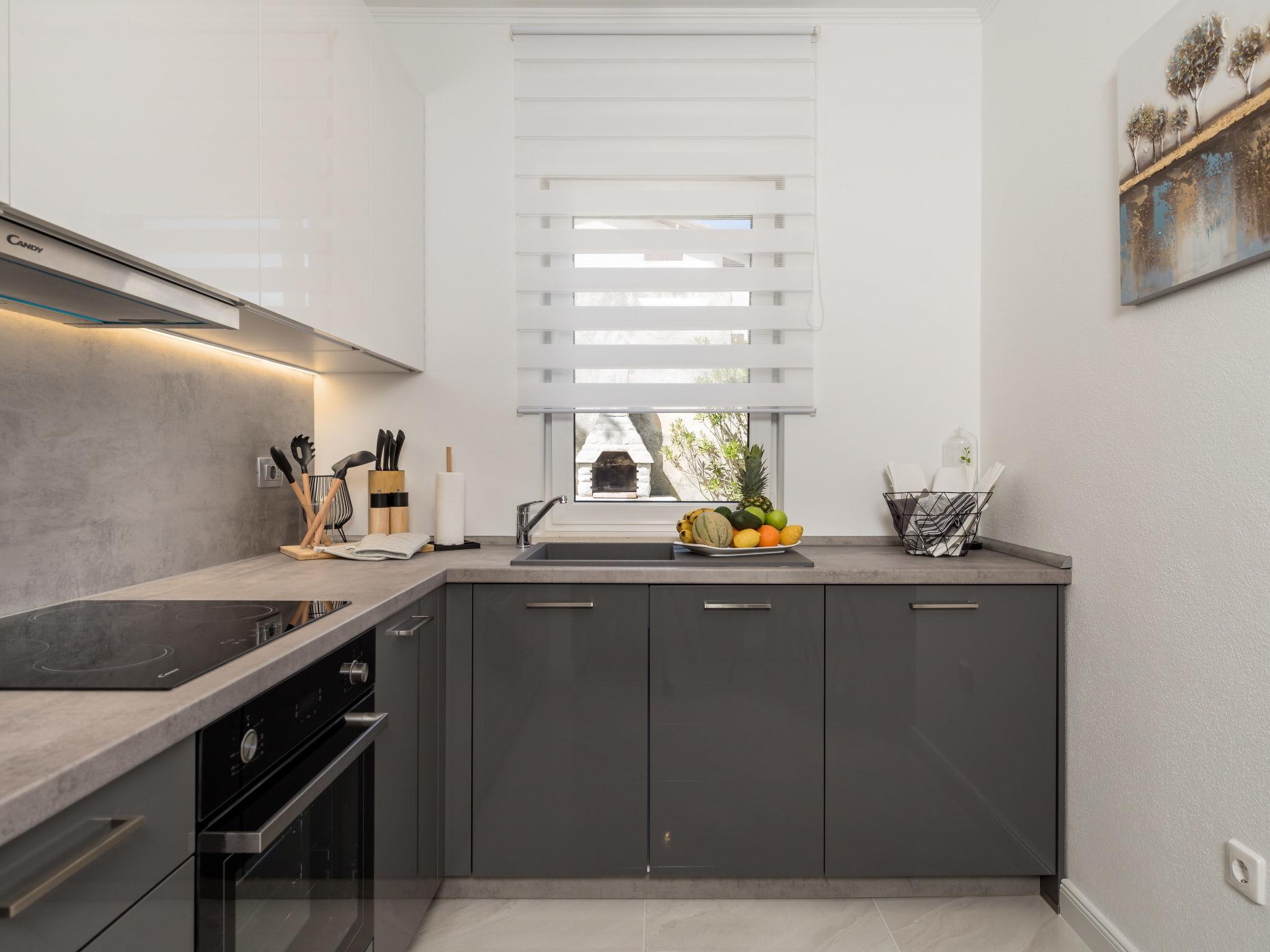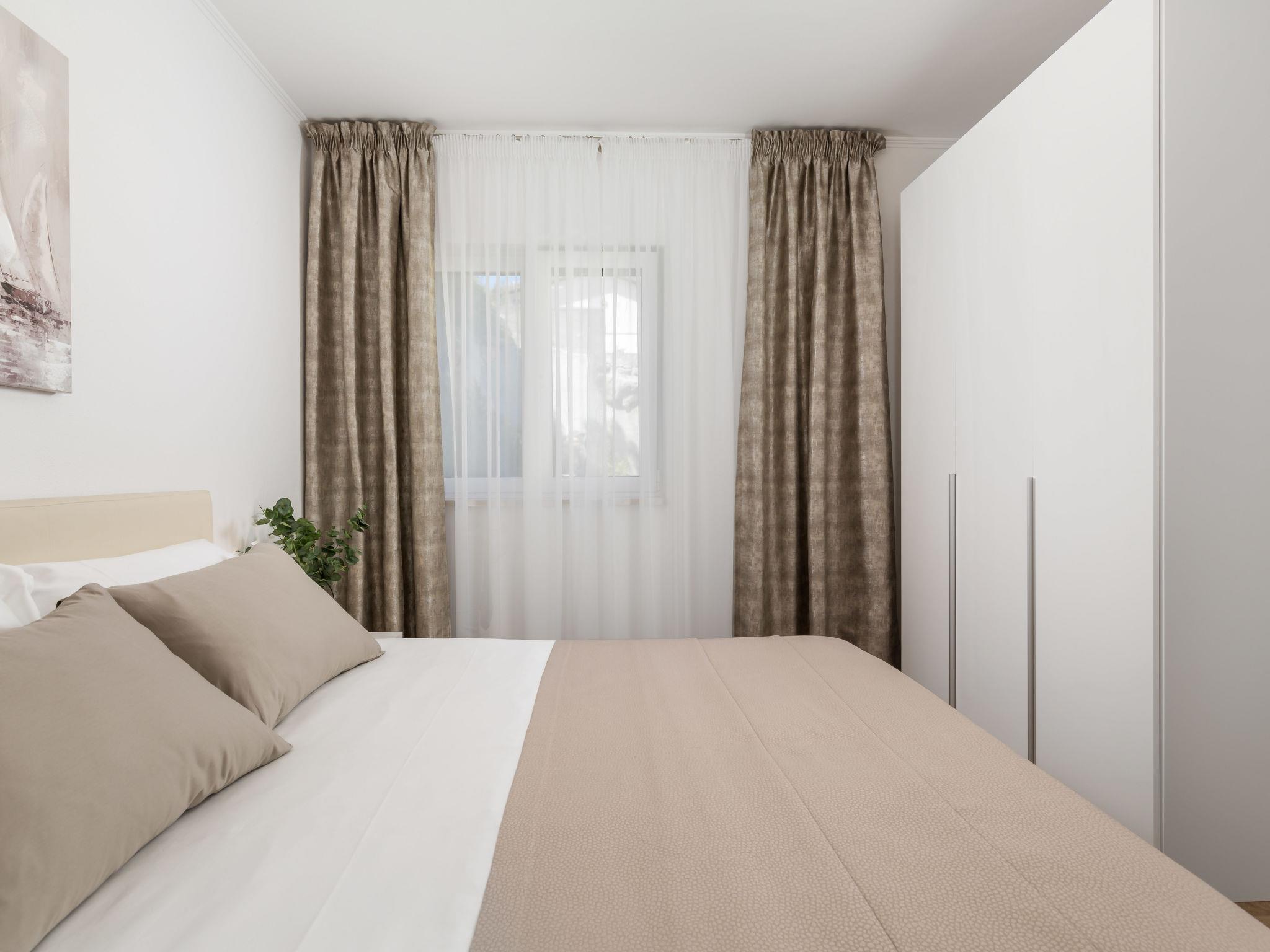 "Makvic", 3-room semi-detached house 59 m2. Living/dining room with satellite TV and air conditioning. Exit to the terrace. 2 rooms, each room with 1 french bed (160 cm, length 200 cm). Open kitchen (oven, dishwasher, 4 ceramic glass hob hotplates, toaster, kettle, freezer, electric coffee machine). Shower/bidet/WC. Electric heating. Terrace 15 m2. Terrace furniture, deck chairs (4), box-room. View of the sea. Facilities: Internet (WiFi, free). Please note: non-smoking house. Private entrance. UP/I-335-03/07-01/183 IV