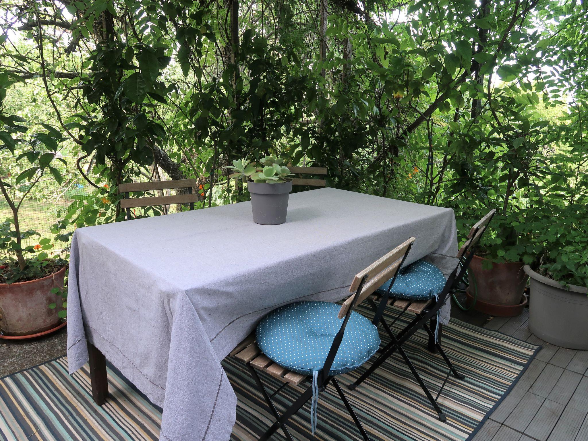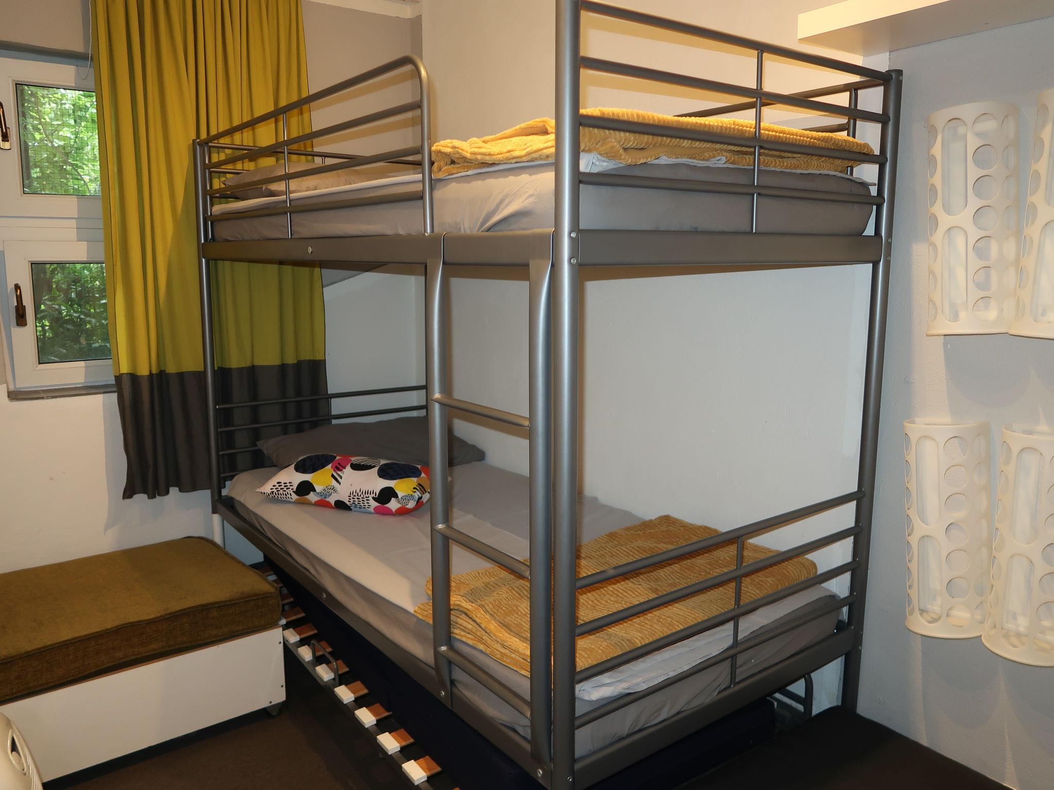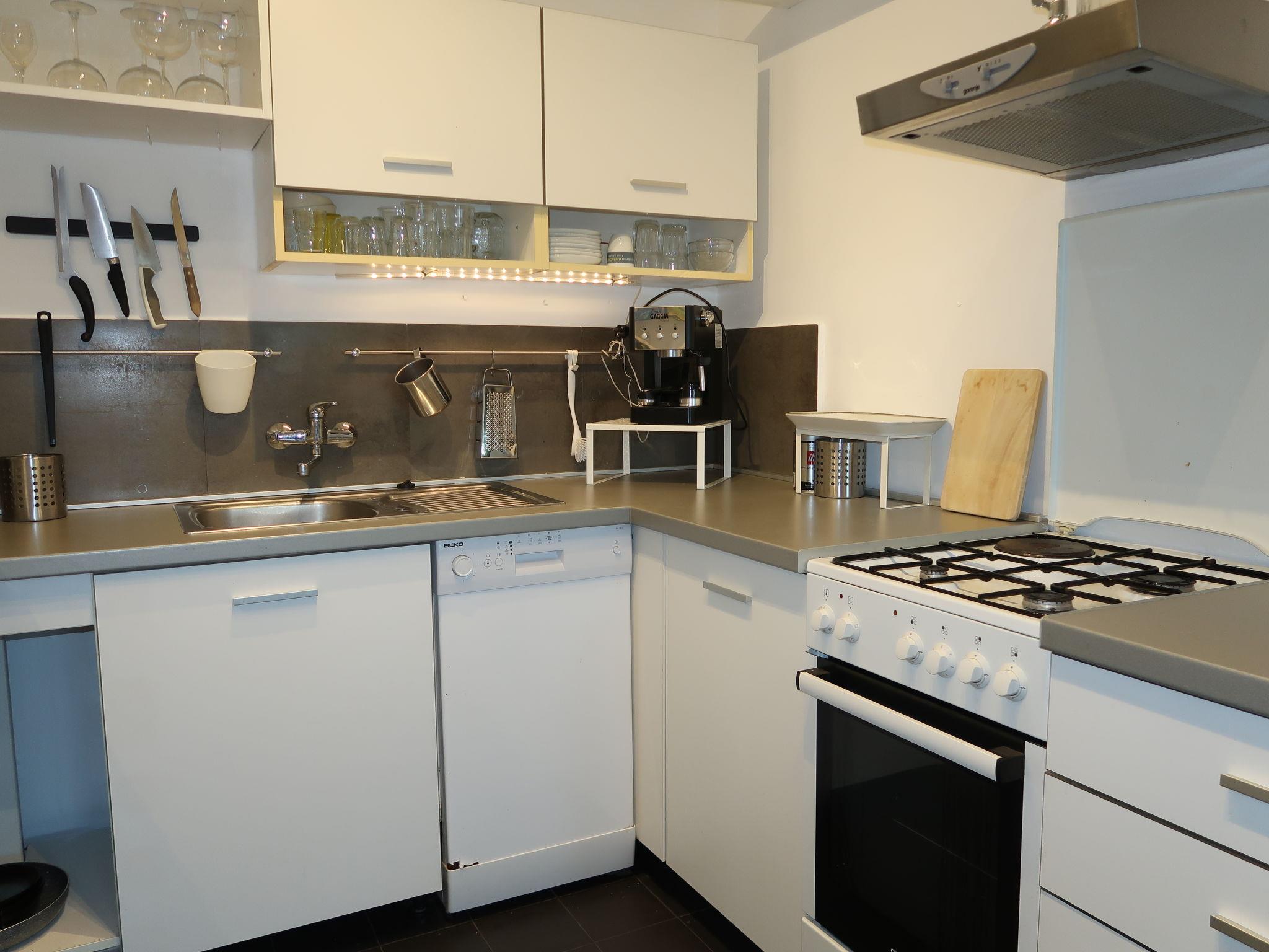 3-room apartment 55 m2, on the lower ground floor. Practical furnishings: living/dining room with satellite TV. 1 room with 1 double bed (2 x 90 cm, length 200 cm). 1 room with 1 x 2 bunk beds (90 cm, length 200 cm). Open kitchen (1 hot plate, oven, 3 gas rings, toaster, kettle, freezer, electric coffee machine). Shower/WC. No heating option. Terrace 18 m2 partly roofed. Terrace furniture, barbecue. Facilities: Internet (WiFi, free). Please note: non-smoking house.