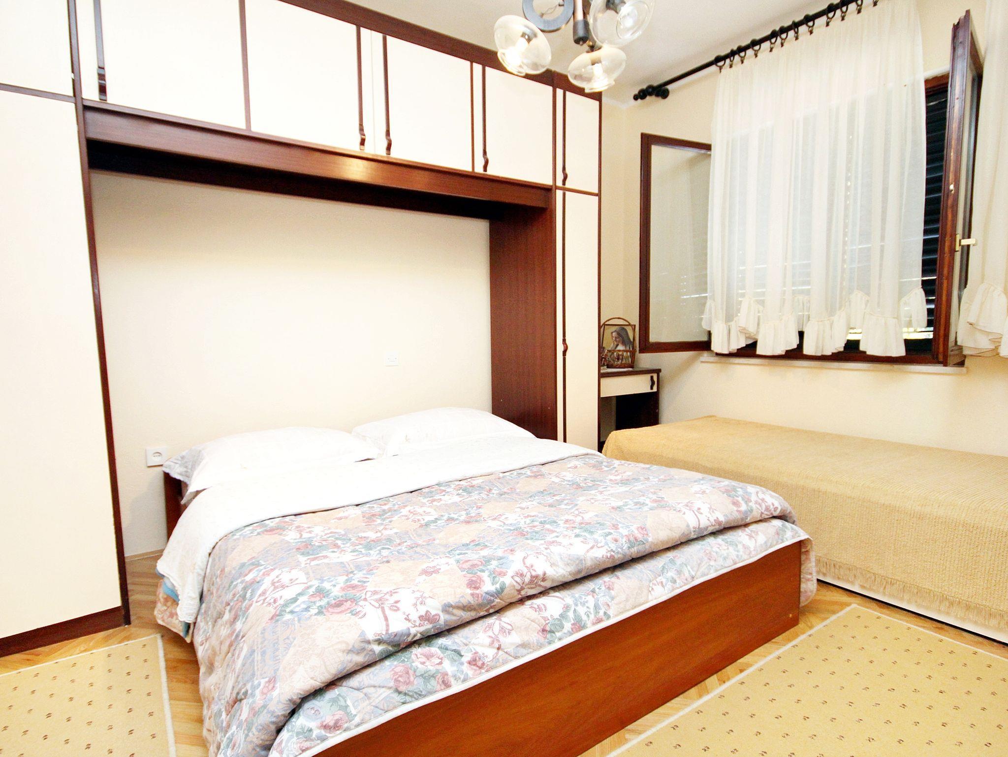 Ferienwohnung bietet Platz für 4 Gäste. Die Betten sind in Schlafzimmern, die es 1 gibt, und in Wohnzimmer, innerhalb einer Gesamtfläche von 58m2, angeordnet. Die Gäste haben eine eigene Terrasse zur Verfügung, auf der sie in warmen Sommernächten genießen können. Das Apartment bietet Meerblick. Es ist erlaubt, Speisen auf dem Gemeinschafts-Grill vorzubereiten. IM PREIS INBEGRIFFEN: Kurtaxe, Endreinigung, Klimatisierung, Parkplatz, Internet, Kinderbett, Bügelbrett, Föhn. Die Verfügbarkeit zusätzlicher Dienstleistungen in Ihrem reservierten Termin und die Preise derselben (falls nicht aufgeführt) müssen im Voraus überprüft werden. Zusätzliche Dienstleistungen die in der Zahlungsaufforderung nicht aufgeführt sind werden direkt beim Vermieter bezahlt, angenommen der Gast nutzt auch diese. Ermäßigung auf den Grundpreis: Gratistag 14=13 (bei einem Aufenthalt von 14 Tagen oder mehr erhalten Sie einen Gratistag für den Aufenthalt bis 31.12.26).