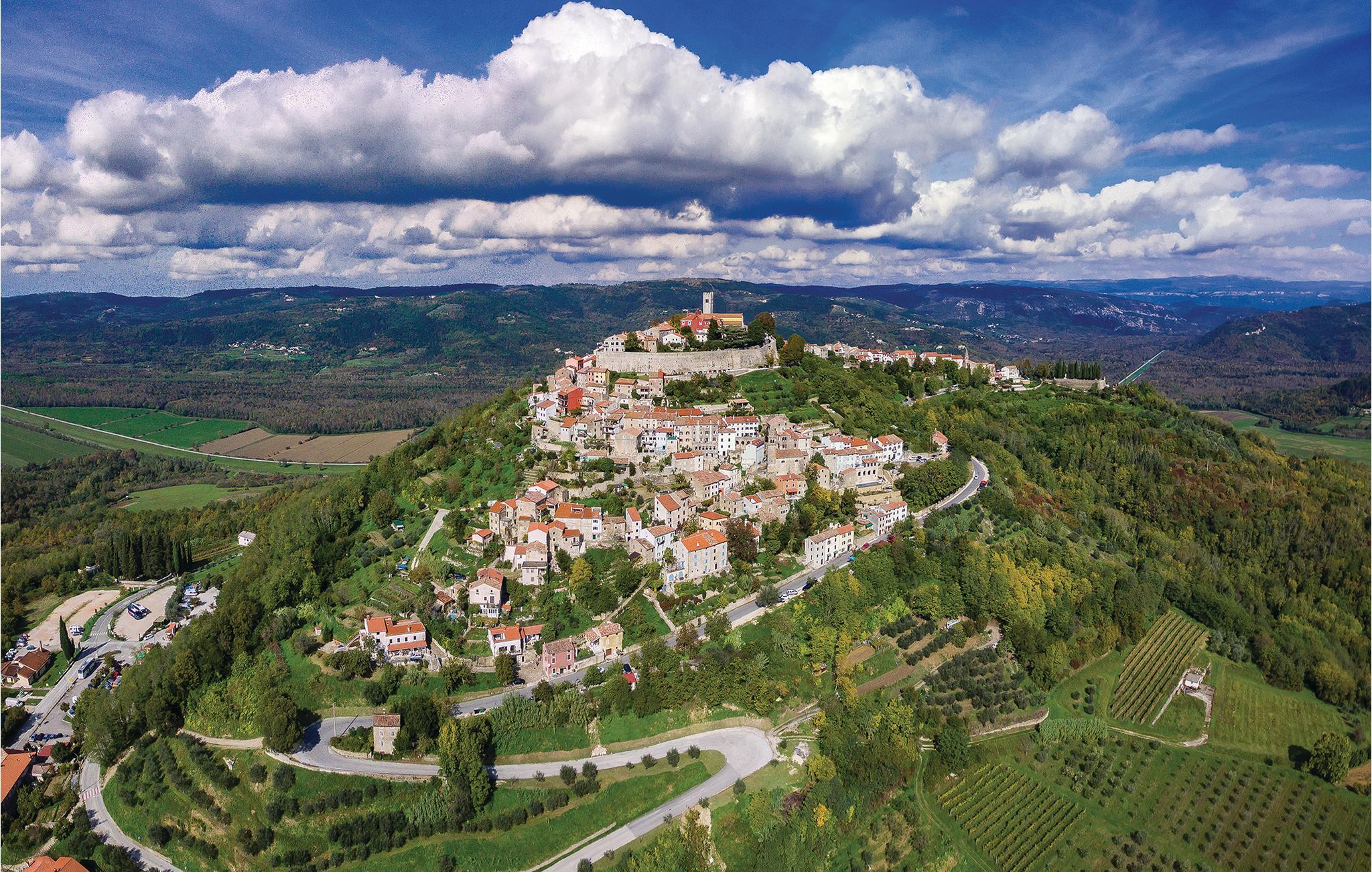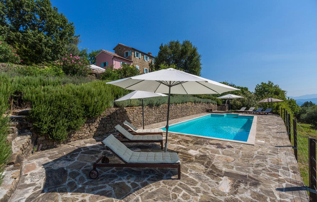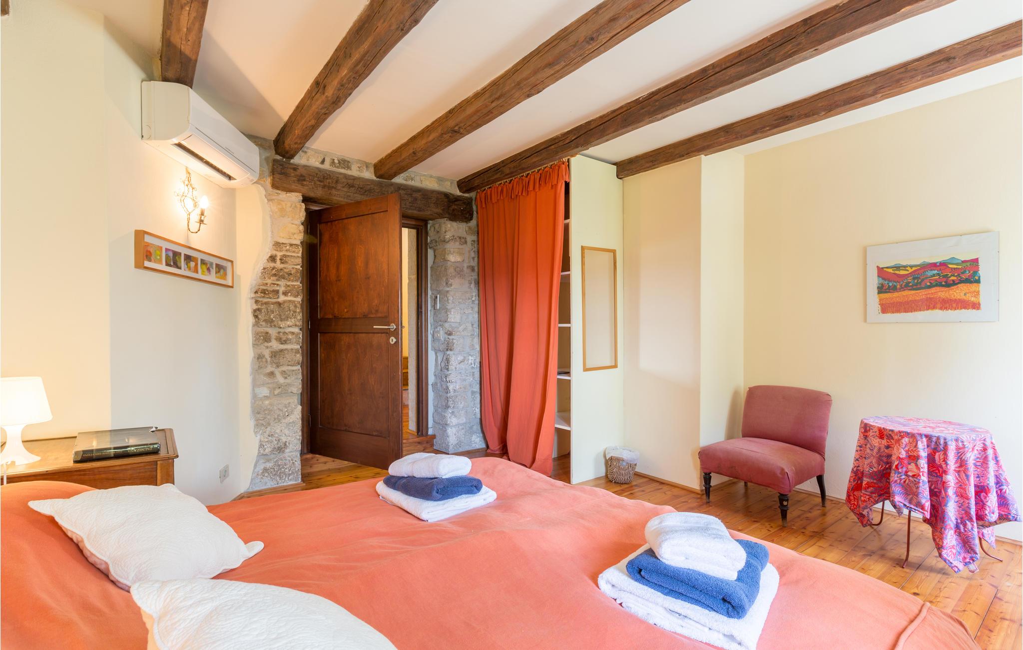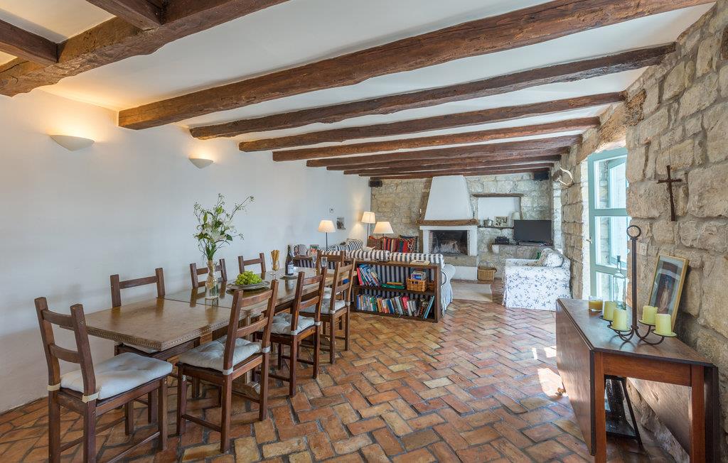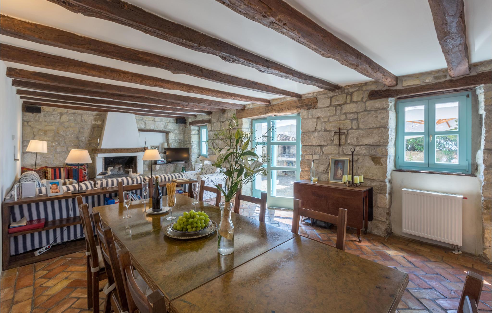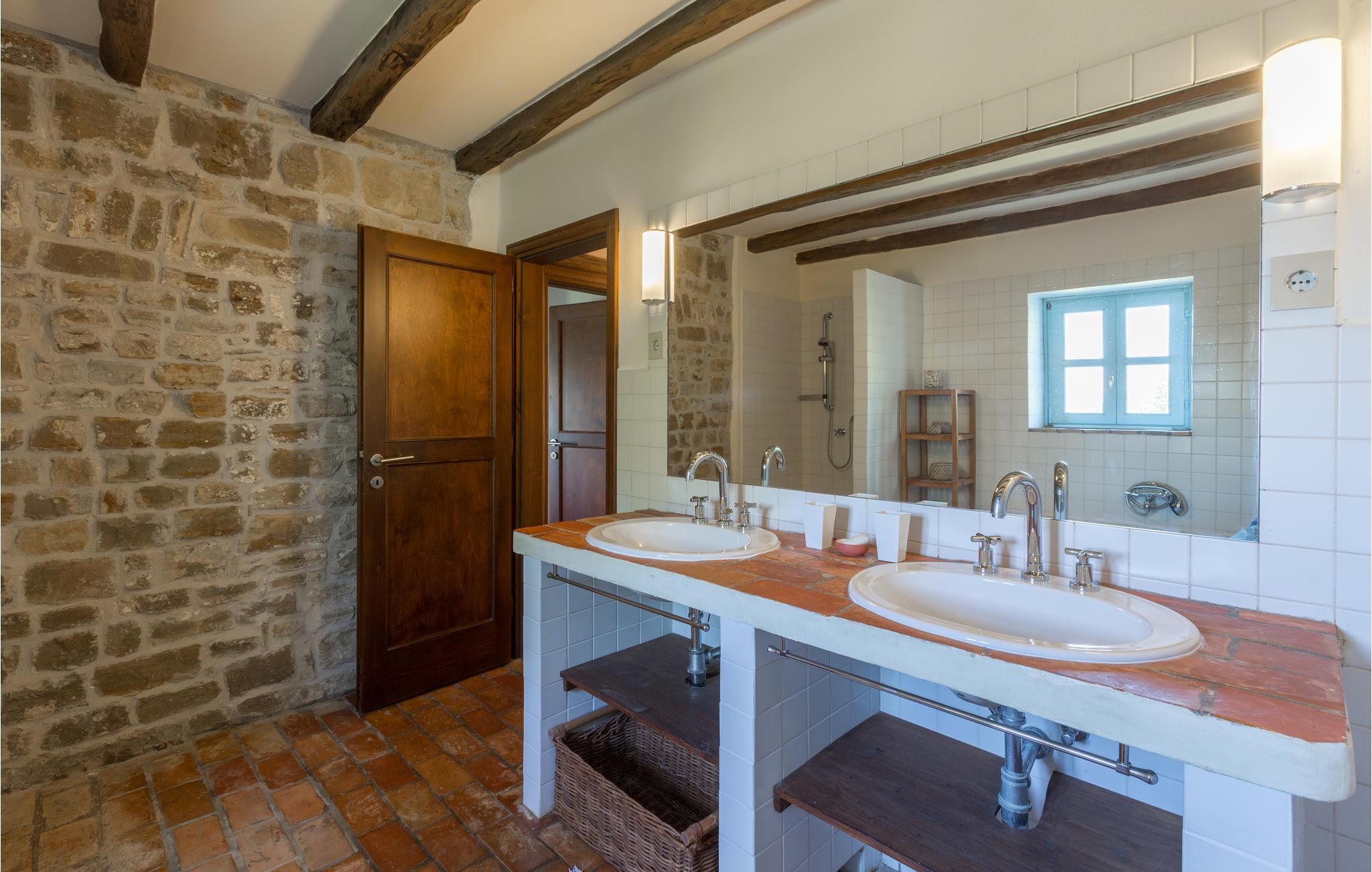 Her kan du føle deg som hjemme. I tre etasjer kan du nyte den flotte utsikten over landskapet i det nordlige Istria og sette deg godt til rette i huset. Frittliggende bjelker, lyse vegger og steinvegger gir det store huset sin tradisjonelle sjarm. Men også møblene og utstyret gir deg komfort og et flott miljø.