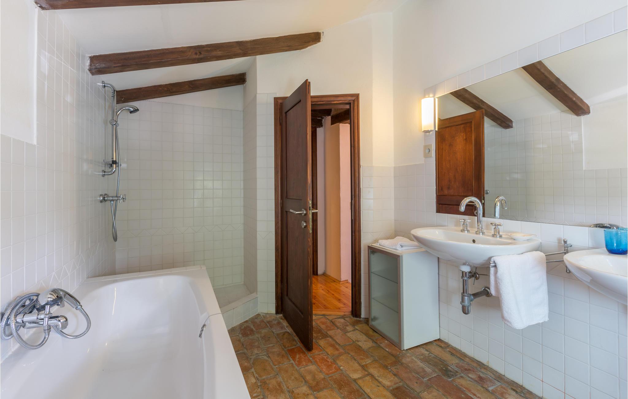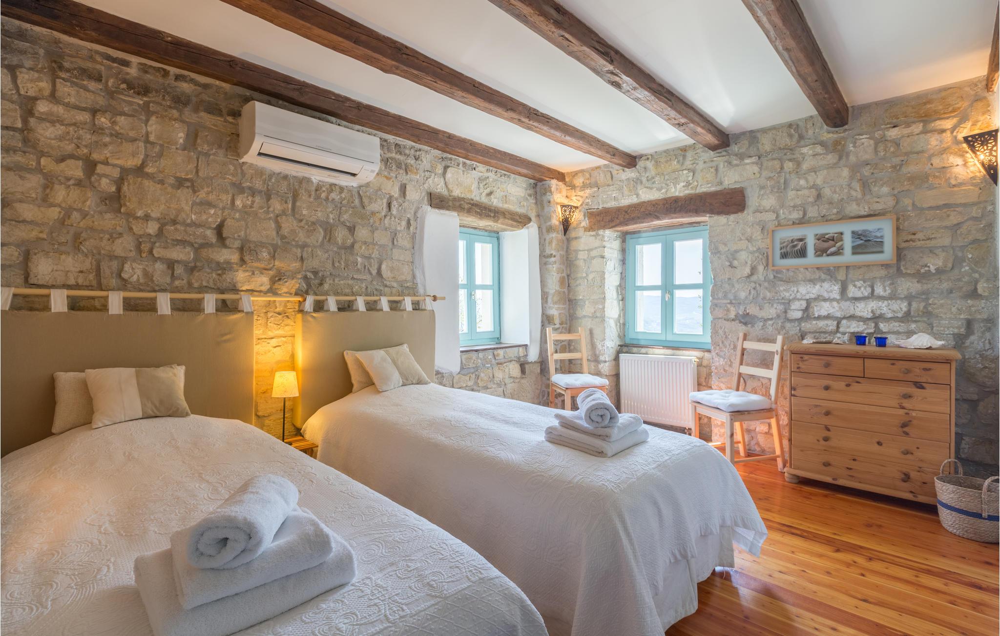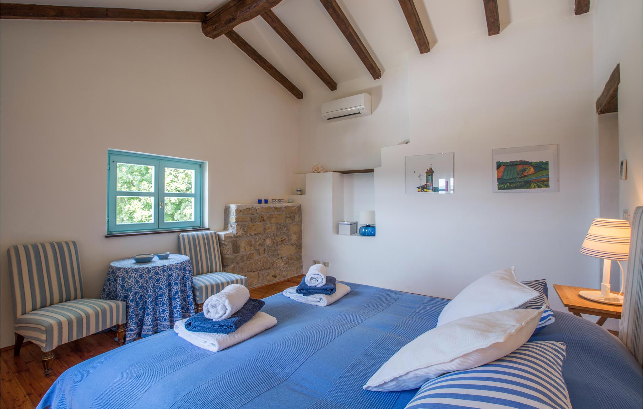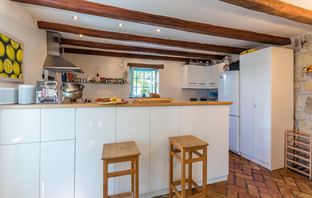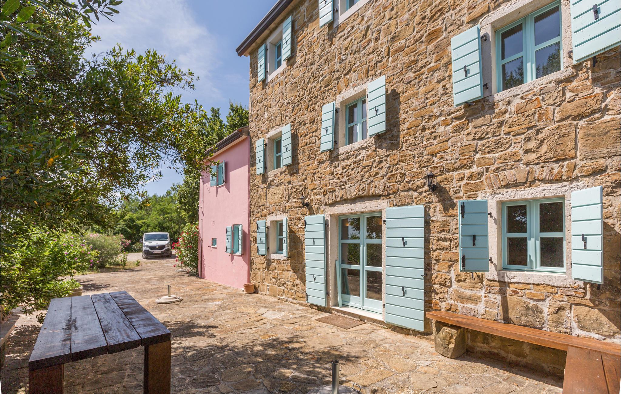 Her kan du føle deg som hjemme. I tre etasjer kan du nyte den flotte utsikten over landskapet i det nordlige Istria og sette deg godt til rette i huset. Frittliggende bjelker, lyse vegger og steinvegger gir det store huset sin tradisjonelle sjarm. Men også møblene og utstyret gir deg komfort og et flott miljø.