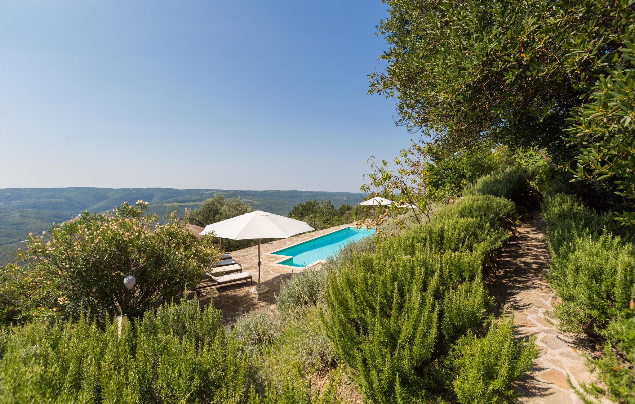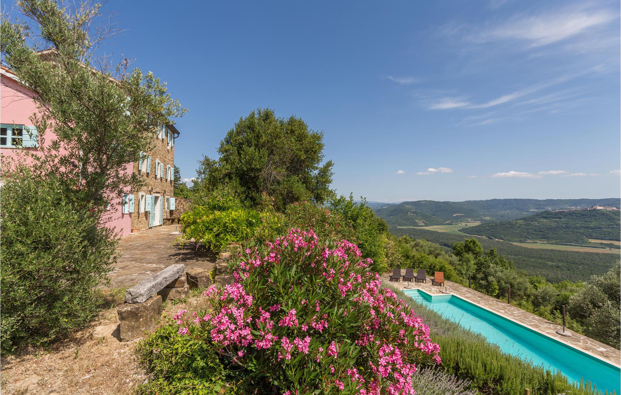 Midt i skogen, med fantastisk panoramautsikt over Motovun, ligger dette store, tradisjonelle steinhuset med basseng.