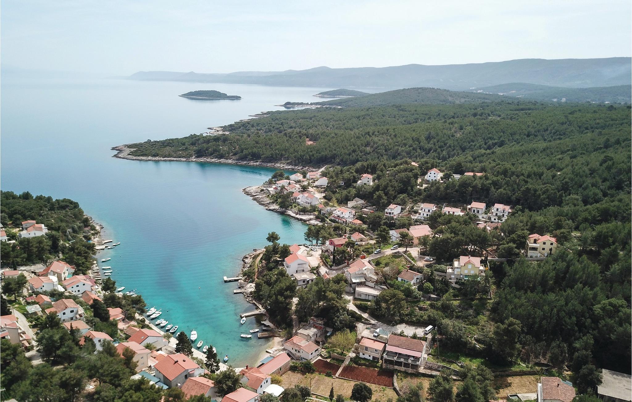 Dette hyggelige feriehuset ligger i bukten Mudri Dolac. Det er omgitt av furutrær og middelhavsplanter, ideelt for en familieferie. Det har en terrasse og steingrill hvor du kan slappe av eller ta en forfriskning i bassenget. På fritiden kan du spille bordtennis eller hoppe på trampolinen. Det er fire soverom og en badstue på loftet, hvorfra du kan nå terrassen. Alle etasjer er forbundet med innvendige trapper. Rullesteinstranden ligger ca. 150 m nedover bakken. Bare 5 km lenger er større byer på øya hvor du kan nyte natur og kulturelle skjønnheter og tradisjonelle retter i restaurantene. På grunn av beliggenheten anbefales en bil.