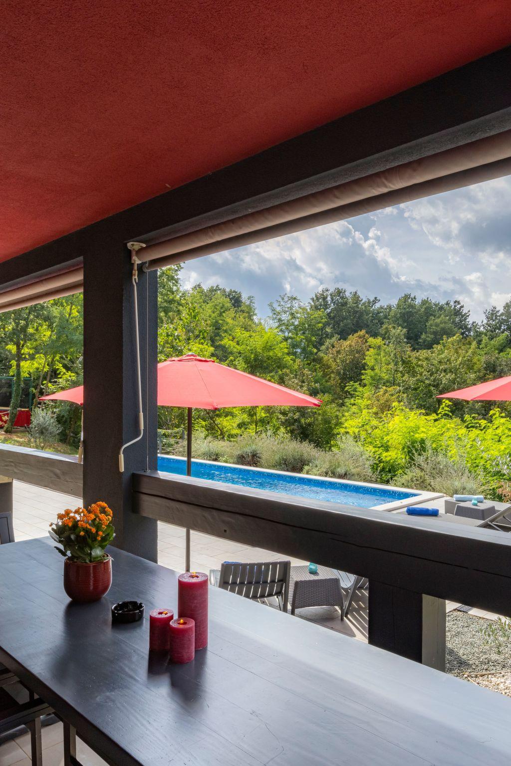 The small idyllic village of Kraj Drage is located 15 minutes from the old town of Labin. There you will find our RED House, surrounded by greenery, on a fenced plot of approx. 3,500 sqm with no direct neighbours. This house is perfect for families or groups looking for a place of peace and privacy. Here you can spend the whole day undisturbed by the large pool and young and old will find plenty to do. The playground, trampoline, table football and table tennis table provide plenty of variety.