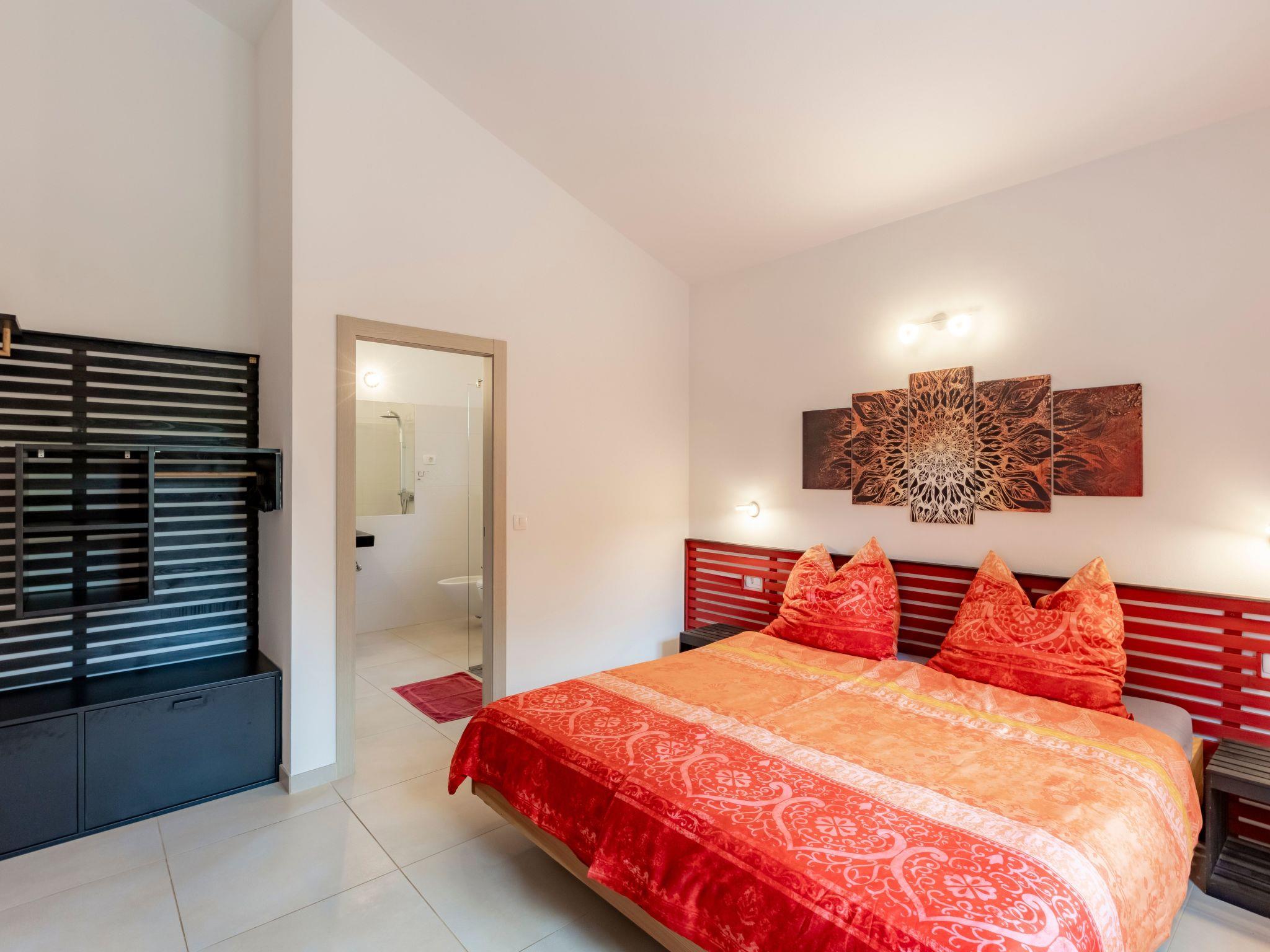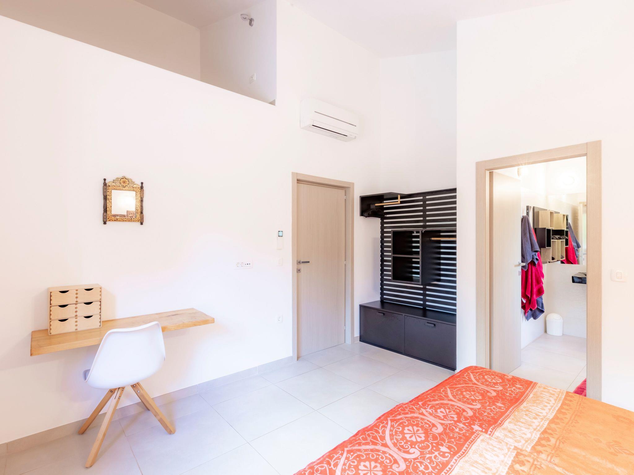 This house welcomes you with its spacious open-plan living/dining area and a view of the countryside. The house has a total of four bedrooms and can accommodate eight people. Three of the bedrooms have comfortable double beds (180x200cm) with a split mattress base for a good night's sleep. Two of these bedrooms have an en-suite bathroom with a walk-in shower and a window. For the other guests, there is a large daylight bathroom with two washbasins and a bathtub. The fourth bedroom with its two single beds (90x200cm) offers a beautiful view of the pool and the countryside through a large sliding door. There is also a guest WC, where the washing machine is located.