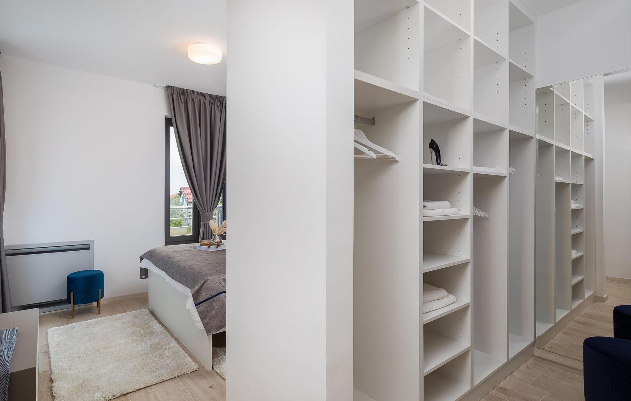 Nyt den perfekte ferien med familien i luksusvillaen Tina i Privlaka, bare 18 km fra byen Zadar og 3 km fra den kongelige byen Nin. Den moderne villaen Tina med et areal på 510 m2 har en perfekt beliggenhet, bare 120 m fra den vakre sand- eller klippestranden. Privlaka er et kjent sted for surfing, noe som gjør det til et enda mer attraktivt reisemål for de som ønsker en adrenalin- og sportsferie. Villa Tina er ideell for tolv gjester. Den er delt i to deler, eller mer presist, to hus med komplette fasiliteter, forbundet med en underjordisk del, men helt til gjestenes disposisjon. I den ene delen av villaen er det to enkeltrom med fire senger, i den andre delen er det fire rom med dobbeltsenger. Hvert rom har eget bad med dusj, og villaen har også et separat toalett. Alle rommene vender mot sør eller øst og har en perfekt og avslappende utsikt over det brede og gjennomsiktige Adriaterhavet. Villaen har to sjarmerende og oppvarmede bassenger på henholdsvis 28 m2 og 15 m2. Ved siden av begge bassengene kan du slappe av i solstolene og nyte utsikten over naturen og forfriske deg i løpet av dagen eller natten. På villaens gårdsplass er det et stort, overbygd utebord med plass til tolv personer, der du og familien kan nyte deilige retter tilberedt på utegrillen vi stiller til rådighet, helt privat. Ved siden av det mindre bassenget er det et annet bord med plass til åtte personer. I første etasje er det to koselige stuer med TV og sofaer. Sofaen kan også brukes som ekstraseng for to personer. De to moderne kjøkkenene har spiseplass med bord til seks personer. Hvis du kommer med barn, er det en mater og en barneseng tilgjengelig. Den inngjerdede villaen har også 6 parkeringsplasser utenfor gaten og er et godt sted å bo for yngre vennegjenger, som garantert vil sette pris på den romslige beliggenheten som de kan vende tilbake til når som helst, ettersom villaen er tilgjengelig hele året. Hvis du er en atletisk type, tilbyr villaen et lite treningsstudio med enkle treningsfasiliteter, et separat biljardrom og en badstue for luksuriøs avslapning etter treningen. Hvis du kommer til Privlaka med egen båt, tilbyr vi også en privat, fast fortøyningsplass for båter på opptil 10 meter. Kjæledyr er kun tillatt på forespørsel. Privlaka er et populært feriested takket være de mange sandbuktene, og i byen Nin, bare 3 km unna, finner du sandstranden Queen's Beach, der det finnes helbredende gjørme som er kjent for sine mange mineraler, og all behandling på stranden er svært avslappende. Du kan også prøve deg på fiske, sykling, dykking og ridning. Kom og nyt Privlaka, et sted med mildt middelhavsklima og 2540 soltimer i året!