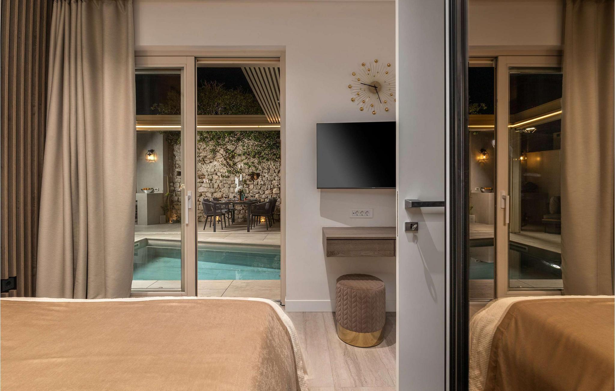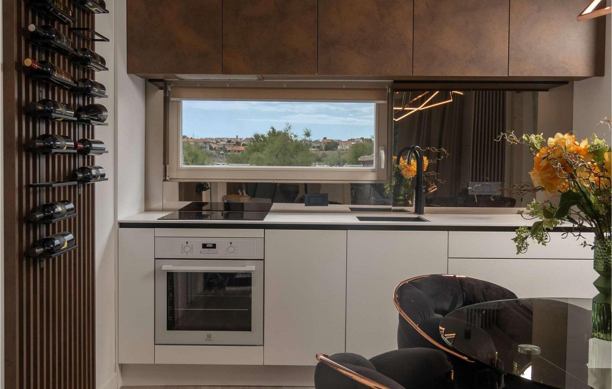 Den vakre Villa Aenona ligger i den kongelige byen Nin, 16 km fra byen Zadar. Her kan du flykte fra hverdagens kjas og mas og slappe av sammen med familie og venner i en villa med havutsikt i en rolig del av byen. Det spesielle med denne villaen er at det er en mur fra 1500-tallet på gårdsplassen og ved inngangen. Villa Aenona ble bygget i 2022 i en moderne arkitektonisk stil og tilbyr sine gjester 120 m2 boareal, og eiendommens totale areal er 149 m2. Villaen har plass til maksimalt 6 personer, og det optimale antallet er 4. Villaen ligger bare 70 meter fra nærmeste hav, og du kan bade på Kralji?ina-stranden, 300 meter fra villaen. I villaens første etasje er det en stue med sovesofa (som kan brukes som ekstraseng for to personer), TV og en romantisk peis. Barna kan spille PlayStation 5 eller høre på musikk takket være lydanlegget, og for de voksne er det en vinkjeller og en sigarhumidor (mot betaling). Det er også et kjøkken hvor du kan tilberede deilige måltider for hele familien og venner, og en spisestue med et spisebord med plass til 6 personer. I første etasje er det også en badstue med badekar og et soverom med dobbeltseng og eget bad med dusjkabinett. På terrassen er det et åpent, oppvarmet basseng på 12 m2 og 1,5 meter dypt, men det kan også lukkes. Bassenget har også motstrømsbasseng, vann- og luftmassasje og et boblebad som hører til bassenget. På terrassen er det også et utekjøkken med elektrisk Webber-grill. I toppetasjen er det enda et soverom med dobbeltseng og eget bad med dusjnisje samt et spisebord, og ved siden av er det en salong med sitteplasser og 4 solsenger. Du kan også nyte utsikten over det rene og klare Adriaterhavet fra toppetasjen. Villaen har også vaskemaskin og strykejern, separat toalett i badstuen, og hvis du har barn med deg, kan du benytte deg av et matbrett og en barneseng. Villa Aenonas gårdsplass er inngjerdet, og du får gratis adgang til en privat parkeringsplass 20 meter fra villaen. Etter avtale er det mulig å ordne fortøyningsplass for båt, utflukter eller din egen hurtigbåt. En privat kokk er også tilgjengelig hvis du ønsker at han skal lage lunsj eller middag til deg i villaen. Mesterne i japansk og italiensk mat venter på deg! Slapp av med familie og venner i en villa med havutsikt i en rolig del av gamlebyen i Nin, med gamle bymurer fra 1500-tallet på gårdsplassen, velværeopplevelse med oppvarmet utendørs-/innendørsbasseng, vannmassasje, kontrasvømming og finsk badstue. Du kan bruke stand-up paddleboards, som er inkludert i prisen, sammen med hele familien i den vakre sandlagunen i Nin, og ta leksjoner i windsurfing eller kitesurfing. Med butikker, restauranter og en hurtigbåt innen 1,2 minutters gange er dette et sant paradis i hjertet av den gamle byen Nino. Velkommen til Villa Aenona! Vær oppmerksom på at dette overnattingsstedet ikke tar imot ungdomsgrupper eller utdrikningslag. En ungdomsgruppe på dette overnattingsstedet består av personer under 30 år. Ikke bestill dette overnattingsstedet hvis du er en ungdomsgruppe eller et utdrikningslag, da bestillingen din vil bli avvist etter bestilling, noe som også kan være tilfelle ved ankomst til overnattingsstedet eller under oppholdet, og du vil ikke få refusjon.