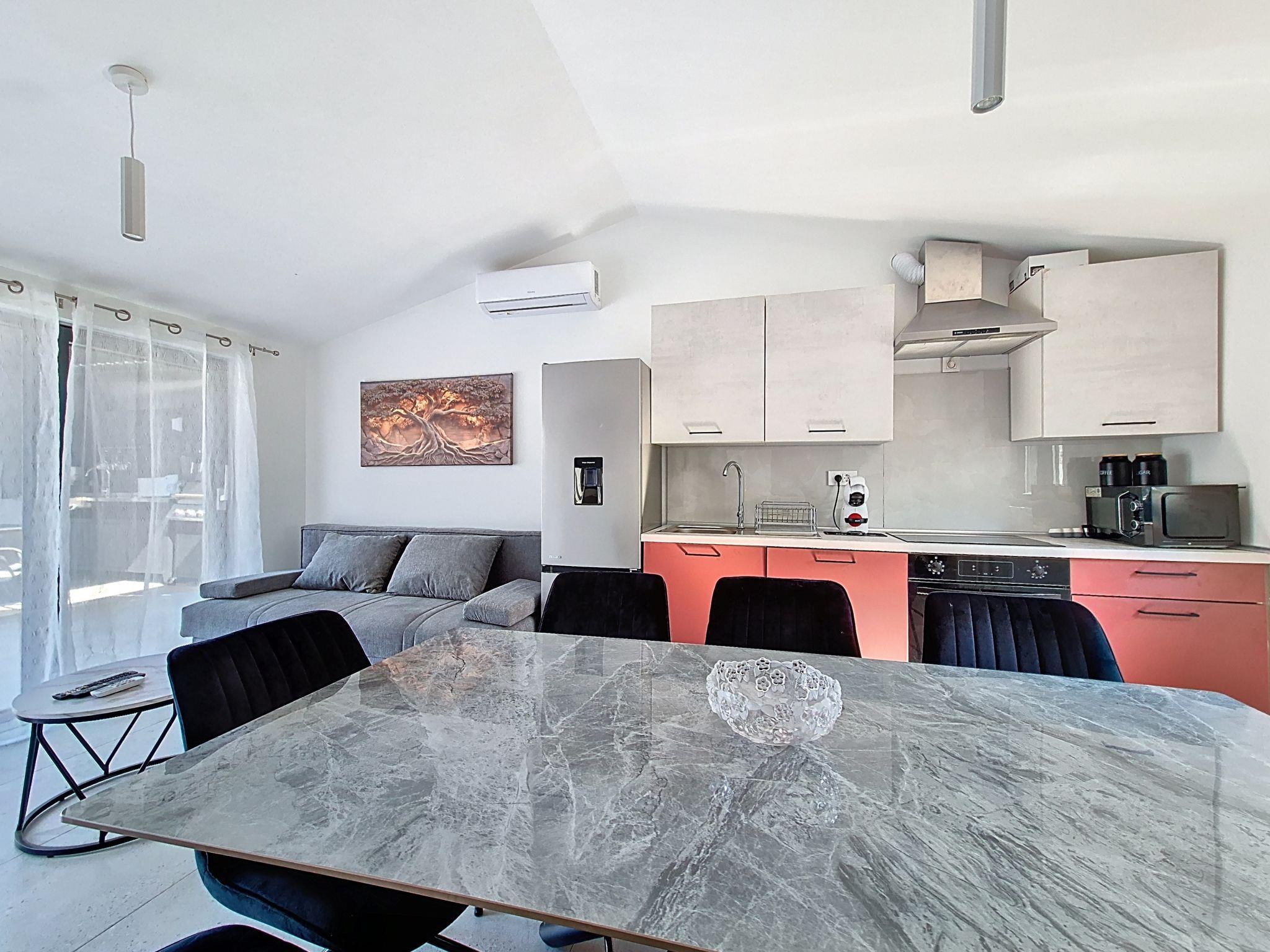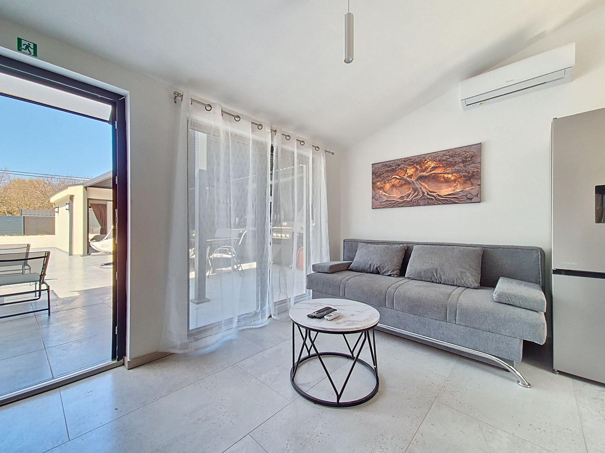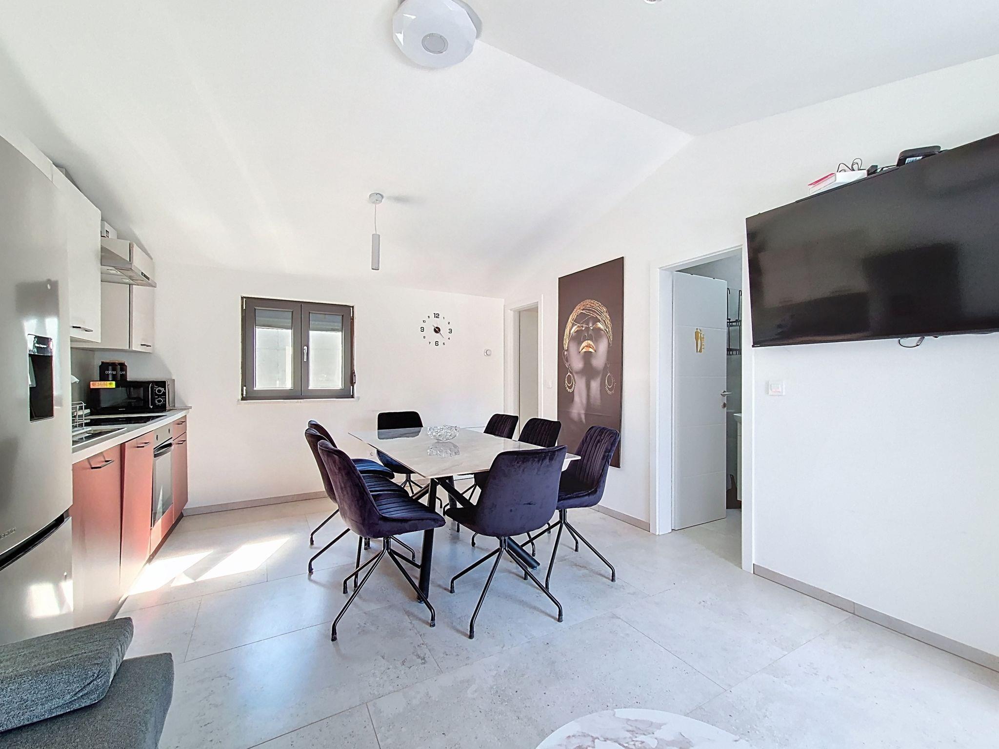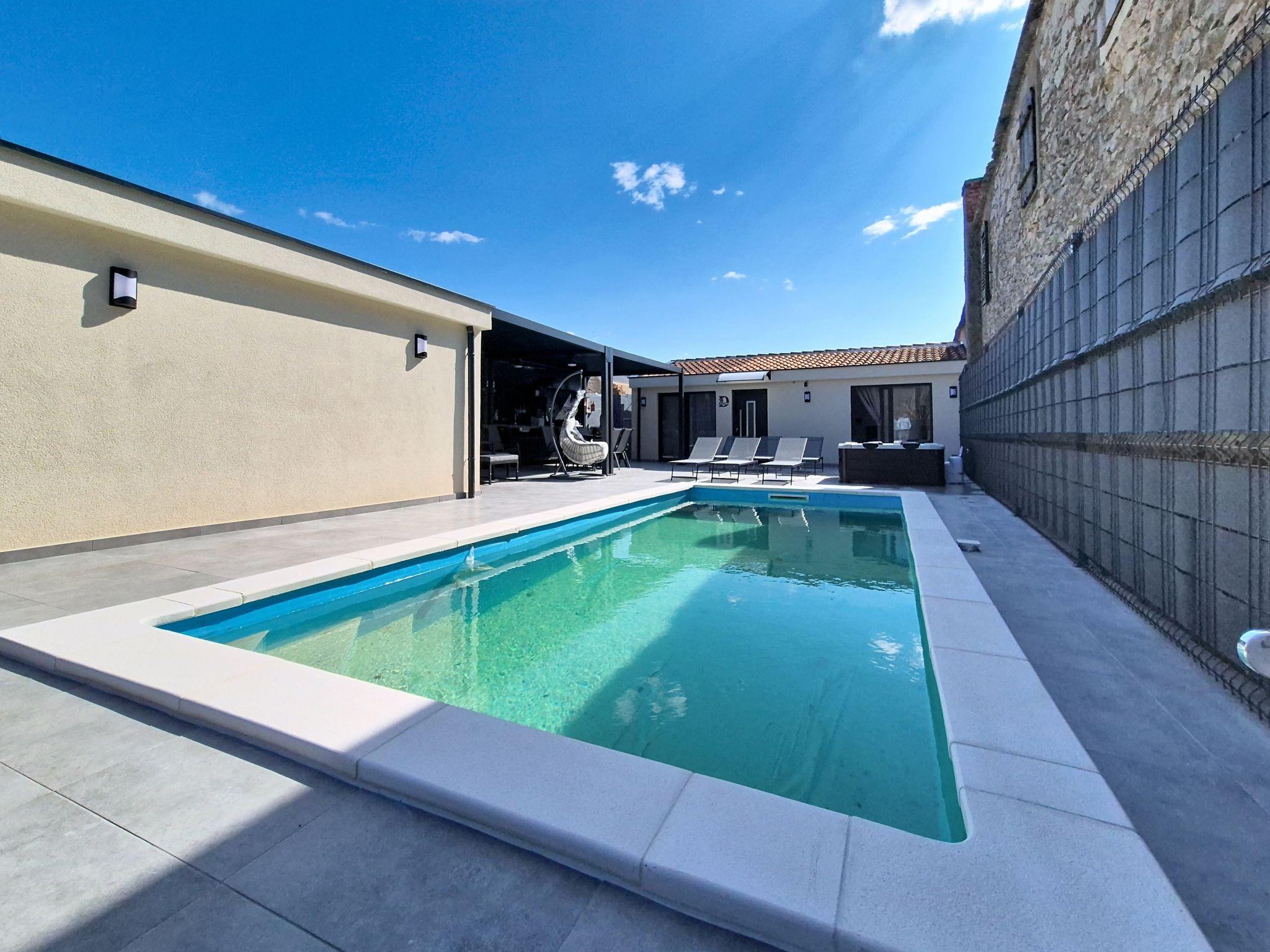 Single-family house "Danica", built in 2026. 8 km from the centre of Nin, in a quiet, sunny position, 8 m from the sea, 8 m from the beach. Private: property 300 m2 (fenced), swimming pool (7 x 3 m, depth 150 cm, seasonal availability: 01.May. - 01.Oct.). Outdoor shower, hot tub, pergola (30 m2), garden furniture, barbecue. In the house: internet access, washing machine. Parking at the house on the premises. Shop 1.5 km, restaurant 3 km, bus stop 2 km, sandy beach 8 km pebble beach 8 km. Tennis 12 km. Nearby attractions: aquapark 12 km.