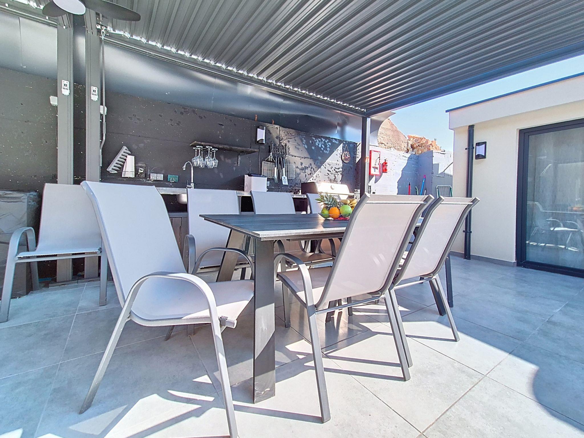 4-room villa 70 m2, south-west facing position. In 2026: living/dining room 20 m2 with satellite TV (flat screen), air conditioning. Exit to the terrace. 2 rooms, each room with 1 french bed (180 cm, length 200 cm). 1 room with 1 french bed (180 cm, length 200 cm), shower/WC and air conditioning. Open kitchen (oven, dishwasher, 4 ceramic glass hob hotplates, kettle, freezer, electric coffee machine). Shower/WC, sep. WC. No heating option. Terrace 25 m2. Terrace furniture, deck chairs. View of the swimming pool. Facilities: safe, hair dryer. Internet (WiFi, free).