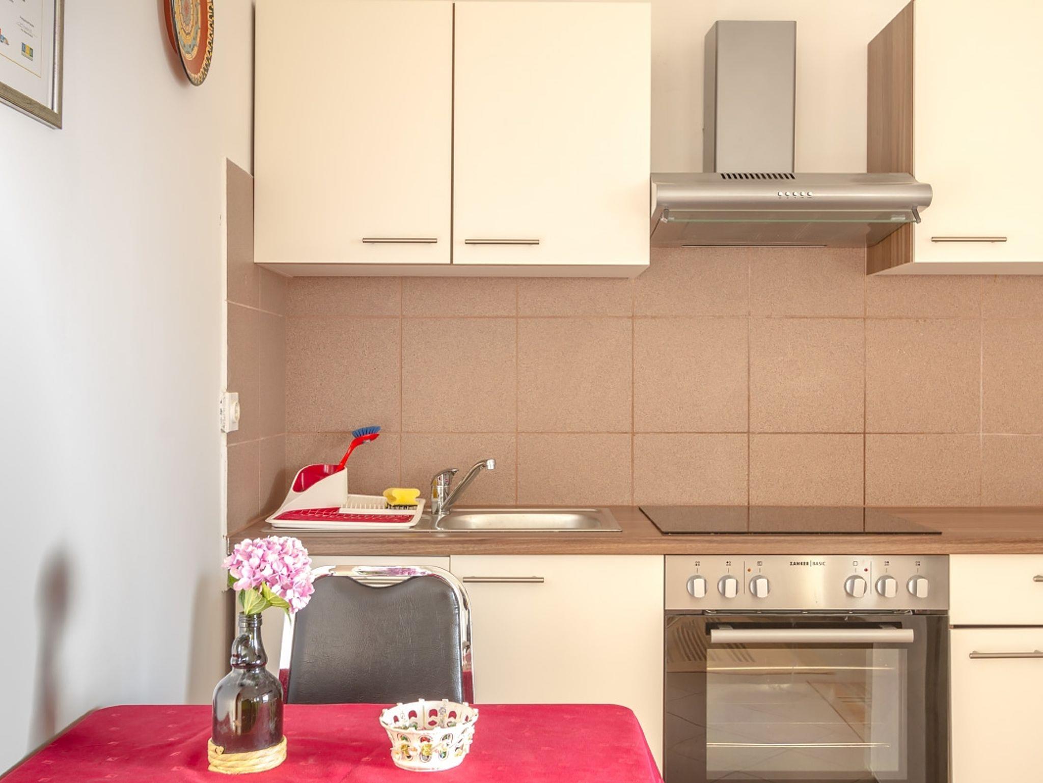 Ferienwohnung bietet Platz für 3 Gäste. Die Betten sind in Schlafzimmern, die es 1 gibt, innerhalb einer Gesamtfläche von 31m2, angeordnet. Die Gäste haben eine eigene Terrasse zur Verfügung, auf der sie in warmen Sommernächten genießen können. Das Apartment bietet Meerblick. Es ist erlaubt, Speisen auf dem Gemeinschafts-Grill vorzubereiten. In der Unterkunftseinheit besteht die Möglichkeit des Mitbringens von Haustieren gegen Aufpreis. IM PREIS INBEGRIFFEN: Kurtaxe, Endreinigung, Klimatisierung, Internet, Bügeleisen, Bügelbrett, Föhn. VERBINDLICHE ZUSÄTZLICHE KOSTEN: Aufzahlung für Kurzaufenthalte (prozentualer Zuschlag pro Nächtigungsanzahl: 30% - 1, 20% - 2, 10% - 3). UNVERBINDLICHE ZUSÄTZLICHE KOSTEN: Zentralheizung (5,00 € pro Nacht), Haustiere (10,00 € pro Nacht), Zusatzbett (7,00 € pro Nacht). Die Verfügbarkeit zusätzlicher Dienstleistungen in Ihrem reservierten Termin und die Preise derselben (falls nicht aufgeführt) müssen im Voraus überprüft werden. Zusätzliche Dienstleistungen die in der Zahlungsaufforderung nicht aufgeführt sind werden direkt beim Vermieter bezahlt, angenommen der Gast nutzt auch diese.