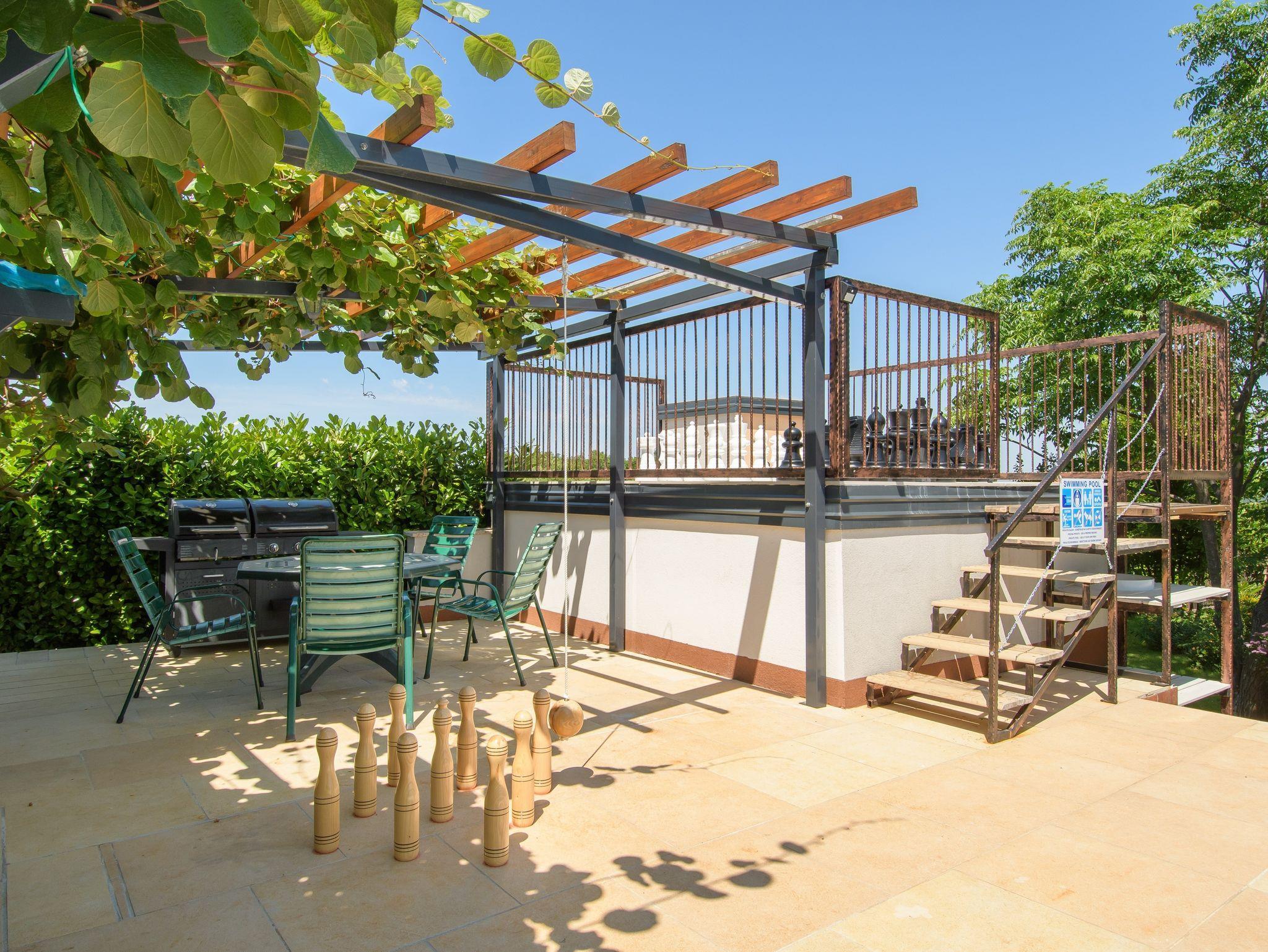 Umgebung des Objekts (Eingerichtet), Hof (1000m2, Kinderbereich, Sitzbereich), Parkplatz (Anzahl der Parkplätze: 2, Entfernung vom Objekt: im Hof), Pool: gemeinsam, Dimensionen: 8.5m x 4m x 1.5m, Wassertyp: Süßwasser, Heizung: Ja, WiFi Internet, Wäschewaschen, Föhn, Tragbarer Grill, Sonnenschirm, Liegestühle, Kinderbett