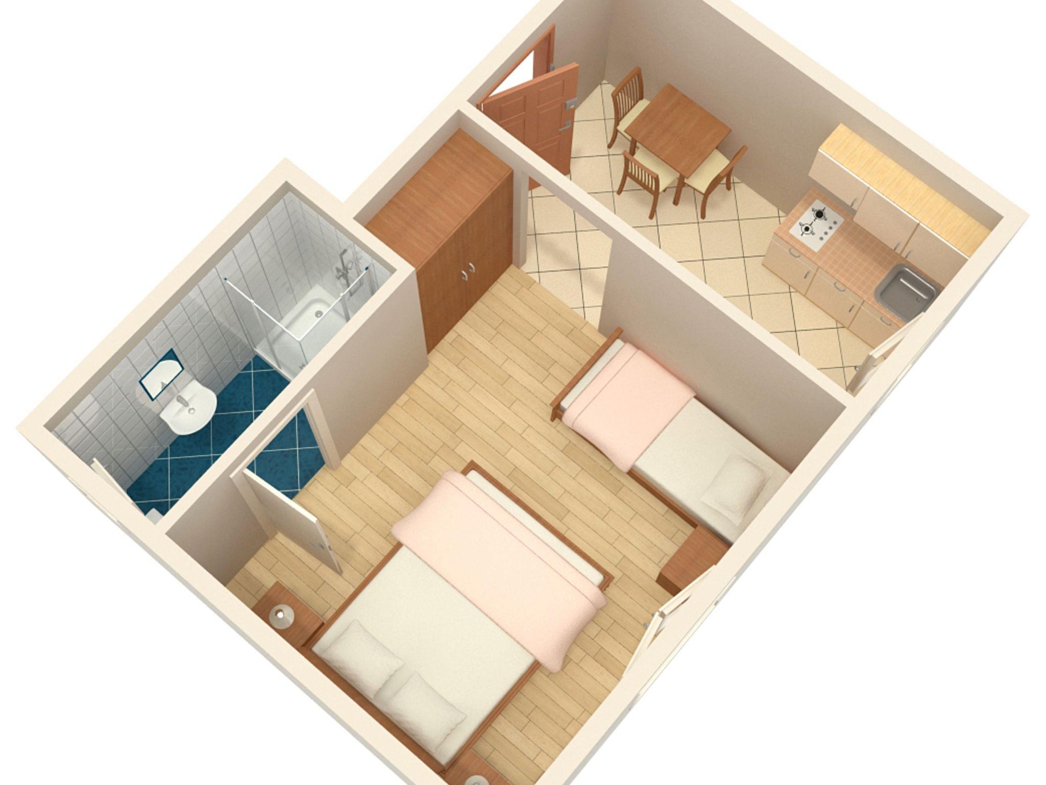 Studio bietet Platz für 3 Gäste. Die Betten sind in Schlafzimmern, die es 1 gibt, innerhalb einer Gesamtfläche von 20m2, angeordnet. Die Gäste haben eine eigene Terrasse zur Verfügung, auf der sie in warmen Sommernächten genießen können. Es ist erlaubt, Speisen auf dem Gemeinschafts-Grill vorzubereiten. Unterkunftseinheit hat Räume, die von dem Rest der Einheit abgetrennt werden. In der gebuchten Unterkunftseinheit zahlt man am Ort ein Depositum ( der Preis ist an der Internetseite angeführt ). IM PREIS INBEGRIFFEN: Kurtaxe, Endreinigung, Klimatisierung, Parkplatz, Internet. VERBINDLICHE ZUSÄTZLICHE KOSTEN: Kaution (150,00 € Einmalzahlung), Aufzahlung für Kurzaufenthalte (prozentualer Zuschlag pro Nächtigungsanzahl: 30% - 1, 20% - 2, 10% - 3). UNVERBINDLICHE ZUSÄTZLICHE KOSTEN: Wäschewaschen (10,00 € Waschen). Die Verfügbarkeit zusätzlicher Dienstleistungen in Ihrem reservierten Termin und die Preise derselben (falls nicht aufgeführt) müssen im Voraus überprüft werden. Zusätzliche Dienstleistungen die in der Zahlungsaufforderung nicht aufgeführt sind werden direkt beim Vermieter bezahlt, angenommen der Gast nutzt auch diese.