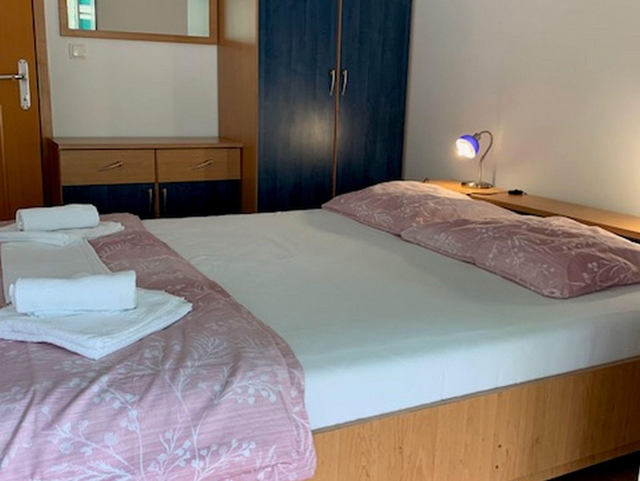 Ferienwohnung bietet Platz für 6 Gäste. Die Betten sind in Schlafzimmern, die es 3 gibt, innerhalb einer Gesamtfläche von 55m2, angeordnet. Die Gäste haben eine eigene Terrasse zur Verfügung, auf der sie in warmen Sommernächten genießen können. Das Apartment bietet Meerblick. Es ist erlaubt, Speisen auf dem Gemeinschafts-Grill vorzubereiten. In der Unterkunftseinheit besteht die Möglichkeit des Mitbringens von Haustieren gegen Aufpreis. IM PREIS INBEGRIFFEN: Kurtaxe, Endreinigung, Klimatisierung, Parkplatz, Internet, Wäschewaschen, Bootsanlegeplatz, Kinderbett, Föhn, Sonnenschirm, Liegestühle. UNVERBINDLICHE ZUSÄTZLICHE KOSTEN: Haustiere (15,00 € pro Nacht). Die Verfügbarkeit zusätzlicher Dienstleistungen in Ihrem reservierten Termin und die Preise derselben (falls nicht aufgeführt) müssen im Voraus überprüft werden. Zusätzliche Dienstleistungen die in der Zahlungsaufforderung nicht aufgeführt sind werden direkt beim Vermieter bezahlt, angenommen der Gast nutzt auch diese. Ermäßigung auf den Grundpreis: Gratistag 14=13 (bei einem Aufenthalt von 14 Tagen oder mehr erhalten Sie einen Gratistag für den Aufenthalt bis 31.12.26).
