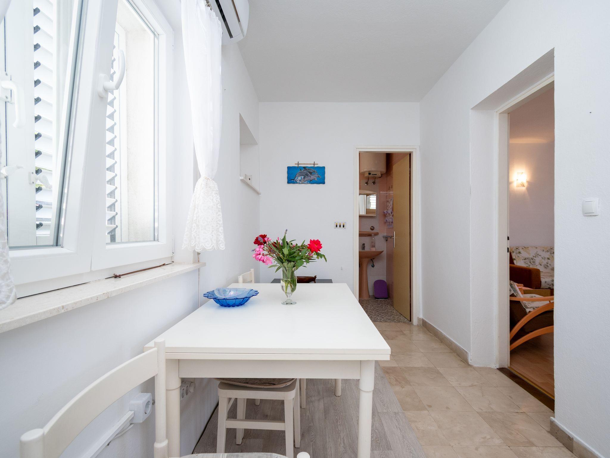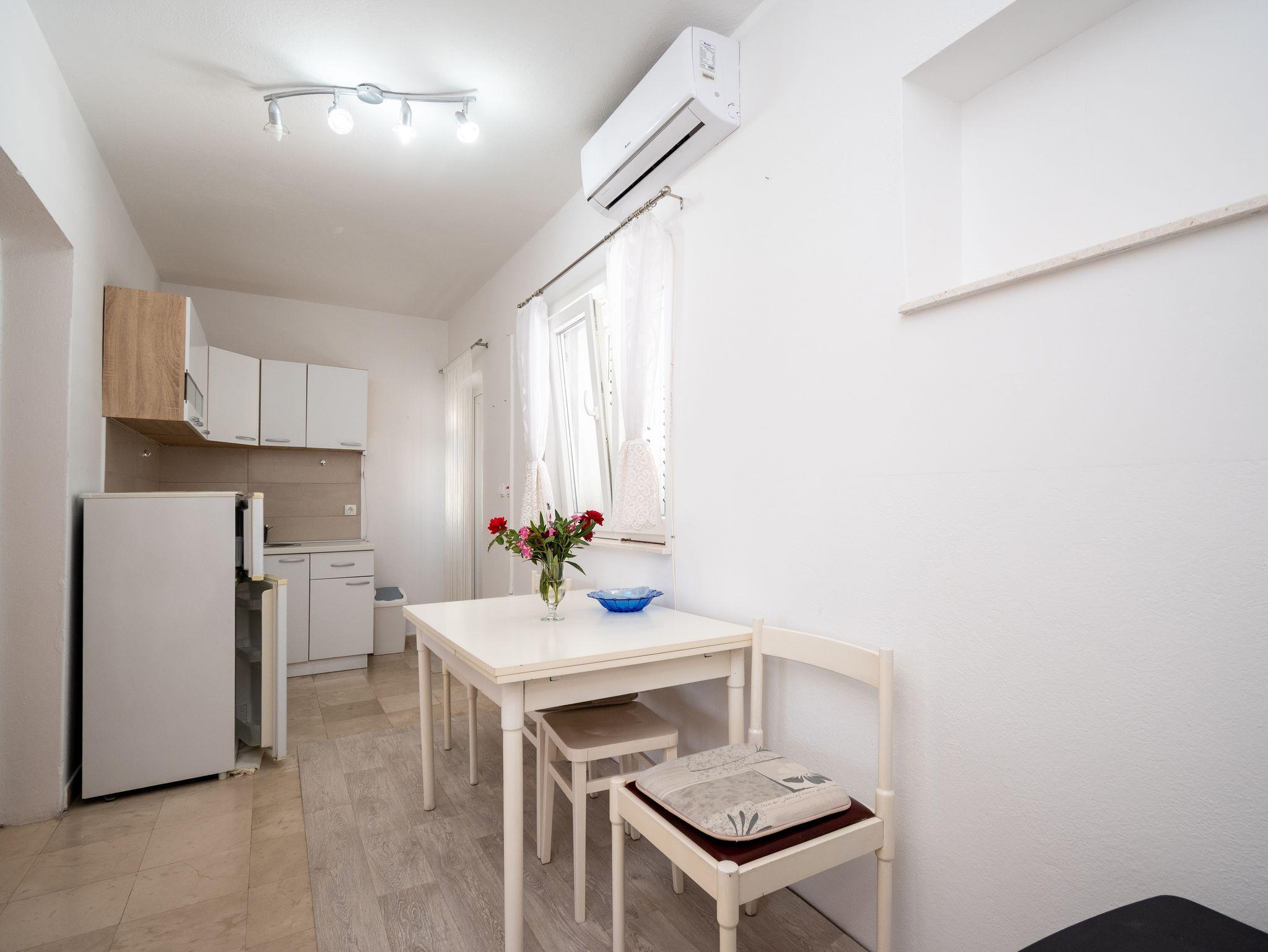 Studio bietet Platz für 4 Gäste. Die Betten sind in Schlafzimmern, die es 2 gibt, innerhalb einer Gesamtfläche von 42m2, angeordnet. Die Gäste haben eine eigene Terrasse zur Verfügung, auf der sie in warmen Sommernächten genießen können. Es ist erlaubt, Speisen auf dem Gemeinschafts-Grill vorzubereiten. IM PREIS INBEGRIFFEN: Kurtaxe, Endreinigung, Klimatisierung, Parkplatz, Internet, Bootsanlegeplatz, Bügeleisen, Föhn, Sonnenschirm, Liegestühle. VERBINDLICHE ZUSÄTZLICHE KOSTEN: Aufzahlung für Kurzaufenthalte (prozentualer Zuschlag pro Nächtigungsanzahl: 30% - 1, 20% - 2, 10% - 3). Die Verfügbarkeit zusätzlicher Dienstleistungen in Ihrem reservierten Termin und die Preise derselben (falls nicht aufgeführt) müssen im Voraus überprüft werden. Zusätzliche Dienstleistungen die in der Zahlungsaufforderung nicht aufgeführt sind werden direkt beim Vermieter bezahlt, angenommen der Gast nutzt auch diese.