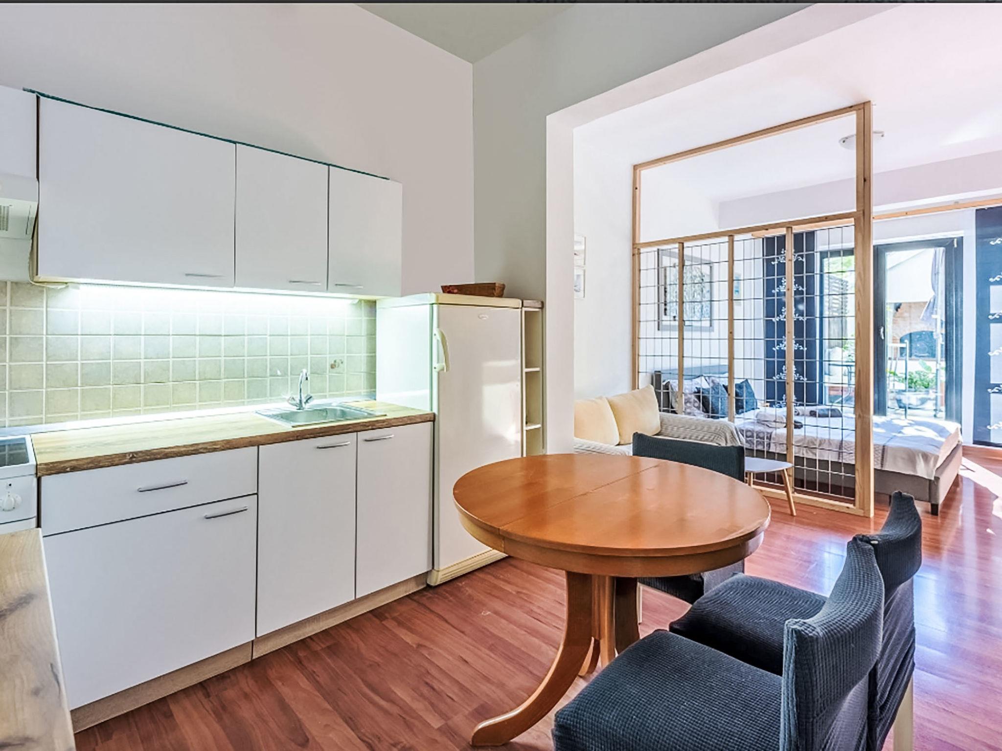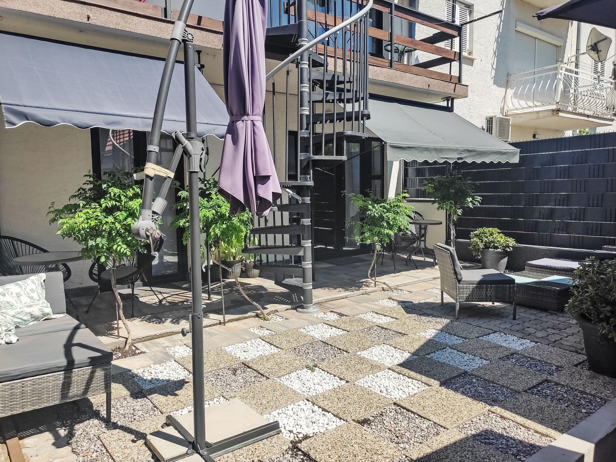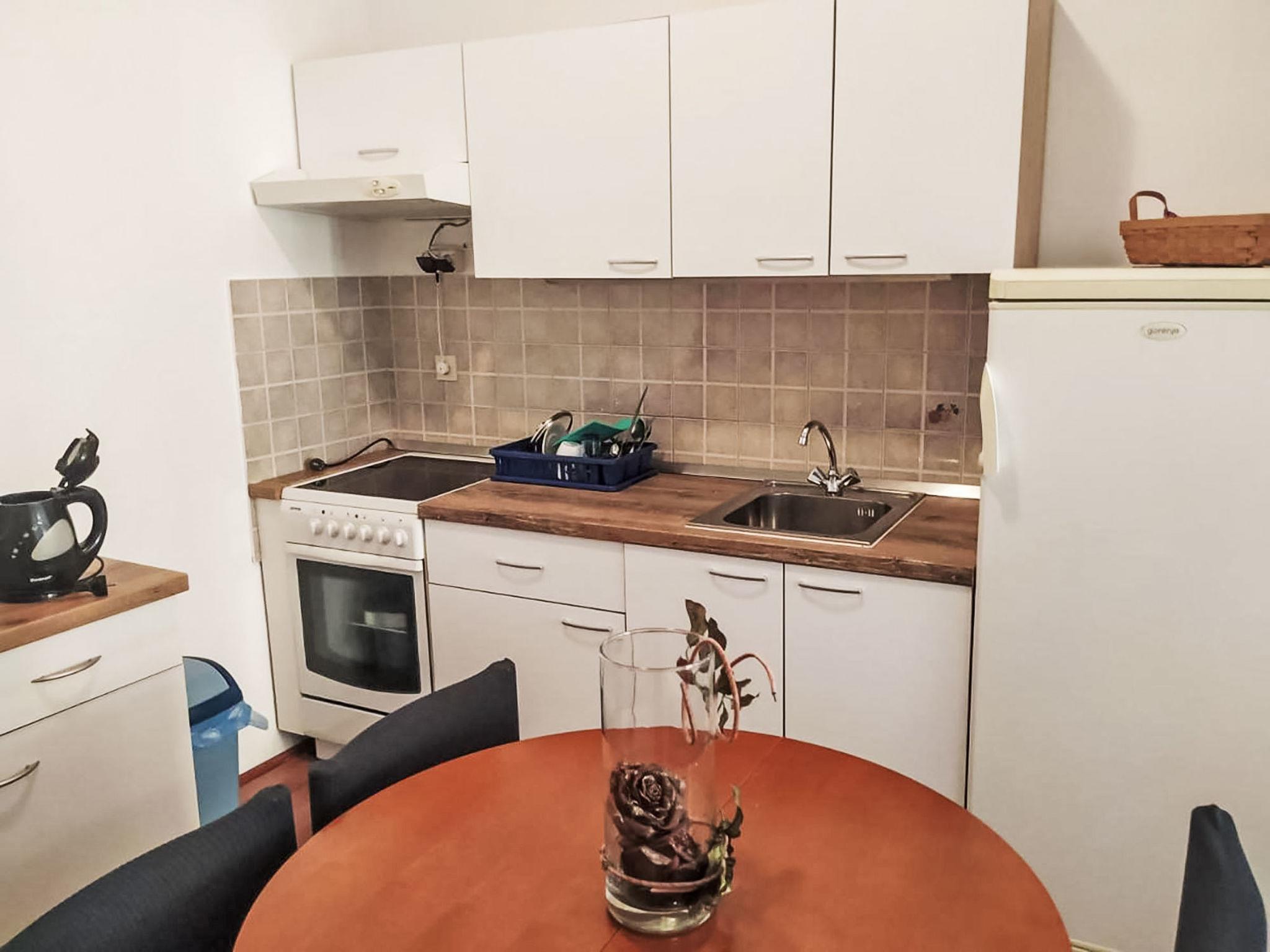 "Deleut 2", 1-room studio 40 m2, on the ground floor. Living/sleeping room with 1 french bed (160 cm, length 200 cm), satellite TV and air conditioning. Exit to the terrace. Open kitchen (4 hot plates, oven, toaster, kettle, freezer) with dining table. Shower/WC. Forced-air heating. Facilities: iron, hair dryer. Internet (WiFi, free). Maximum 1 pet/ dog allowed.