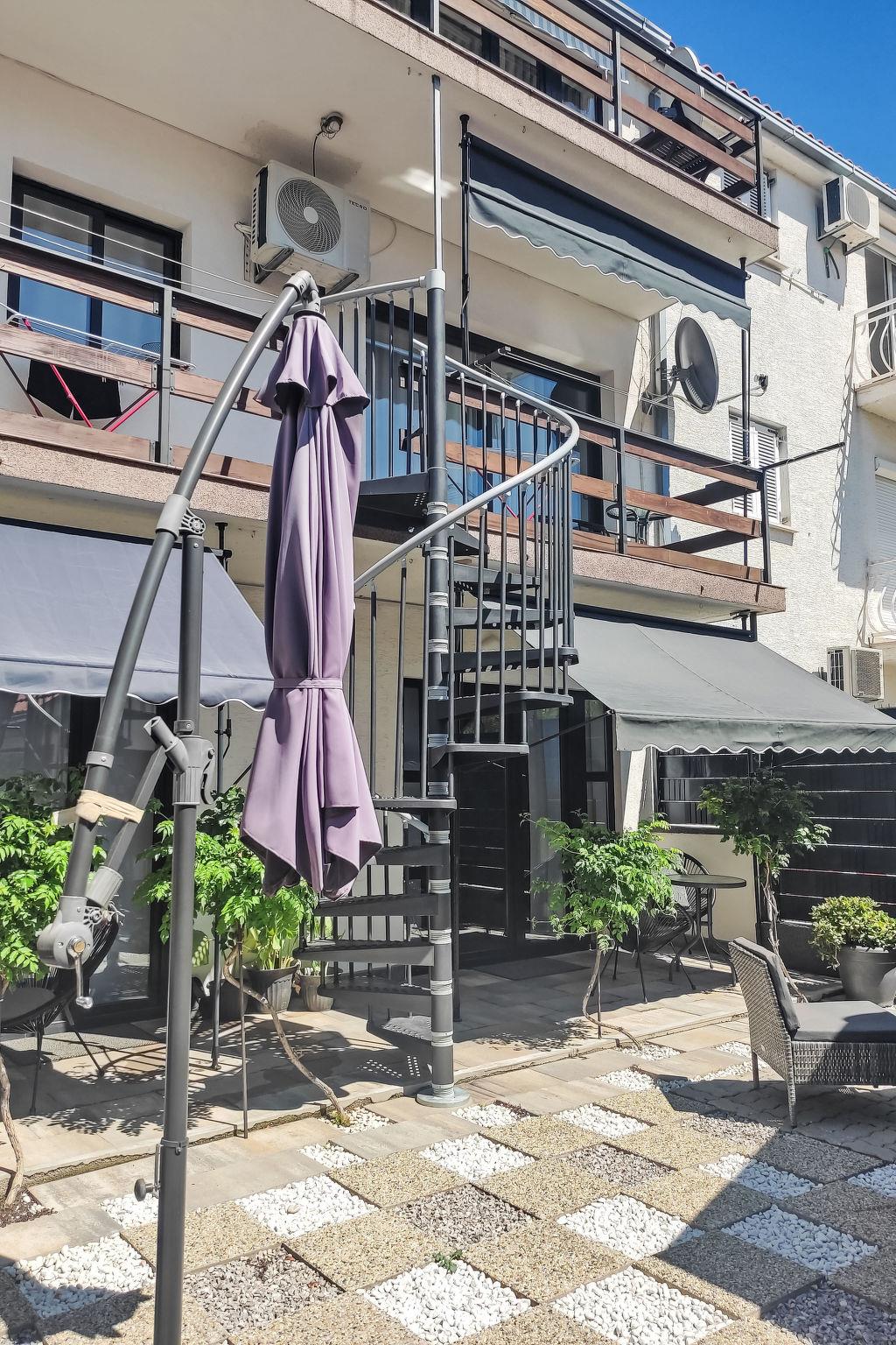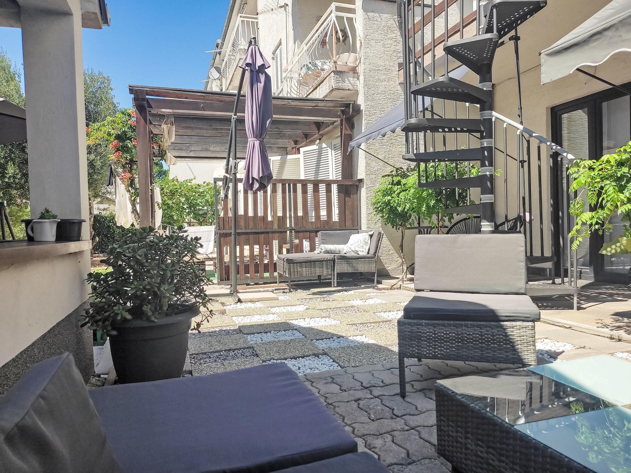 Novi Vinodolski: Apartment house "Deleut", 3 storeys. 1 km from the centre of Novi Vinodolski, 1.8 km from the sea, 1.8 km from the beach. For shared use: property 400 m2 (fenced). Terrace (50 m2), barbecue, barbecue house. In the house: internet access, washing machine. Parking at the house on the premises. Shop, restaurant 800 m, bus stop 1 km, pebble beach 1.8 km. Please note: the owner lives on the same property.