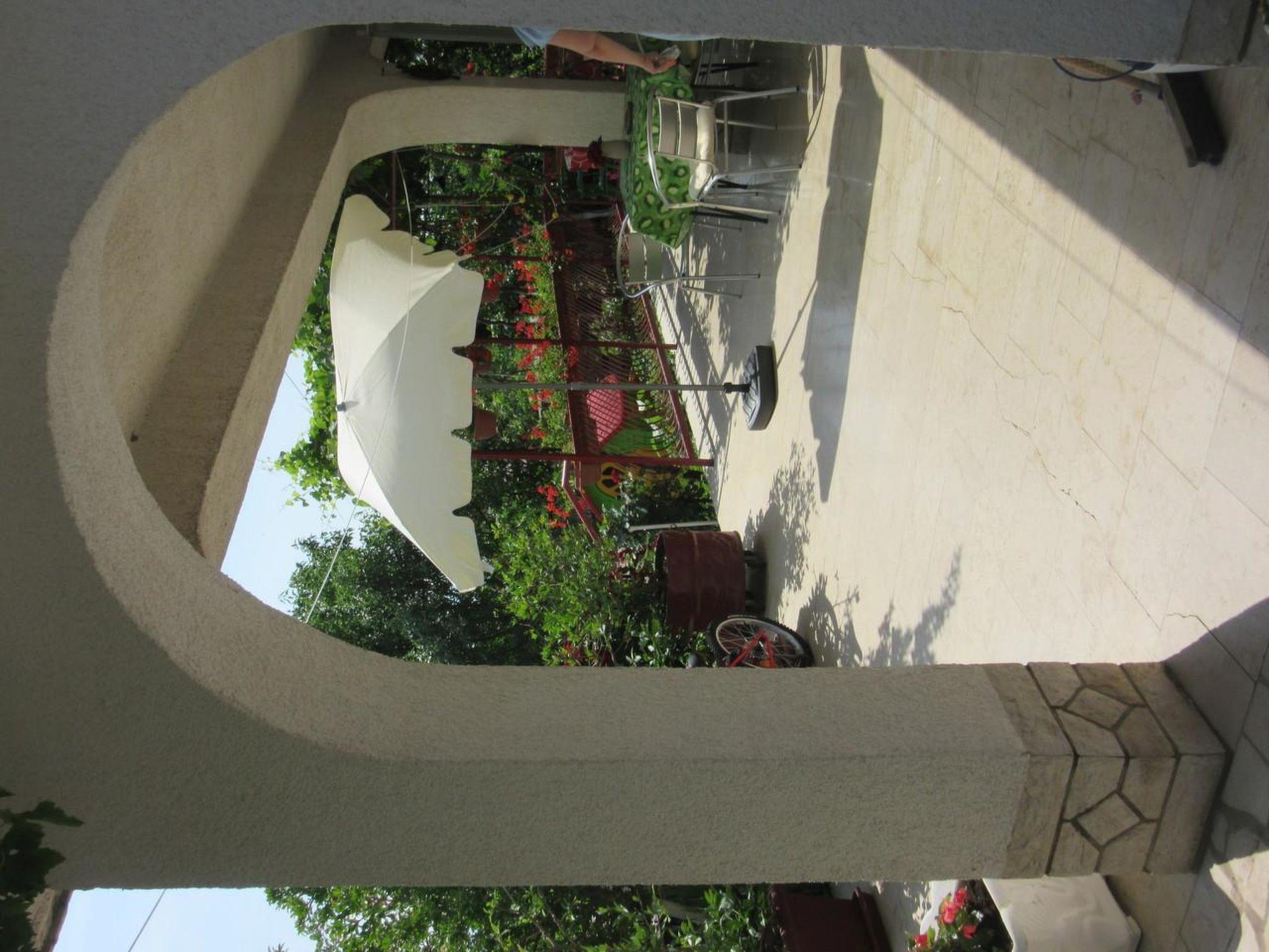 This beautiful apartment is located in Novi Vinodolski, not far from the beach.The apartment consists of a living / dining room with kitchen in the same room, a separate bedroom, a bathroom and a beautiful shaded terrace.Living area: living / dining room and kitchen are in one room, sofa bed for one person, terrace, sea view, laminate, tiles, satellite TVKitchen description: kitchen, dishes, electric / gas cooker combined, hotplates: 4, oven, refrigerator with freezer, filter coffee machine, kettle, microwaveBedroom: double room with double bed, terrace, sea view, parquetBathroom: bath with toilet, bathtub separate toiletBalcony / terrace: private terrace, covered, seating, terrace size: 25 m²Other: barbecue, parking by the house, pets not allowed, daily fee for air conditioning: 6.00 EUR, owner lives in the same house, suitable for allergy sufferers, bed linen available, towels available, washing machine in apartment, Internet via W-LANTo the sea 400 m, fine pebble beach 400 m, pebble beach 400 m, rocky beach 400 m, concrete beach 700 m, center 1.2 km, restaurant 500 m, supermarket 400 m, diving center 1 km, busy road 180 m