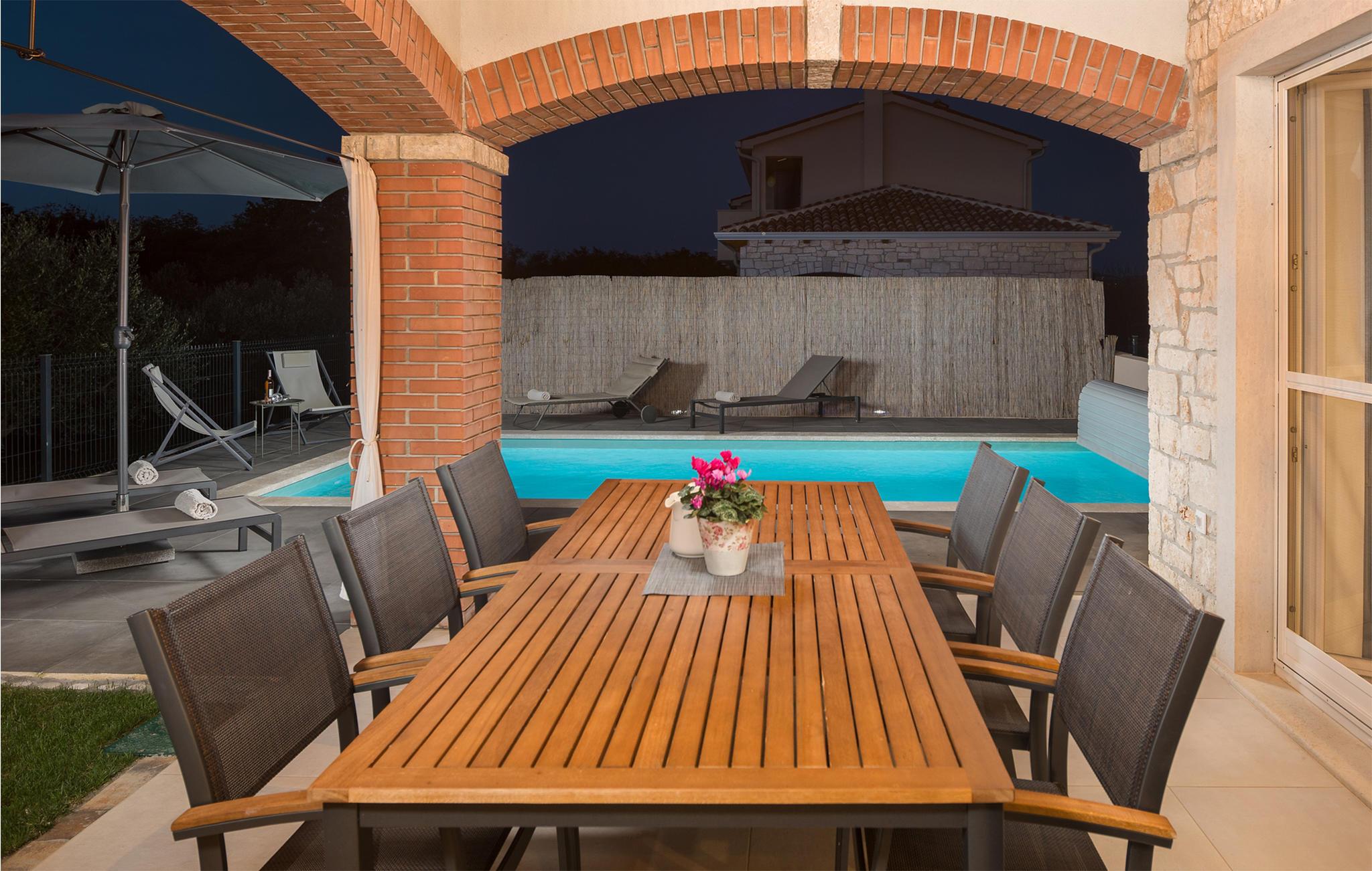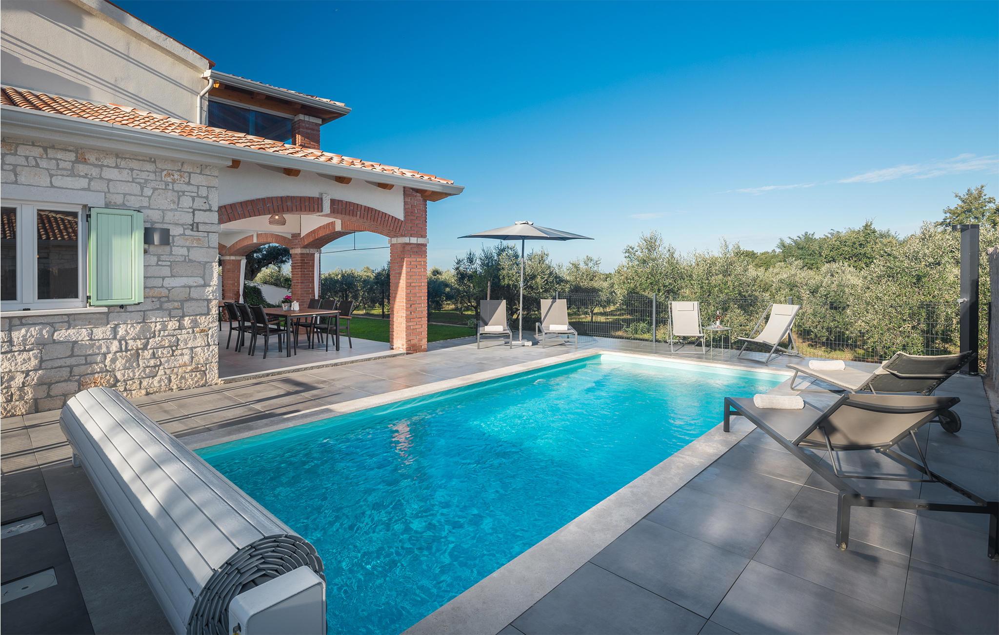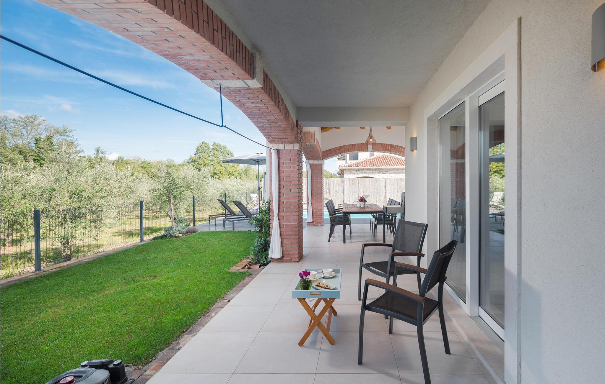 Langt unna turistbyene ved kysten ønsker Buzinija deg velkommen til dette vakre huset. De komfortable og innbydende rommene med åpen planløsning innbyr til en avslappende ferie, som du kan tilbringe etter eget ønske, for eksempel med matlaging, lek og avslapning i sofaen. Men du kan ikke bare slappe av i huset, du kan også sitte ute på balkongen med utsikt over landskapet eller grille på terrassen. I hagen er det plass til å leke, sole seg og plaske i bassenget, slik at du kan nyte familietiden sammen.